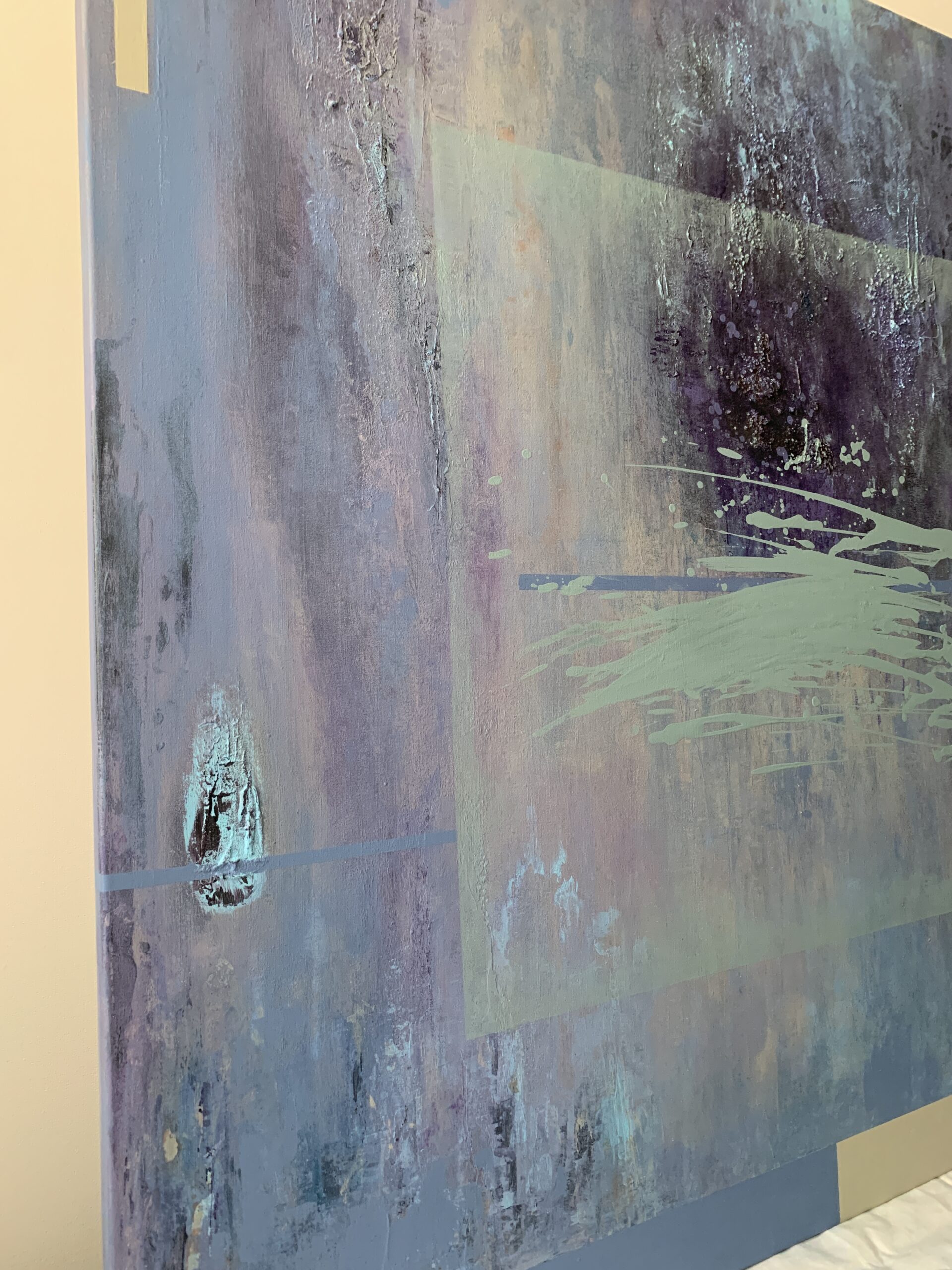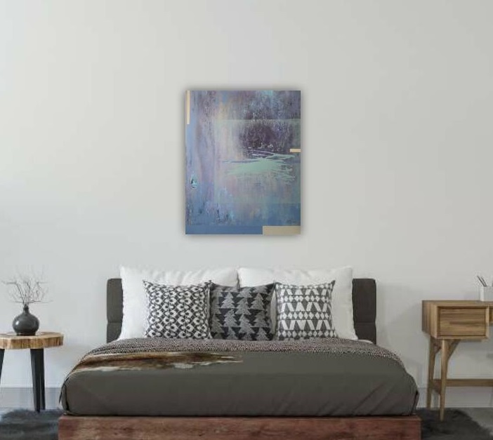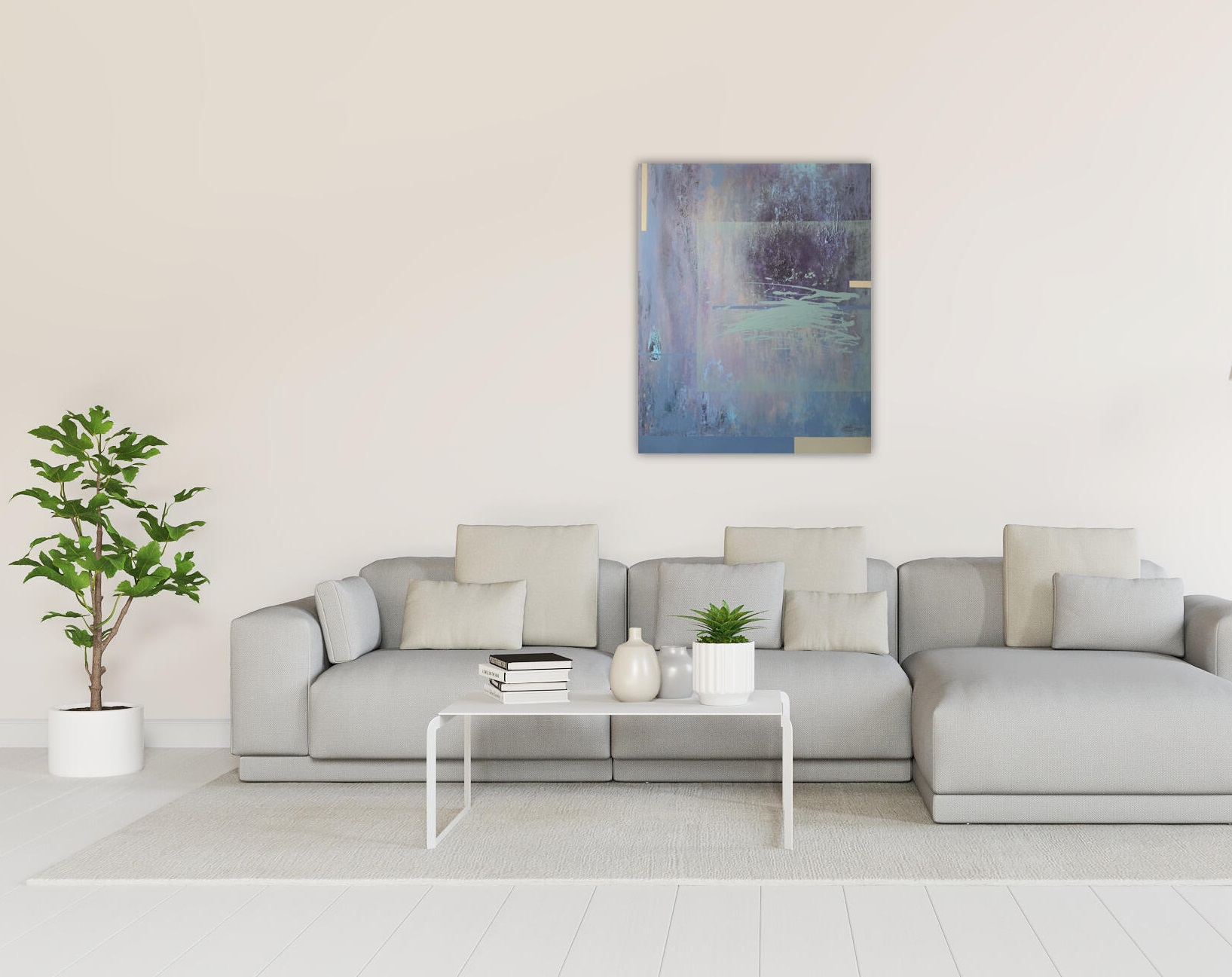 “Through the Fog” is an abstract acrylic painting with rich texture and expressive layering. Cool shades of blue, violet, and turquoise evoke calmness and mystery. Perfect for modern interior spaces.