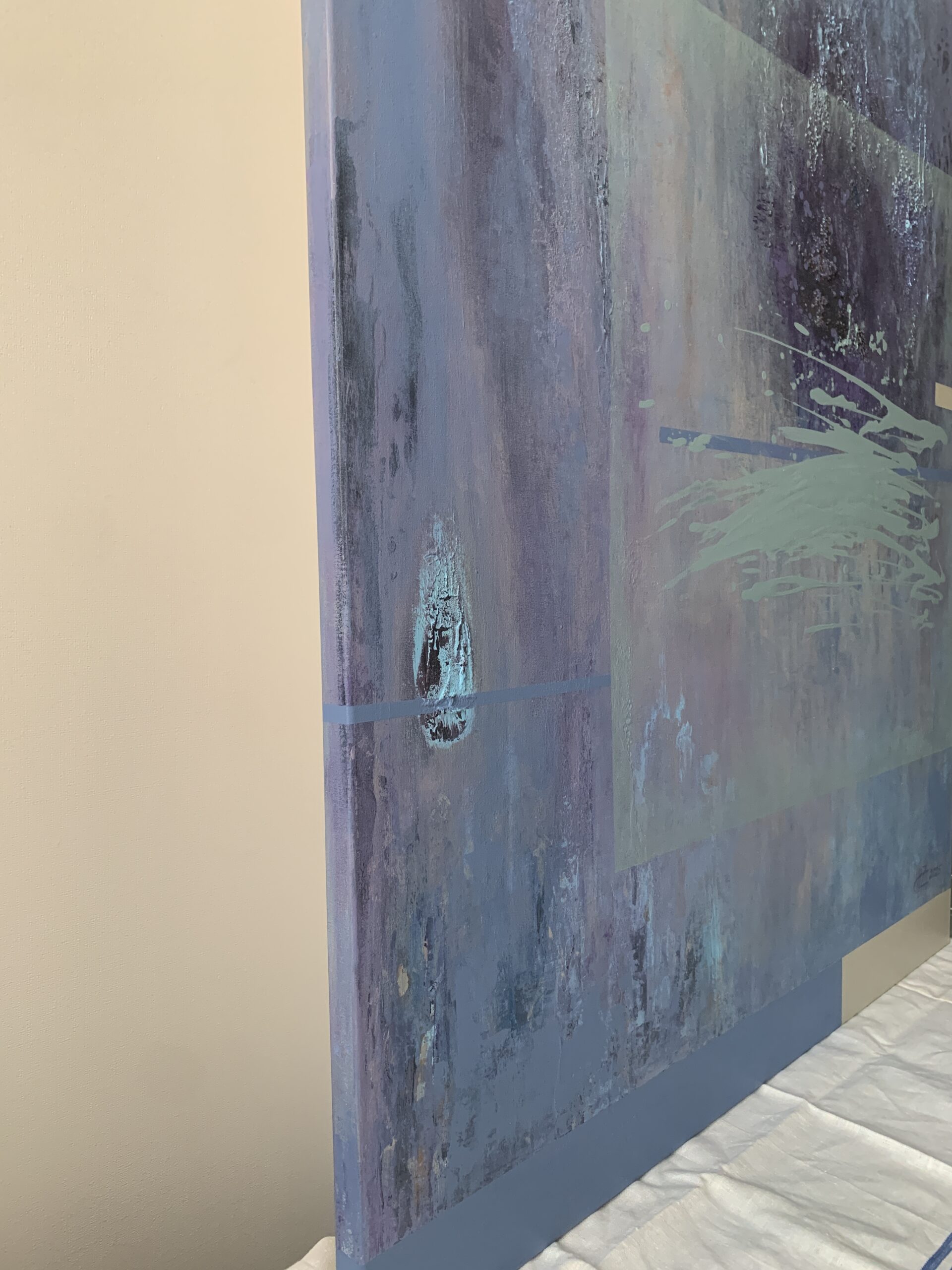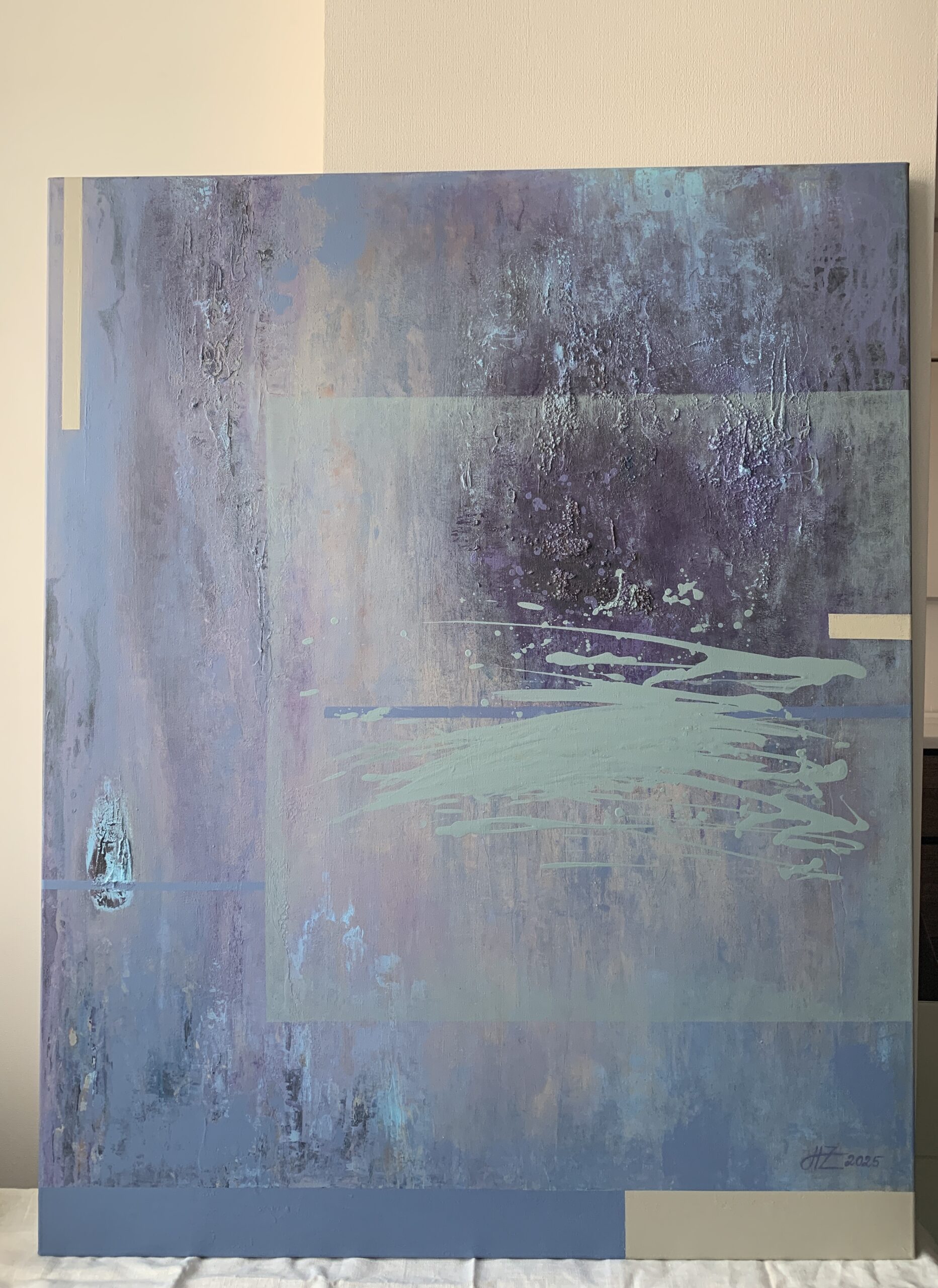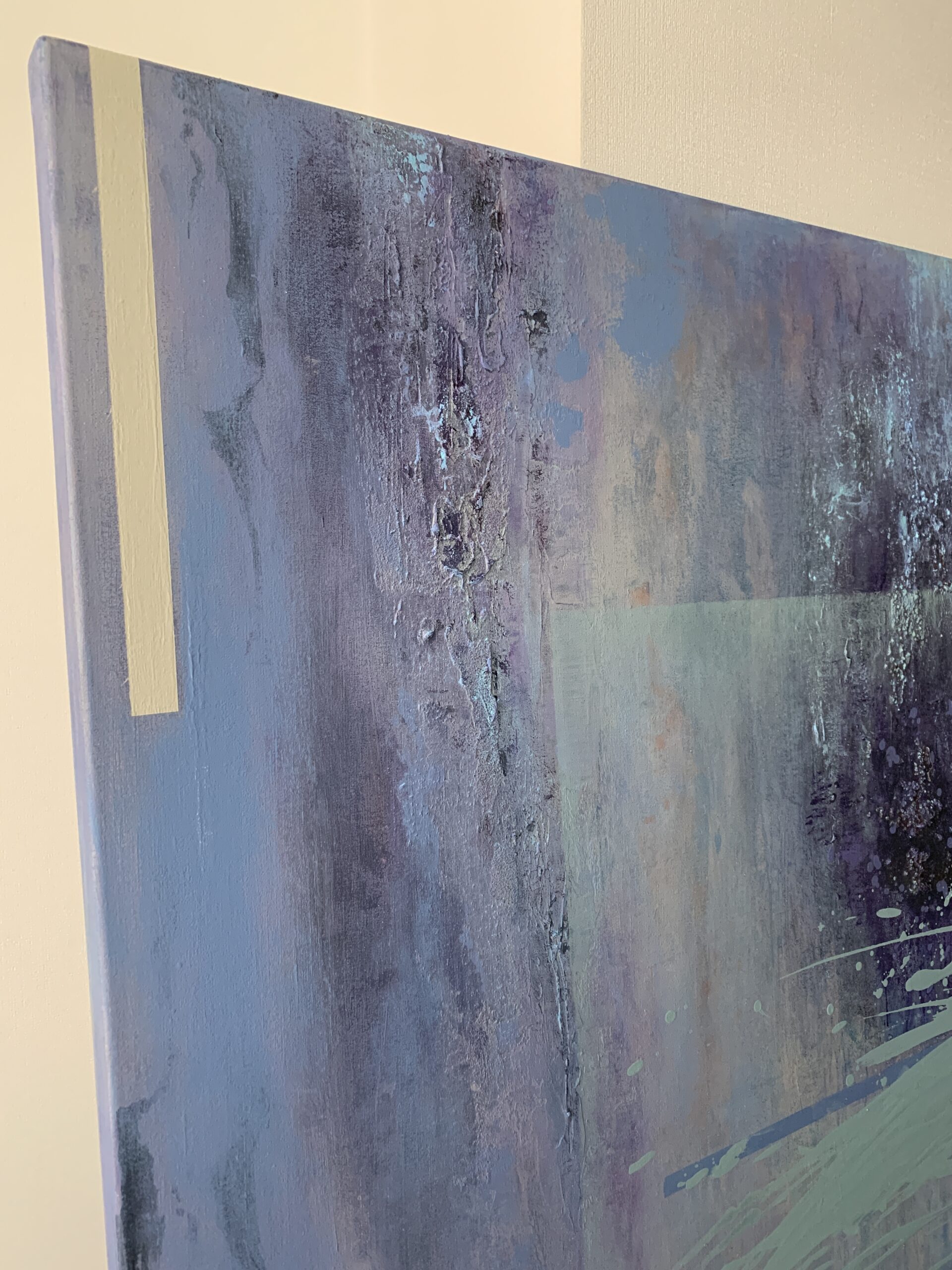 “Through the Fog” is an abstract acrylic painting with rich texture and expressive layering. Cool shades of blue, violet, and turquoise evoke calmness and mystery. Perfect for modern interior spaces.