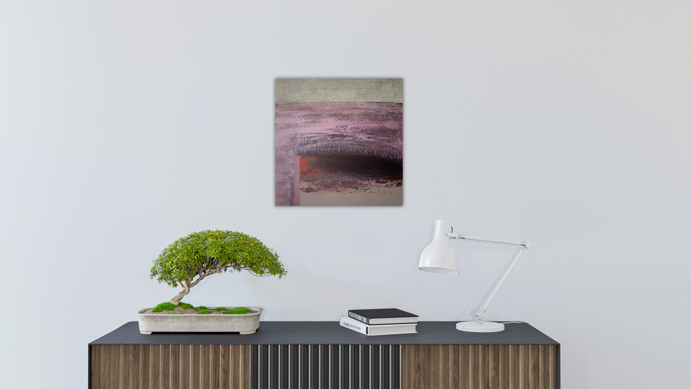 “Harmony” is a contemporary abstract piece from the series “Invisible Space,” created with acrylic on artist-grade hardboard. Gentle transitions of grey and rose-beige tones intertwine with textured layers, giving rise to an image of unity and balance. In a floating frame, the painting will fill the interior with soft light and tranquility.