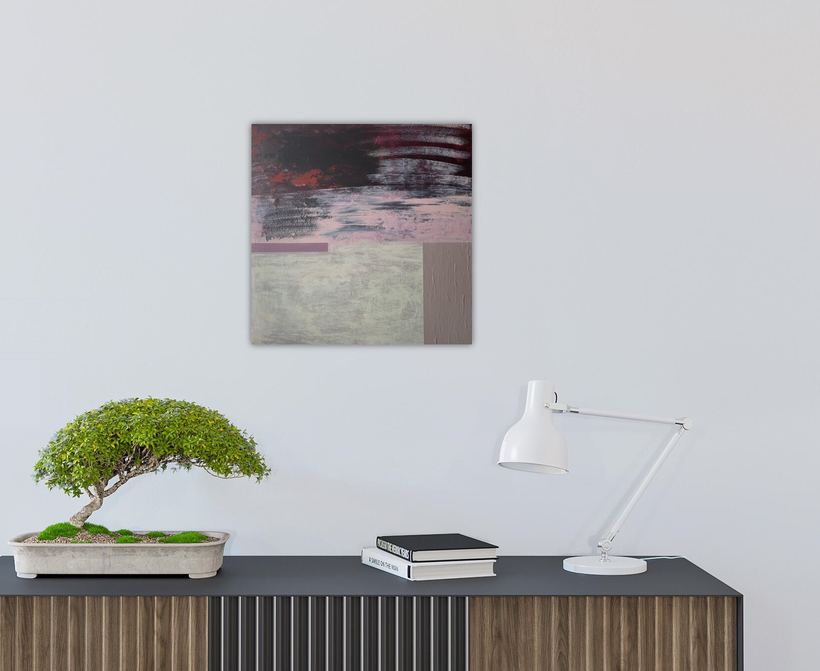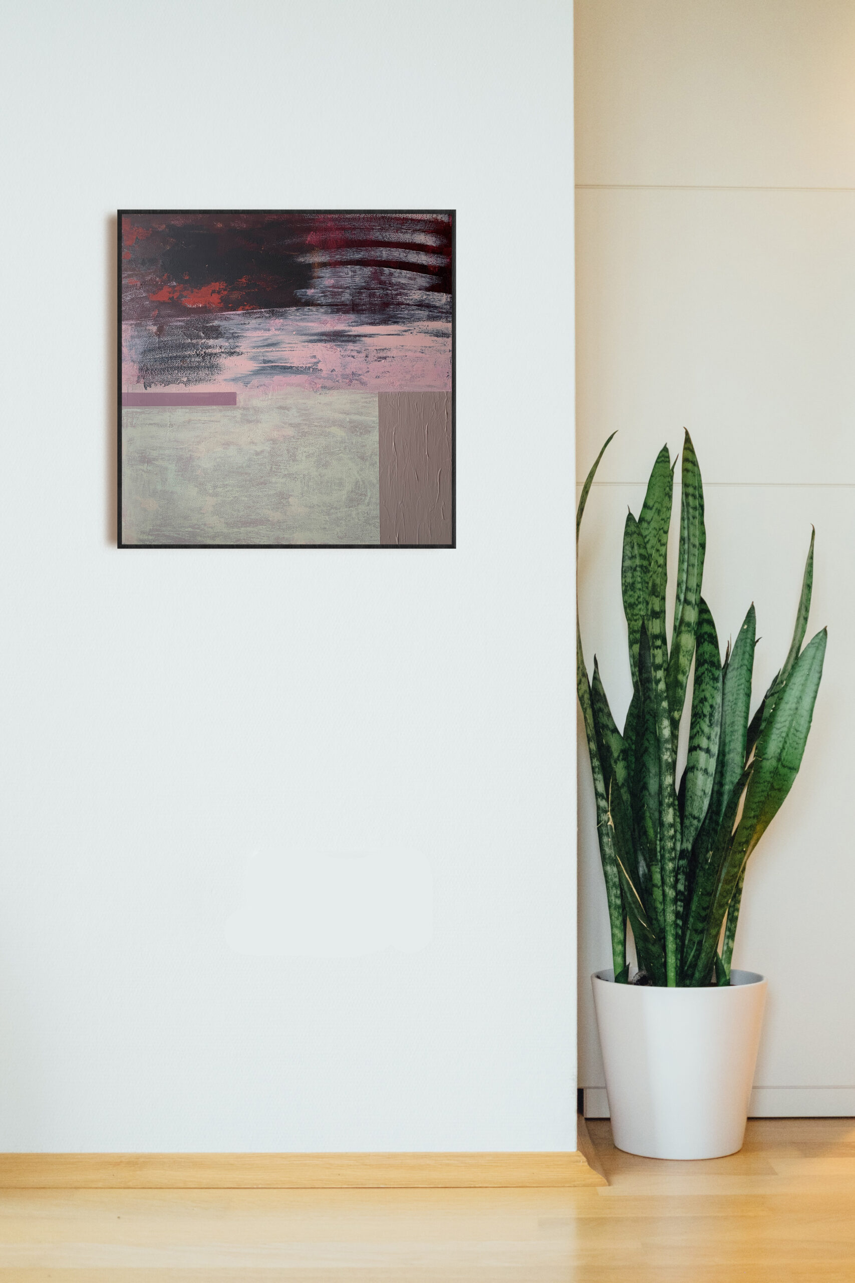 “Twilight” is a contemporary abstract piece from the series “Invisible Space,” created with acrylic on artist-grade hardboard. The contrast of light and deep wine tones conveys a state of transition between day and night—a moment of silence and anticipation. In a floating frame, the painting will add depth and a contemplative atmosphere to the interior.