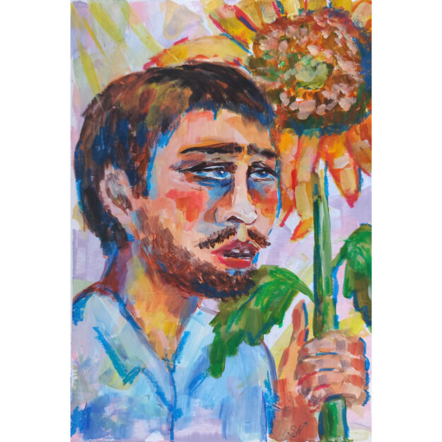 The painting “And you didn’t come today again” depicts a hero who, with sadness and hope, hugs a sunflower to himself, as if it were his only companion.
