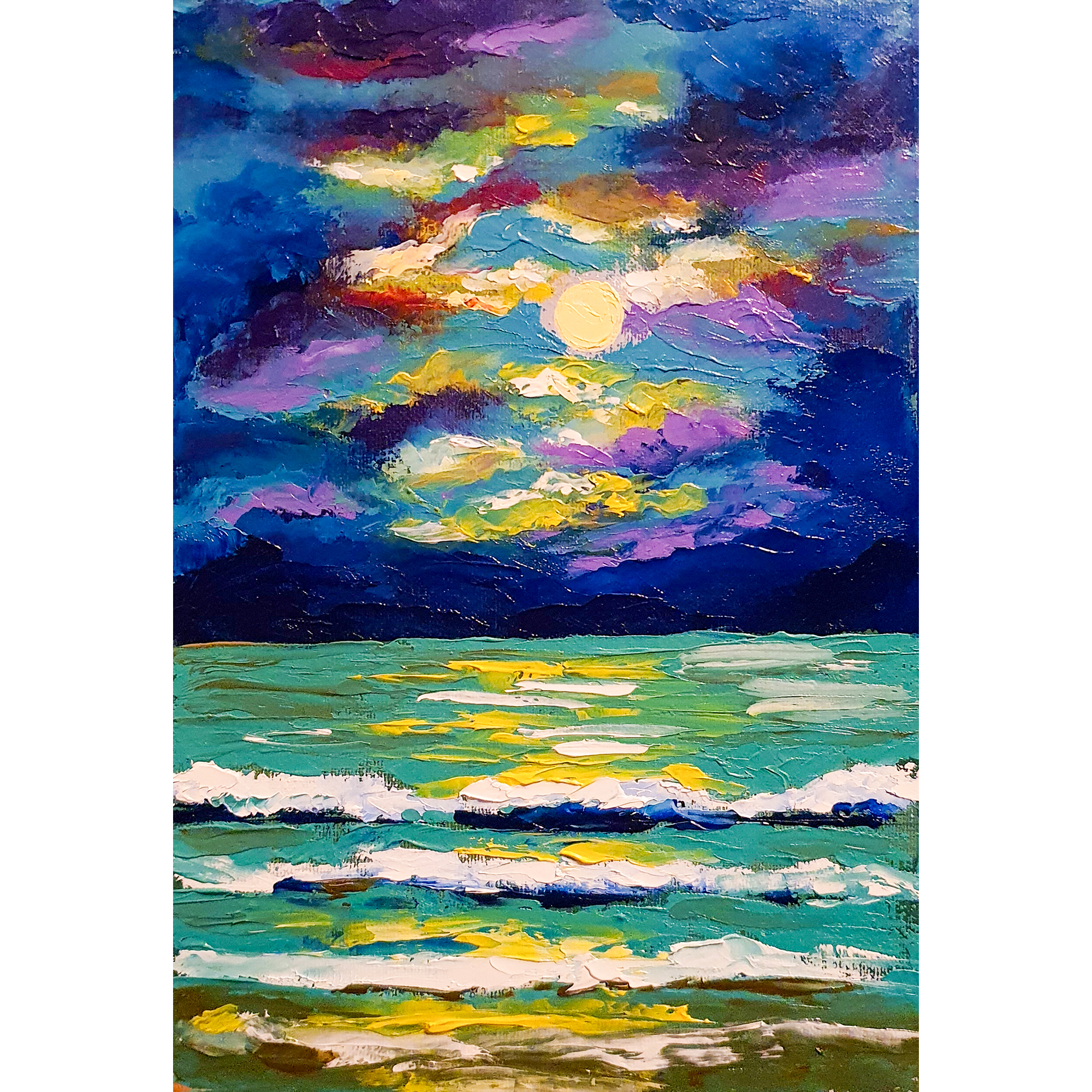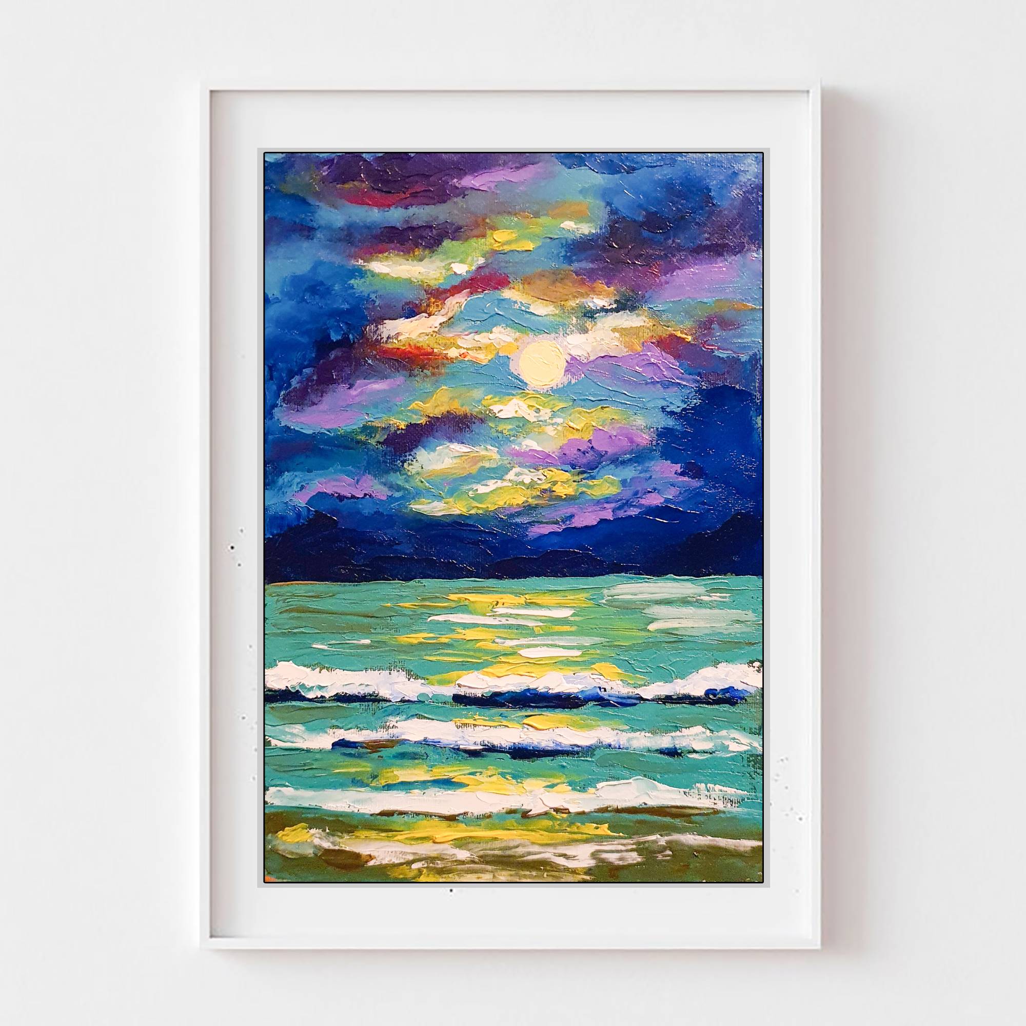 A timeless piece of art, perfect for those who seek the magic of the ocean and the quiet elegance of moonlight in their home.