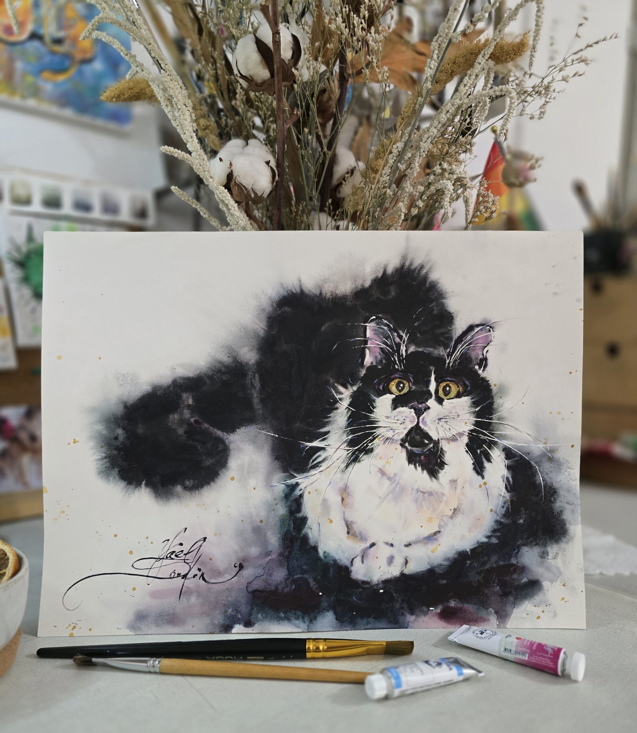 🥰This painting makes a beautiful addition to any home or office interior and a thoughtful gift for cat enthusiasts.