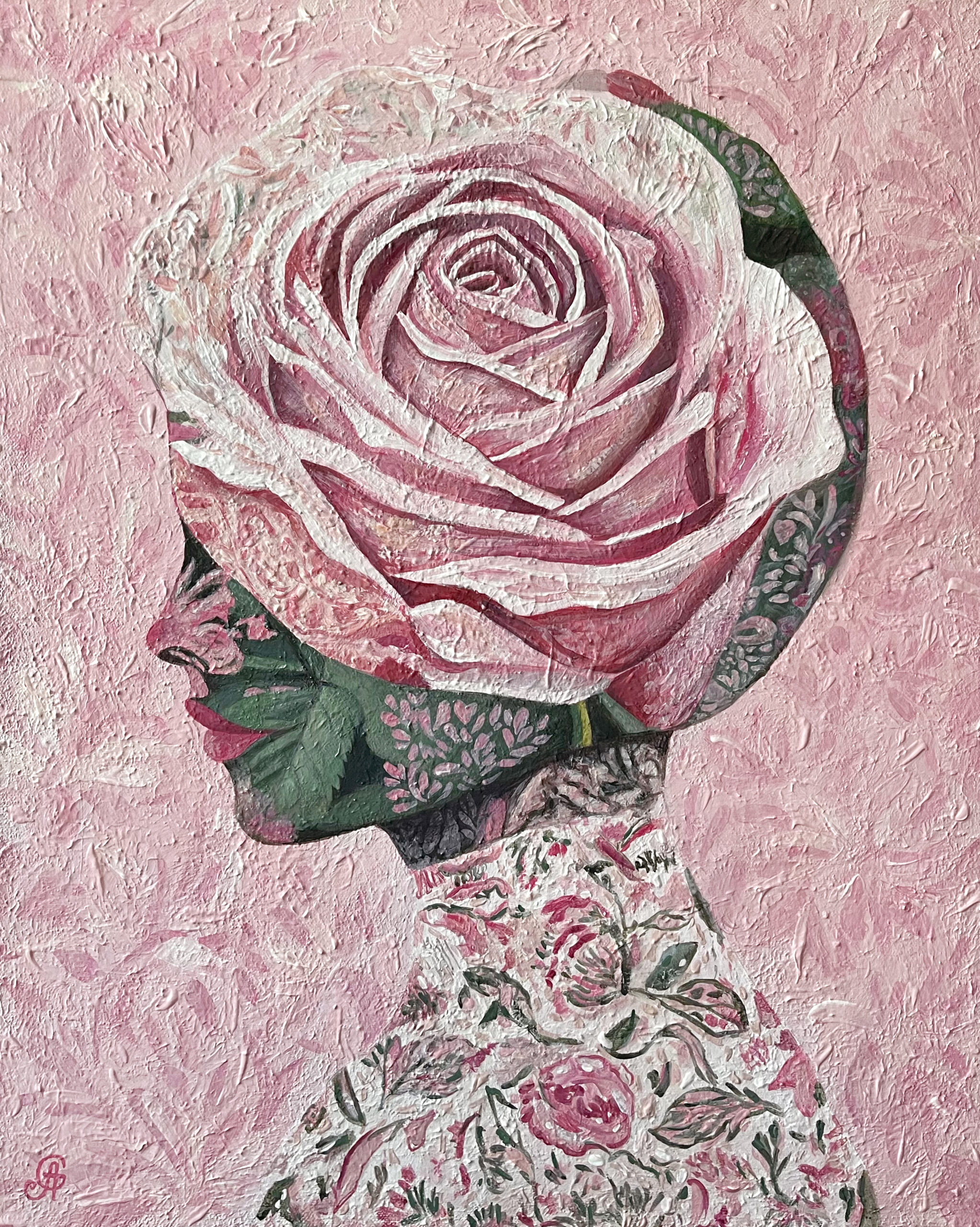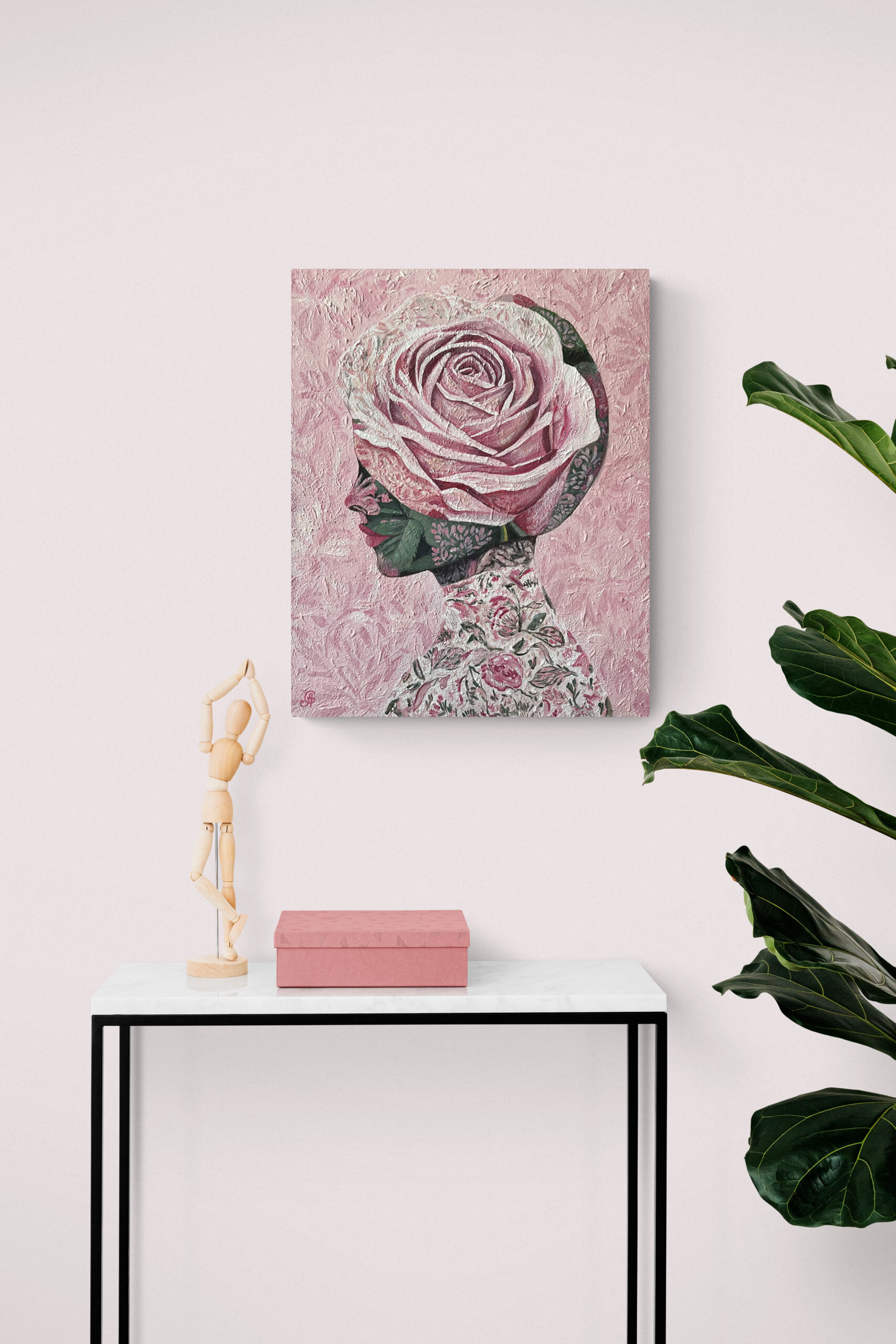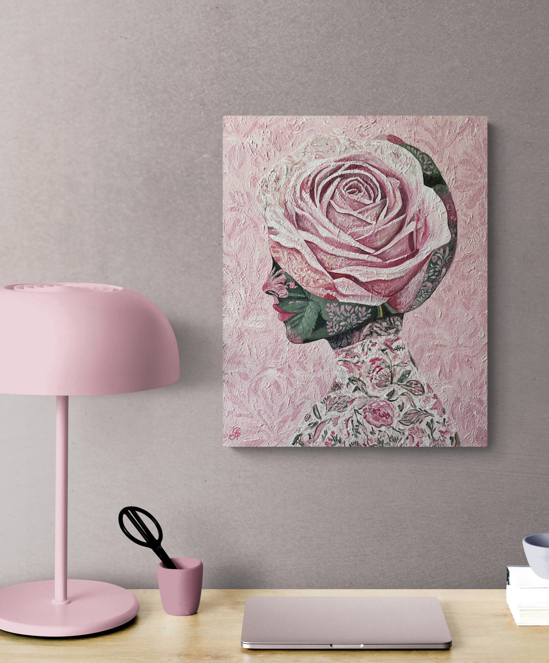 Through soft pink hues and a harmonious composition, the artwork invites viewers to contemplate their own blooming process, gently asking: ‘What makes your true self blossom?