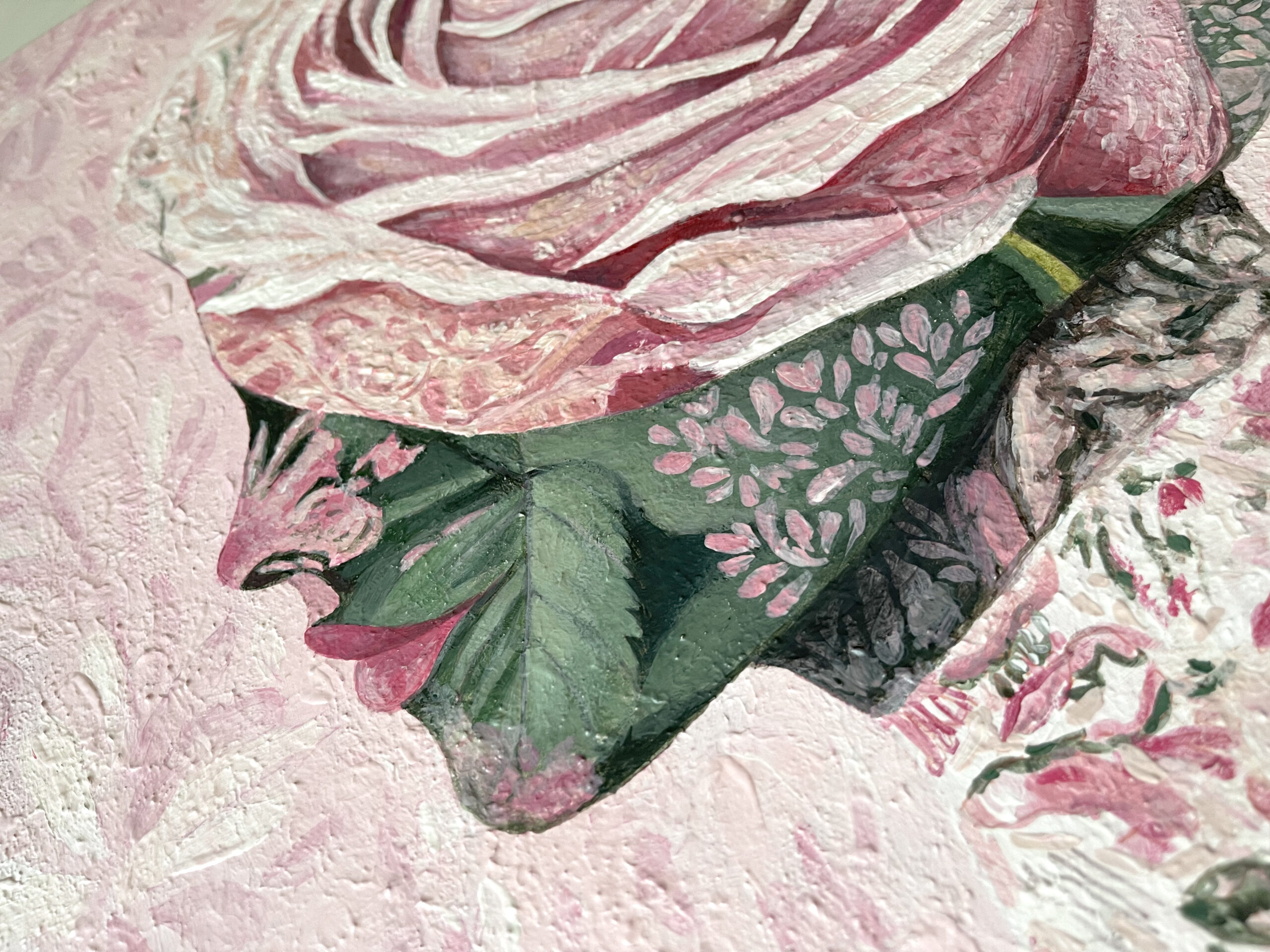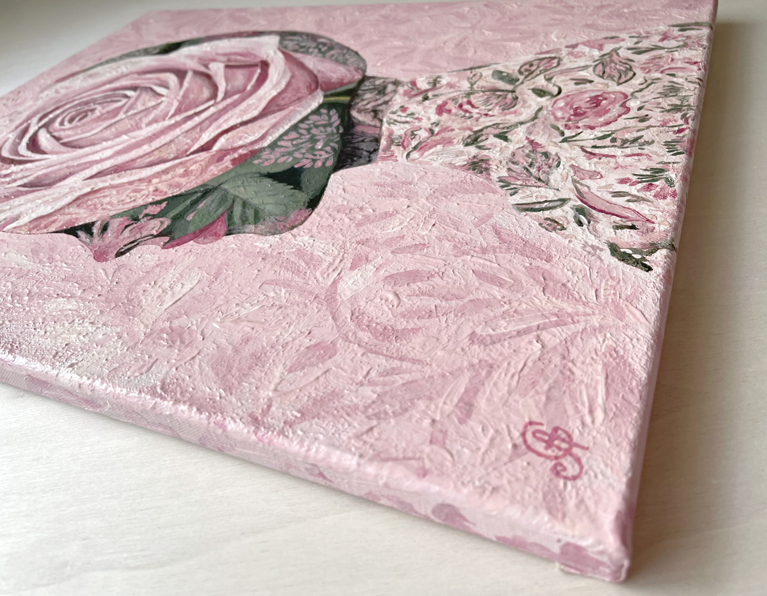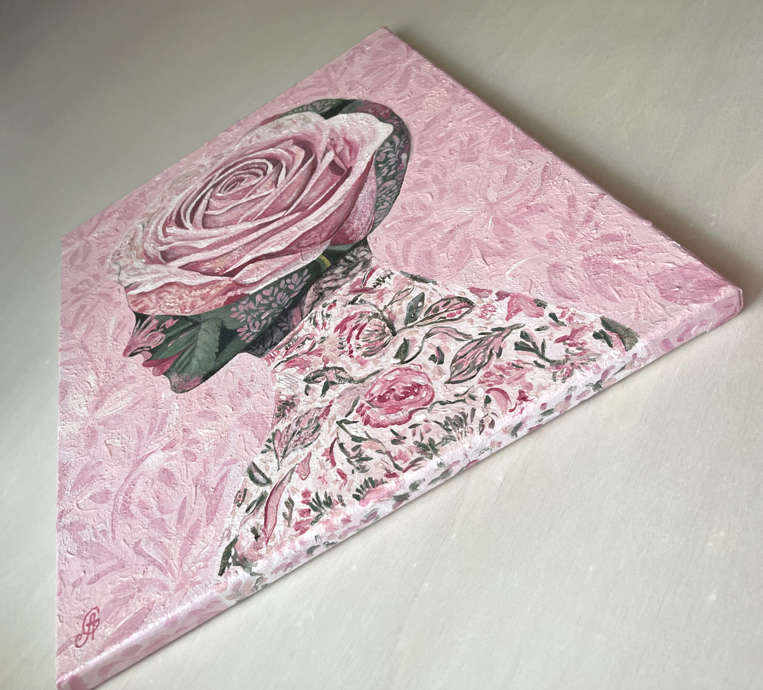 Through soft pink hues and a harmonious composition, the artwork invites viewers to contemplate their own blooming process, gently asking: ‘What makes your true self blossom?