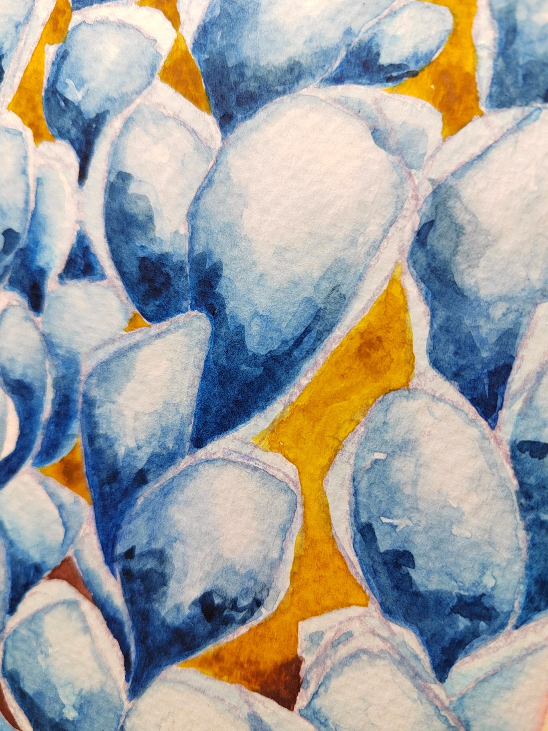 “Blues” is the first painting in my new series of the same name. Created with watercolor and pencil, it captures a quiet sense of longing and reflection. The cool blue shapes unfold over a warm, glowing background — like emotions surfacing through light and shadow. This work speaks of calmness, gentle melancholy, and the beauty of slowing down.
