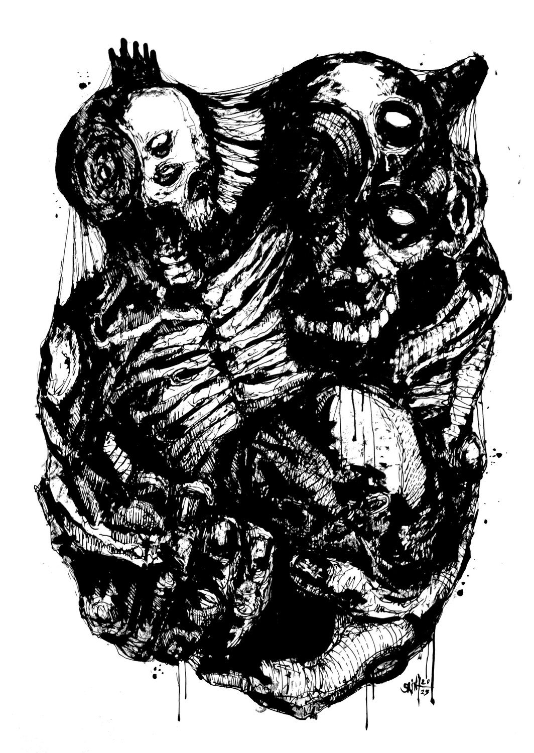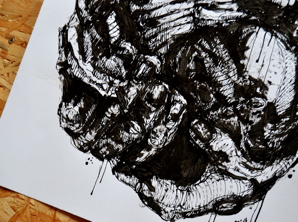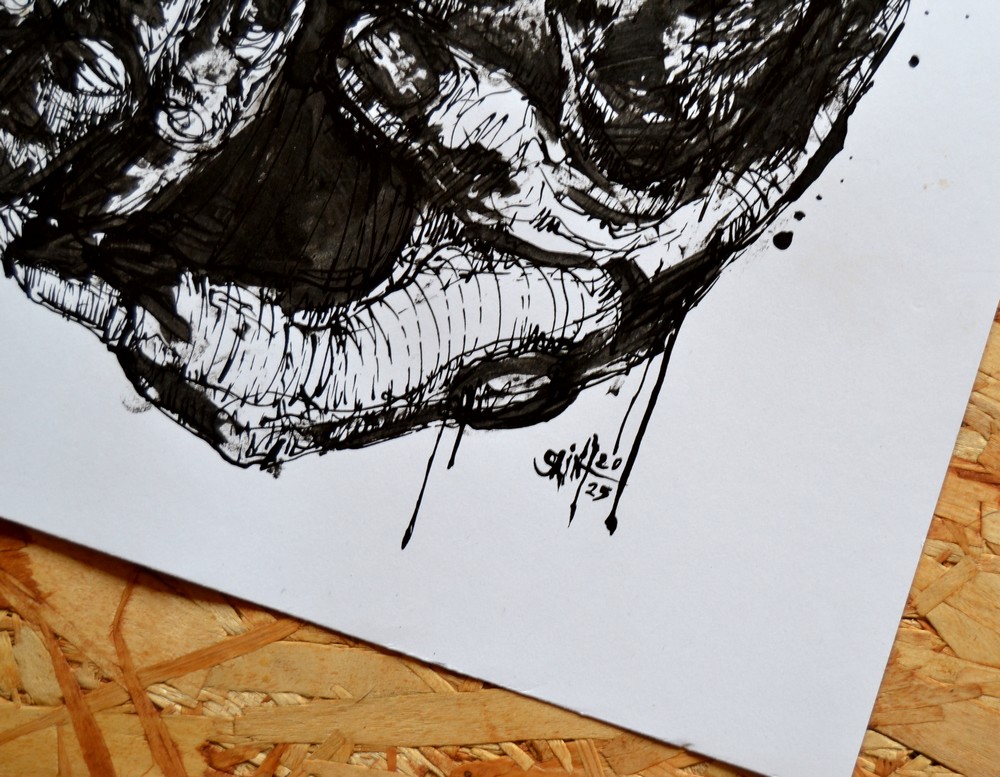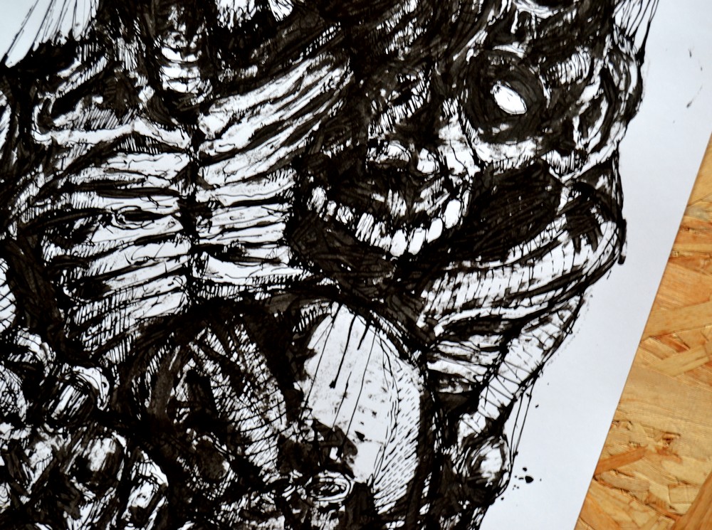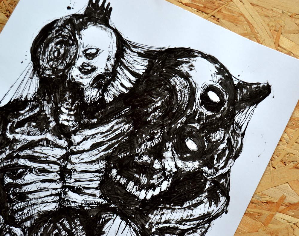 Dark art drawing “Mr. Podderjka”. Acrylic, paper. 42×59,5 cm