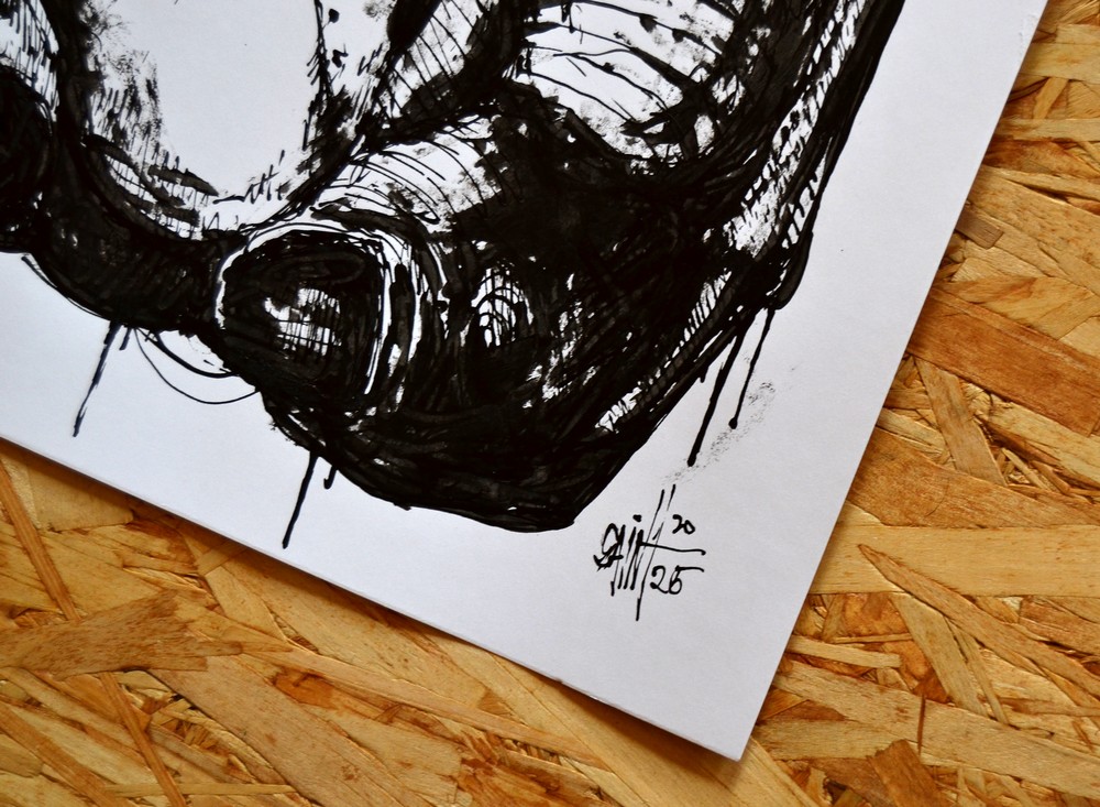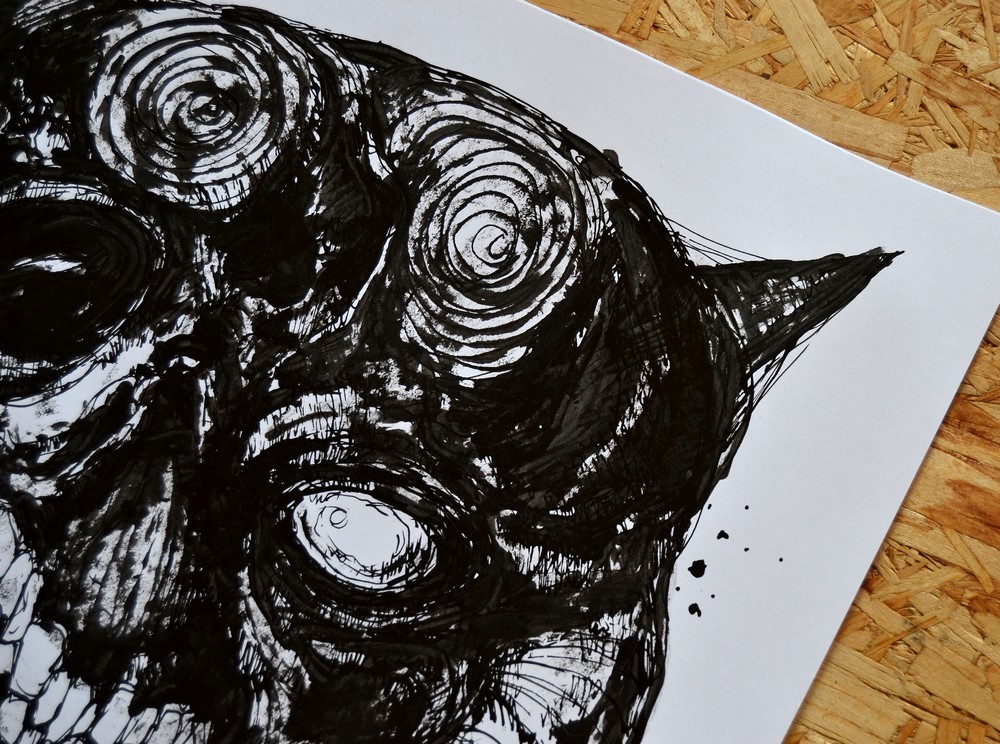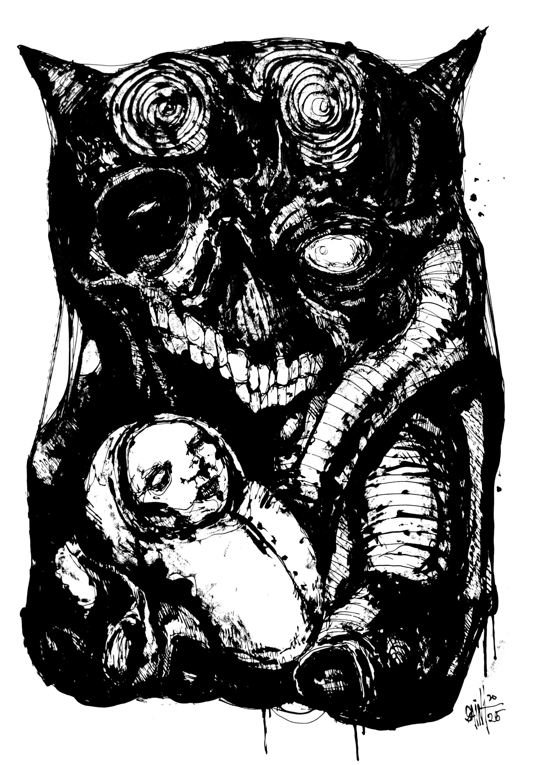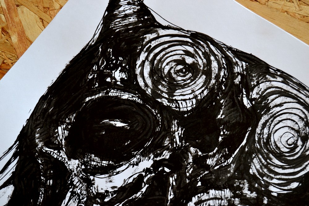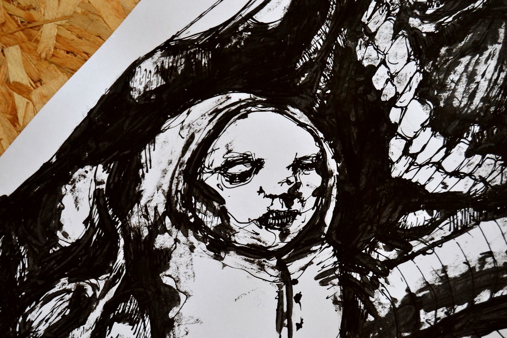Dark Fantasy Art drawing on paper, handmade with acrylic paints (original wall art).