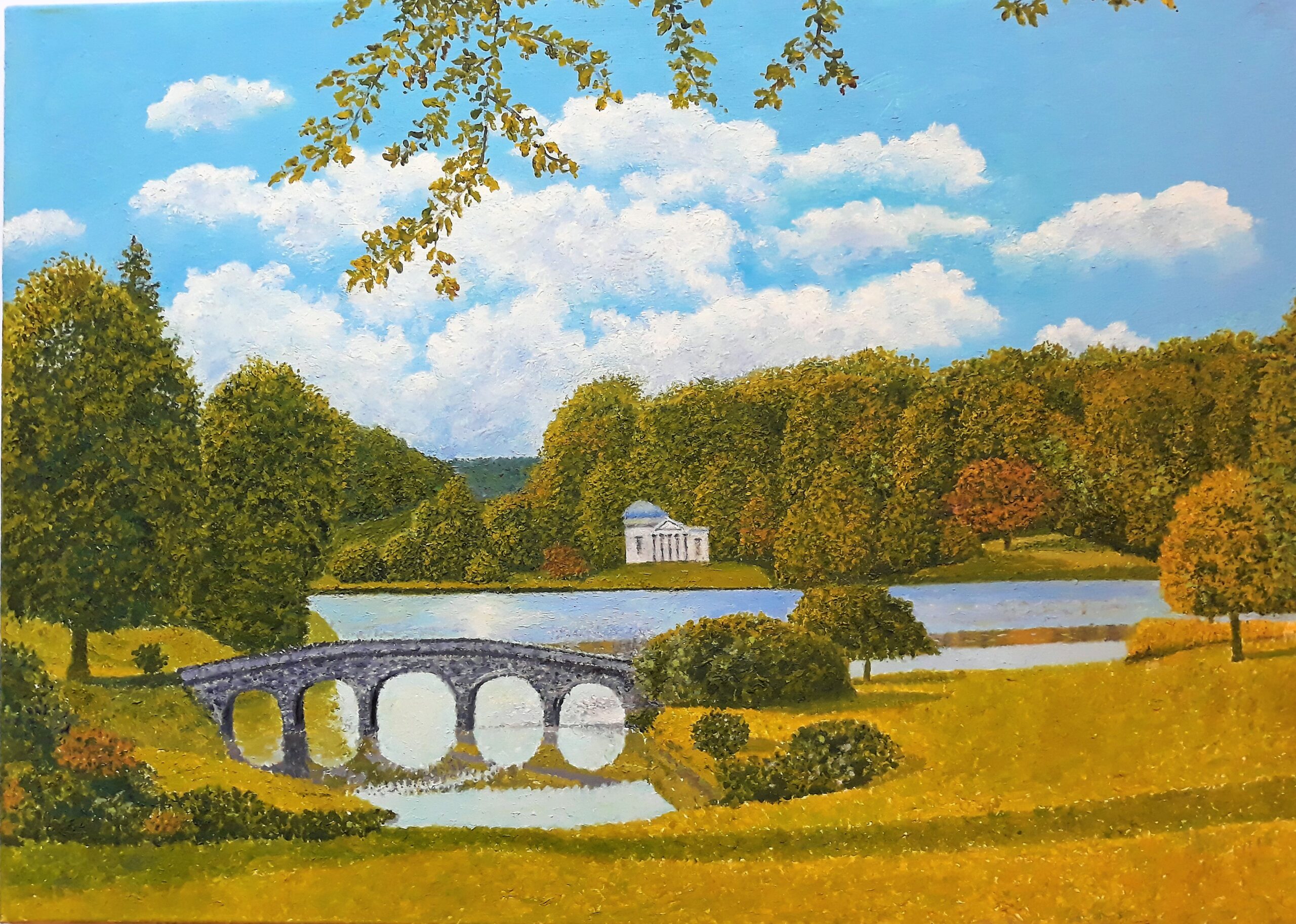 Painting”English garden”; Oil on canvas; 70 x 50 cm, 28 x 20 inches,2016. 550$.
