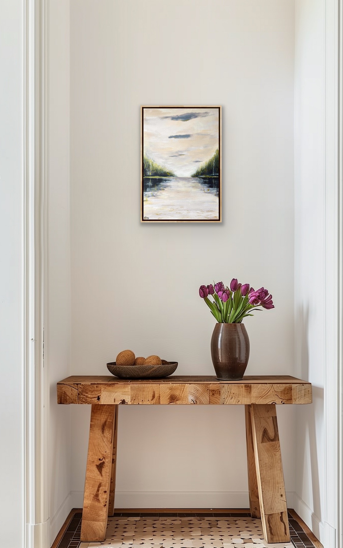 Minimalist Acrylic Painting Lake “Echoes of the Sky”, 50×60 cm