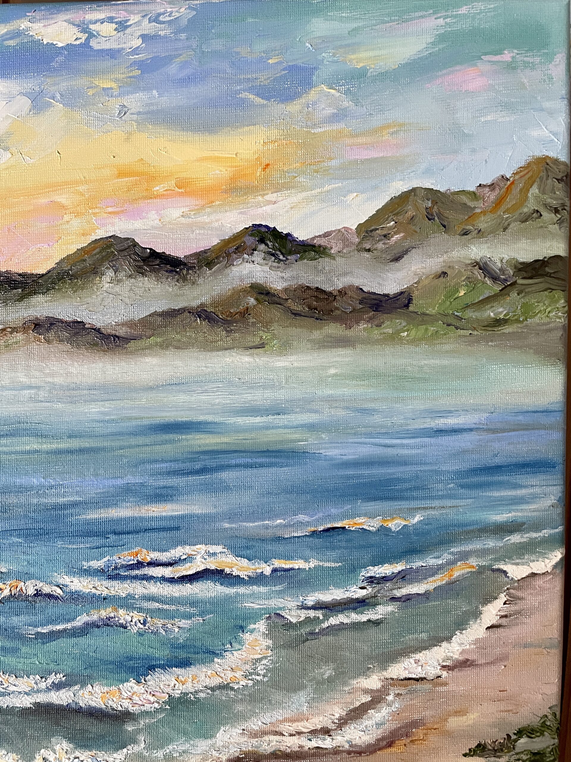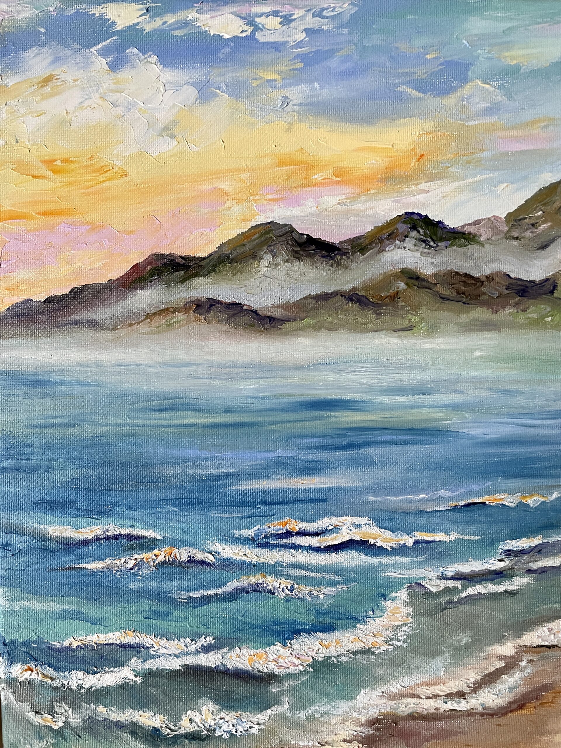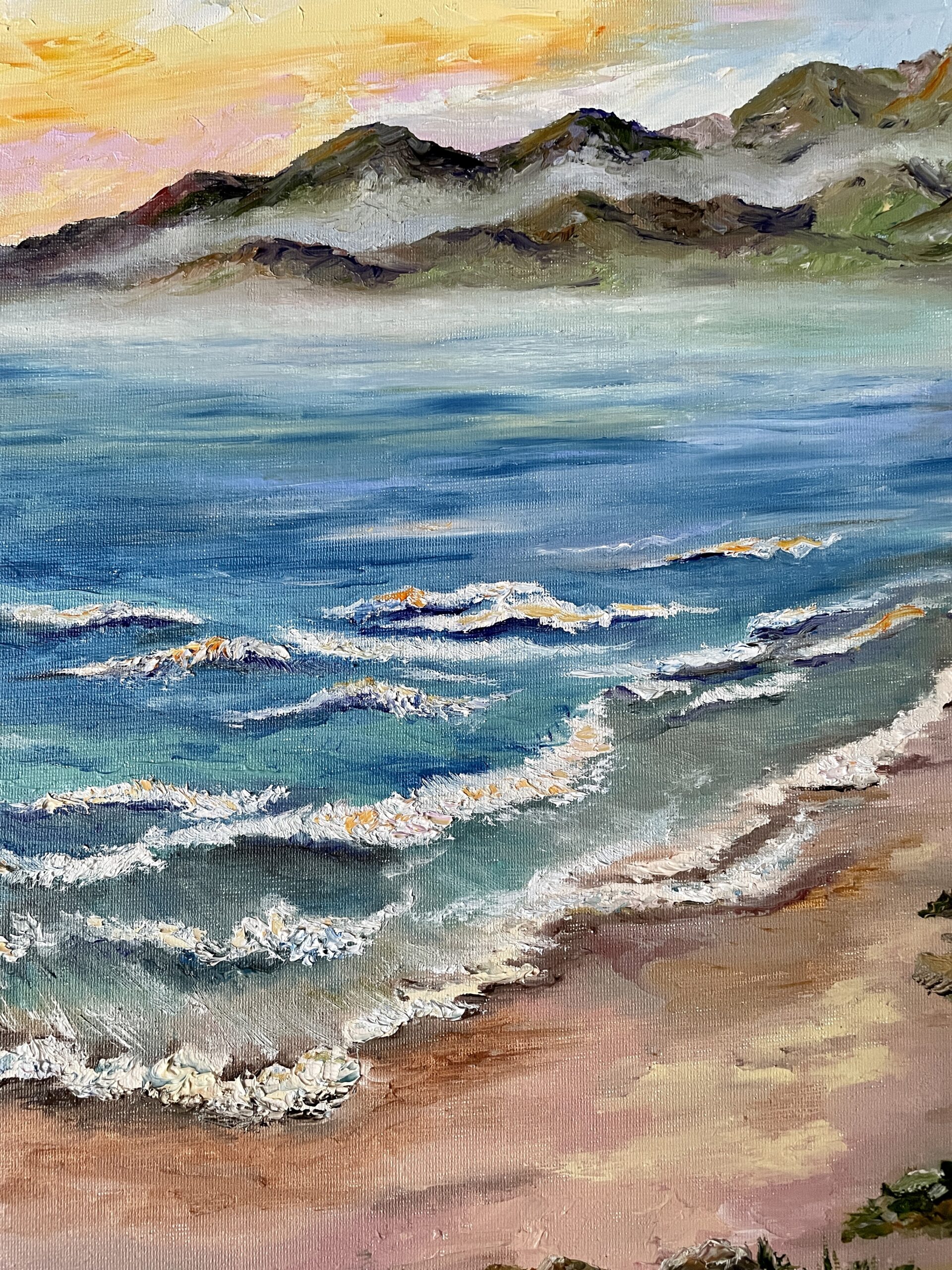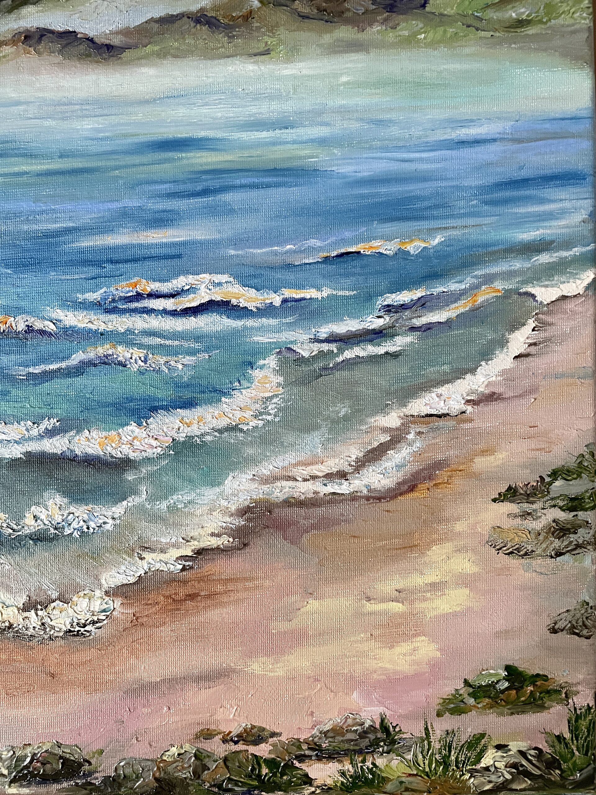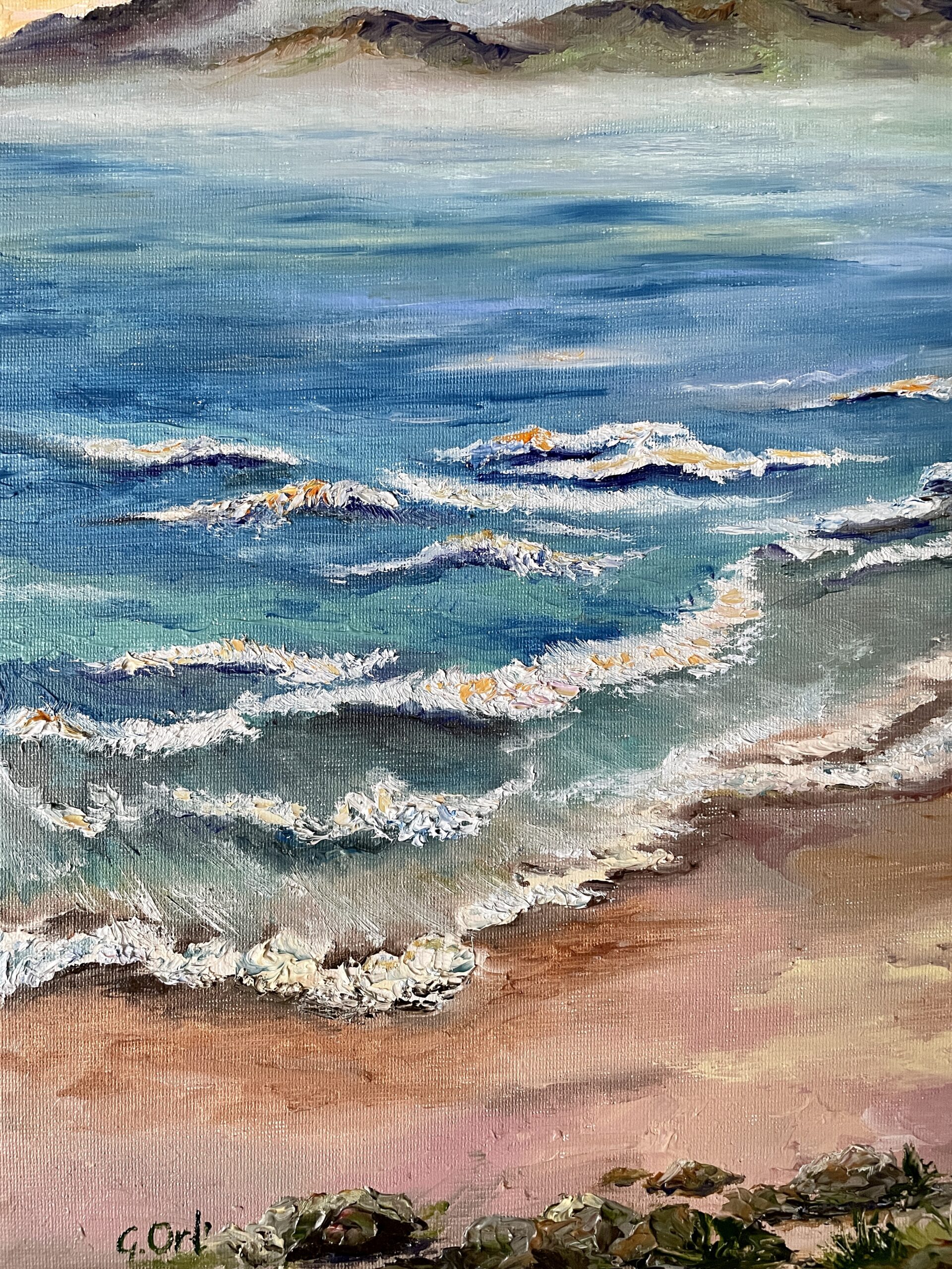 Impressionist style, made with a pallet-knife and brush, textured thick strokes, professional oil paints, stretched canvas 35×25 cm
