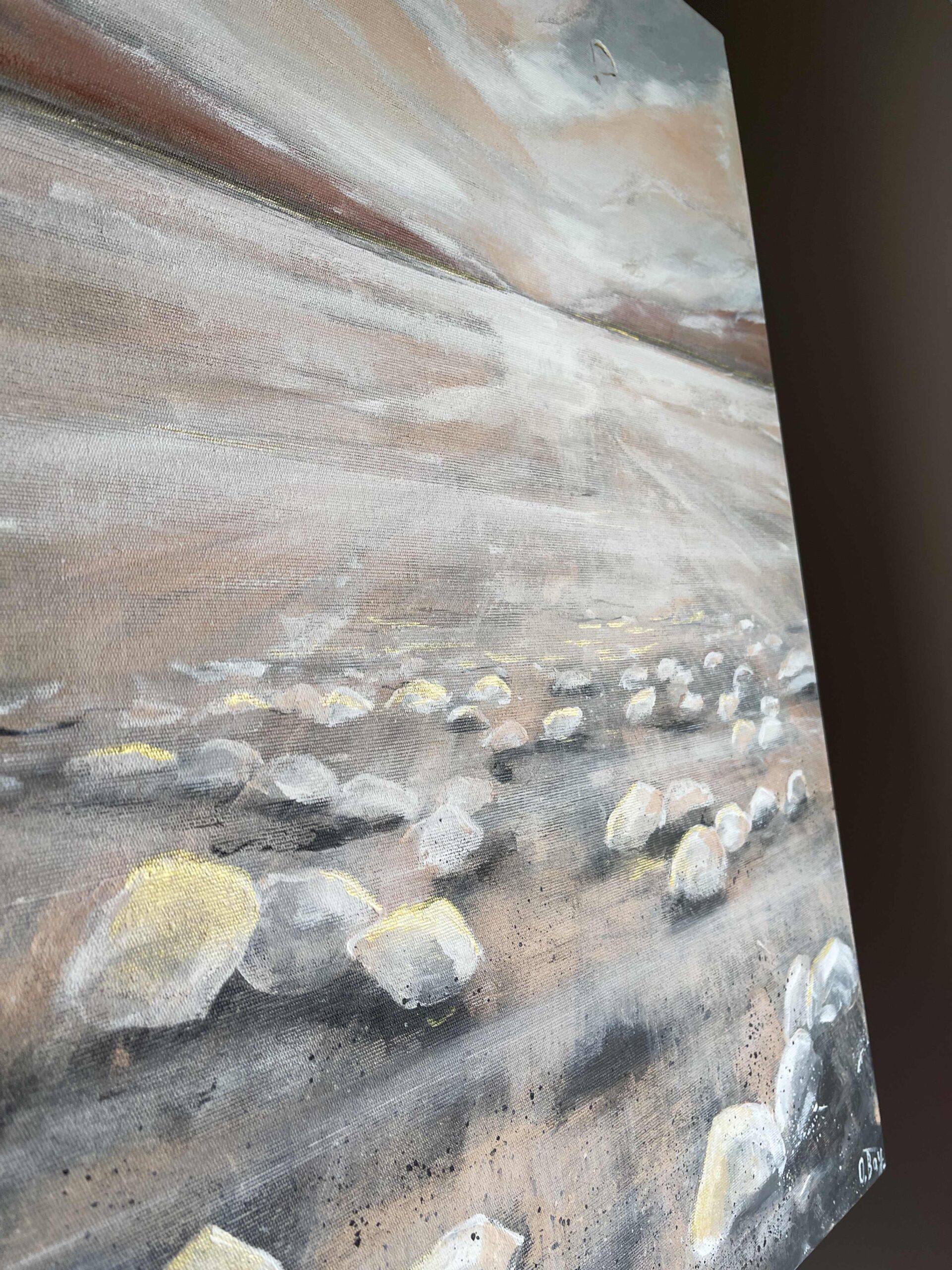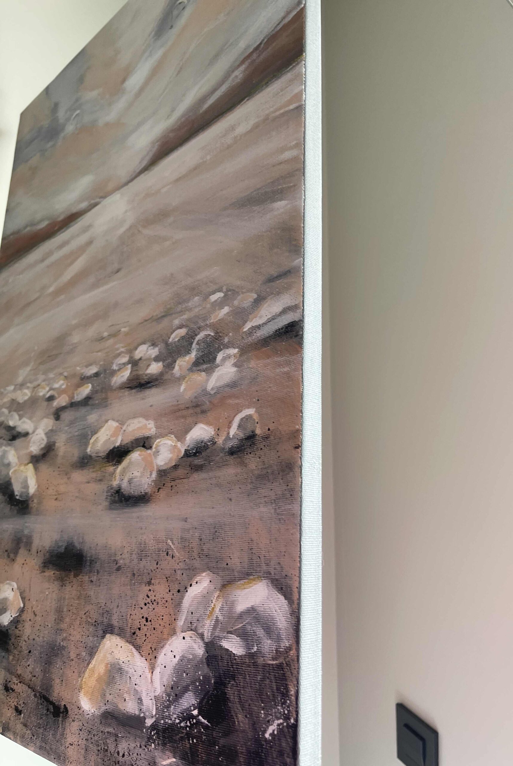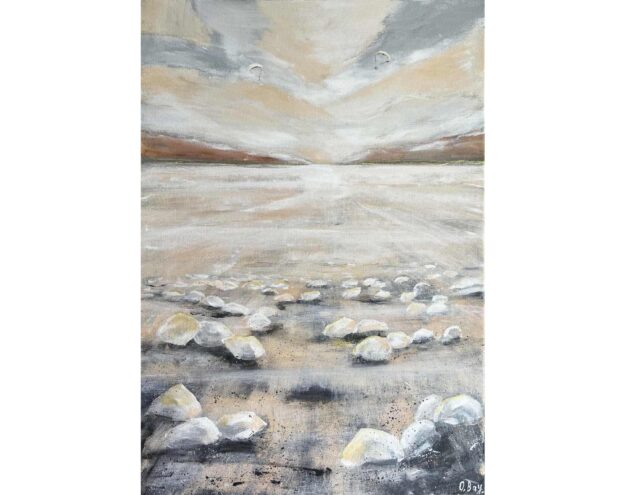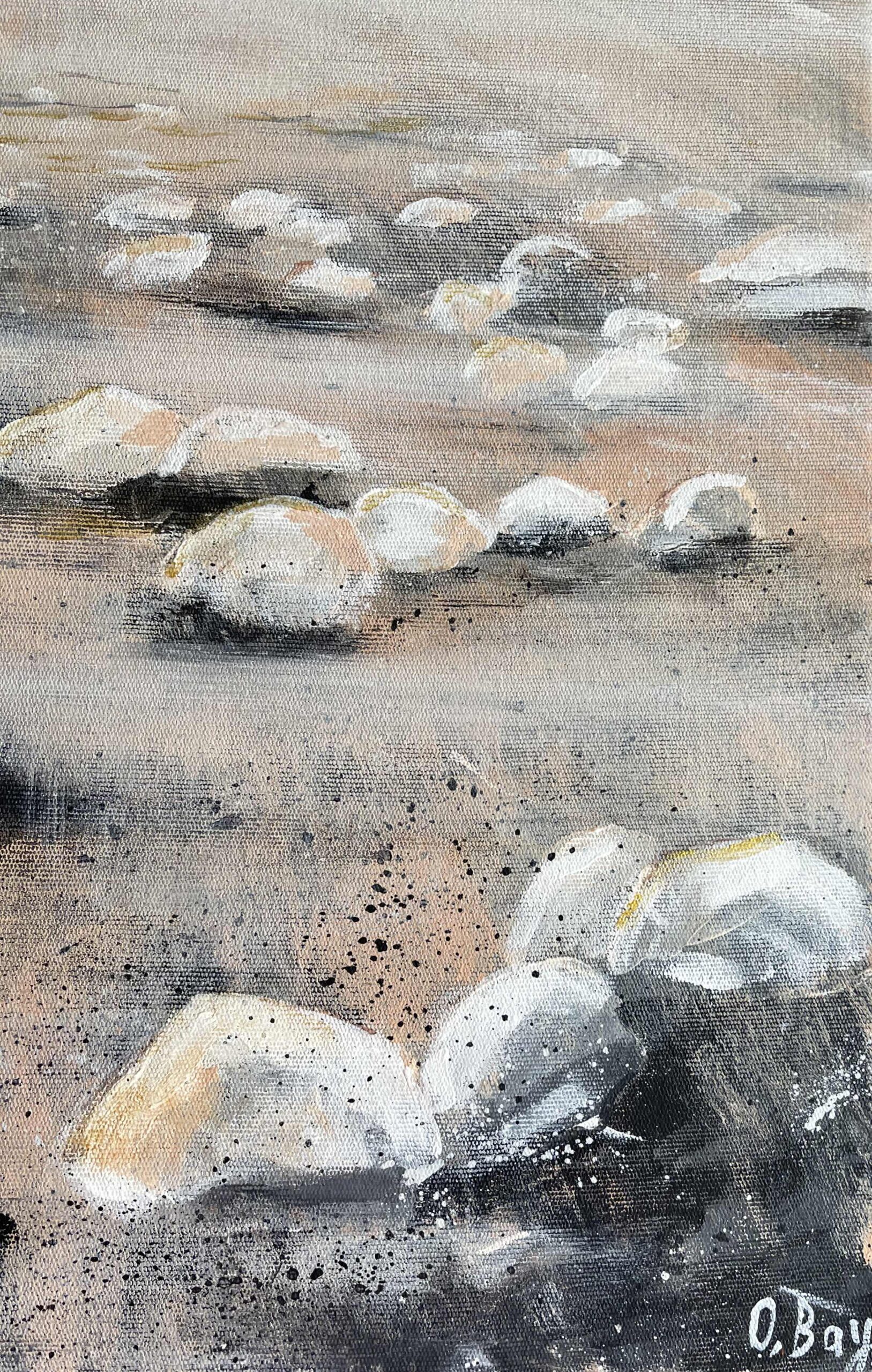This painting conveys a state of gratitude to God for everything we have. The painting has such a bright, good atmosphere. Every soul strives for good, although there are many trials and obstacles on the way, like this stones on the painting…