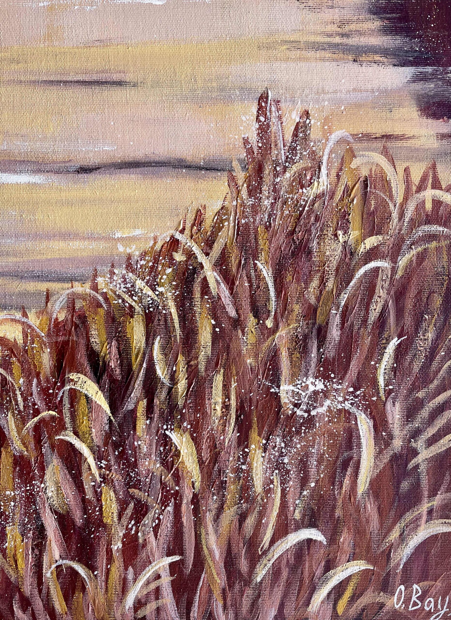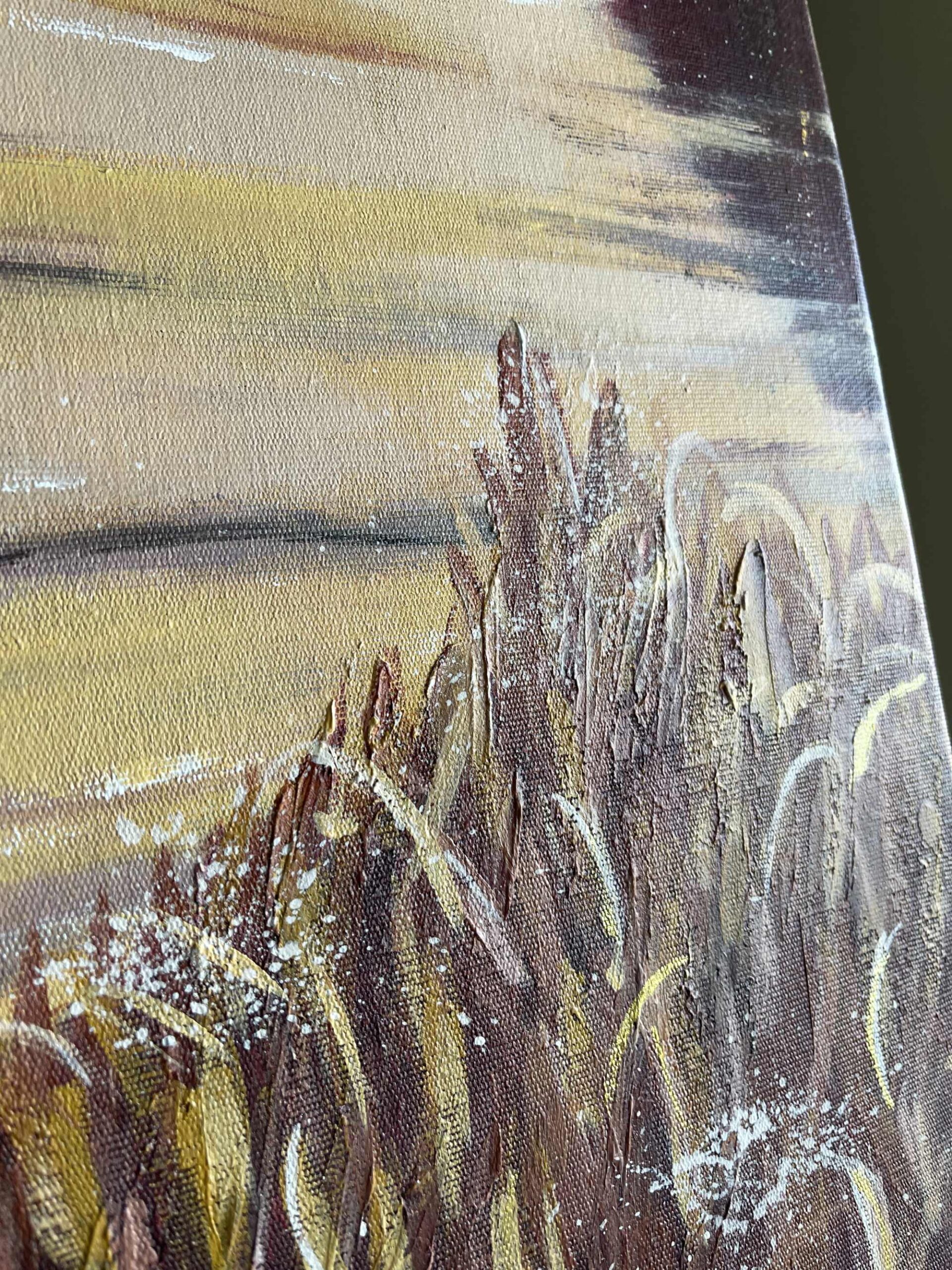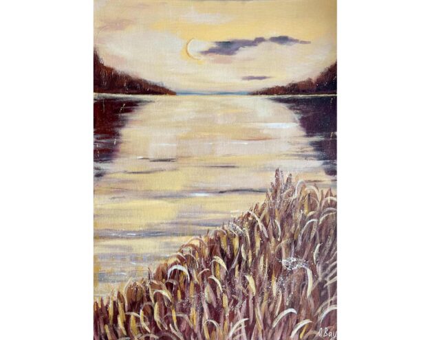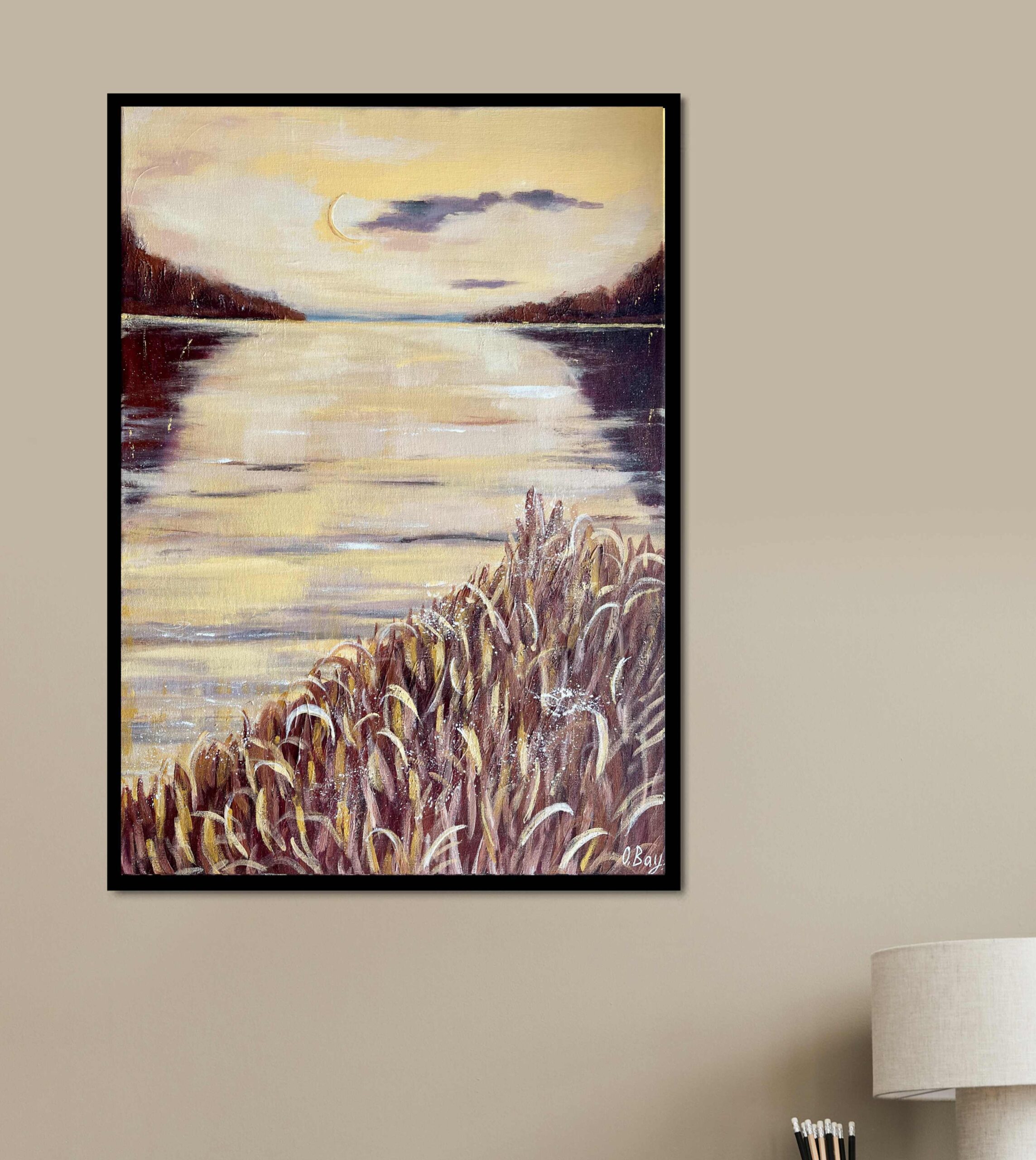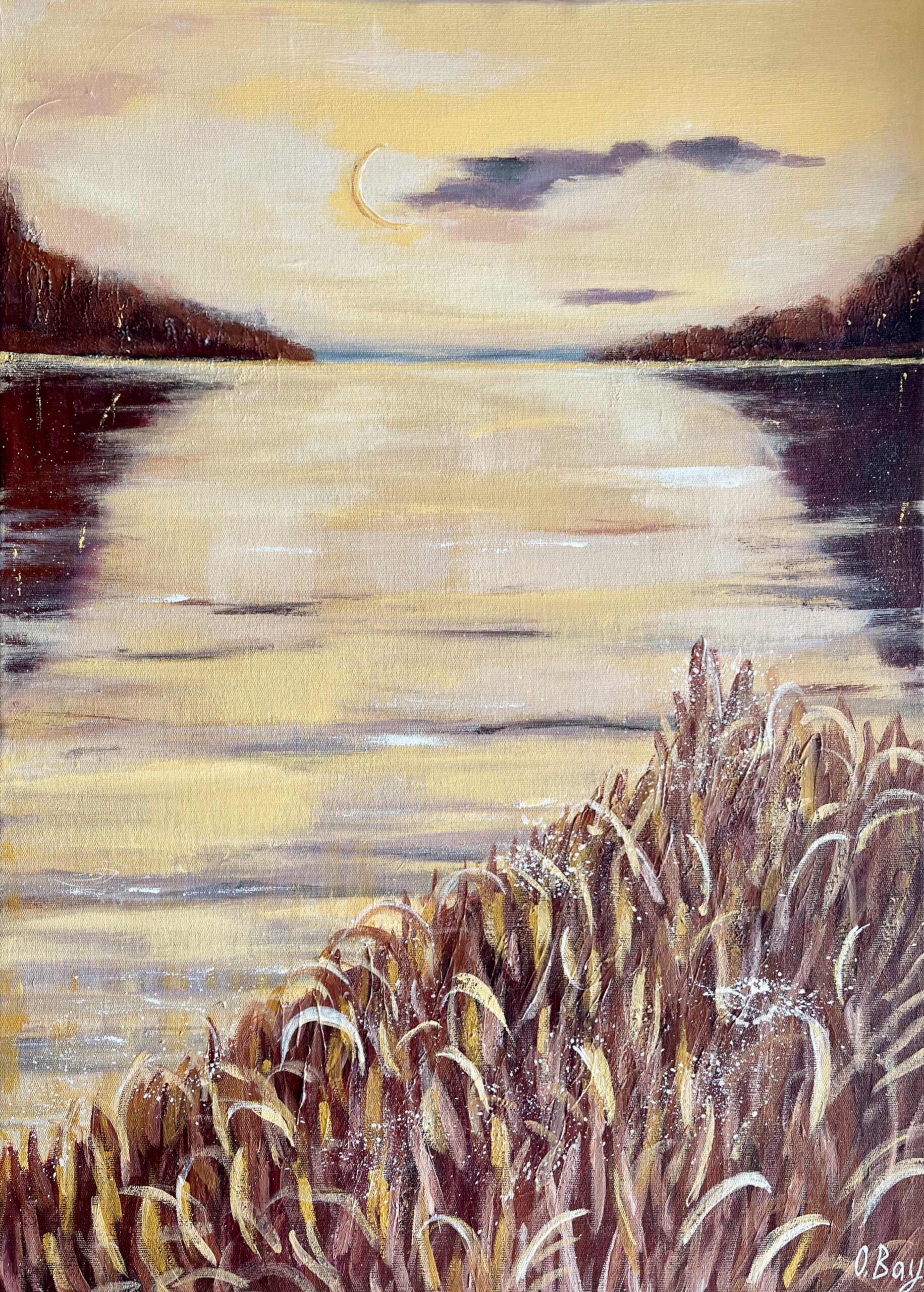 This painting conveys a state of complete peace and happiness, a feeling that everything is as it should be. Its title, “Amber Moonlight”, reflects amber as a symbol of joy and inner light, while the moon reminds us of the cycle of life and the wisdom of accepting things as they are…