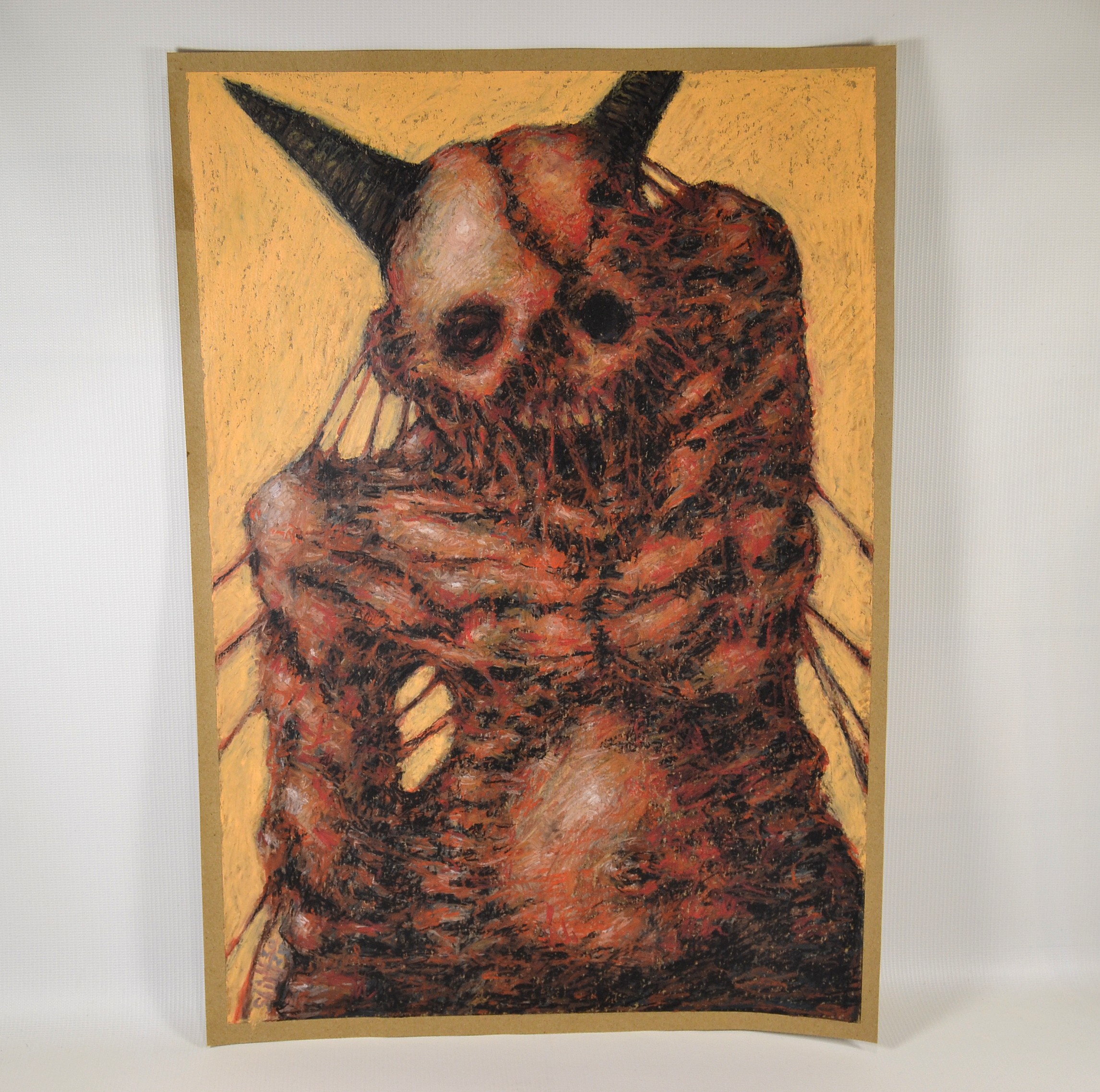 Oil pastel Dark Fantasy Art painting on paper, covered with acrylic varnish (original, not printed).