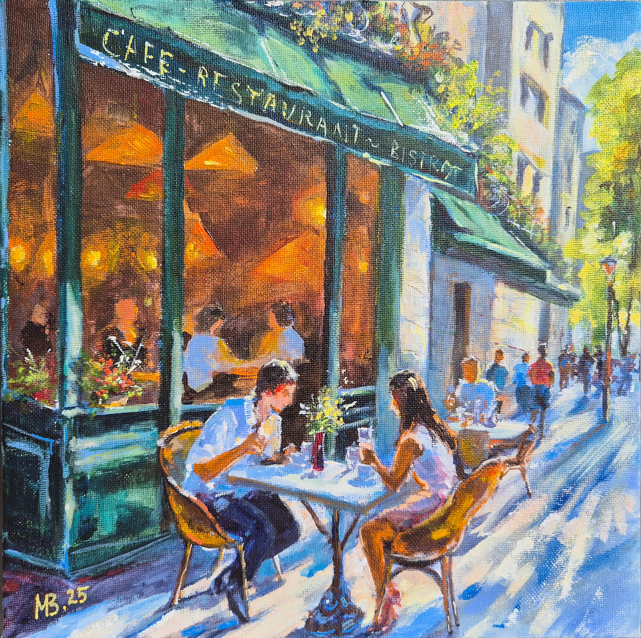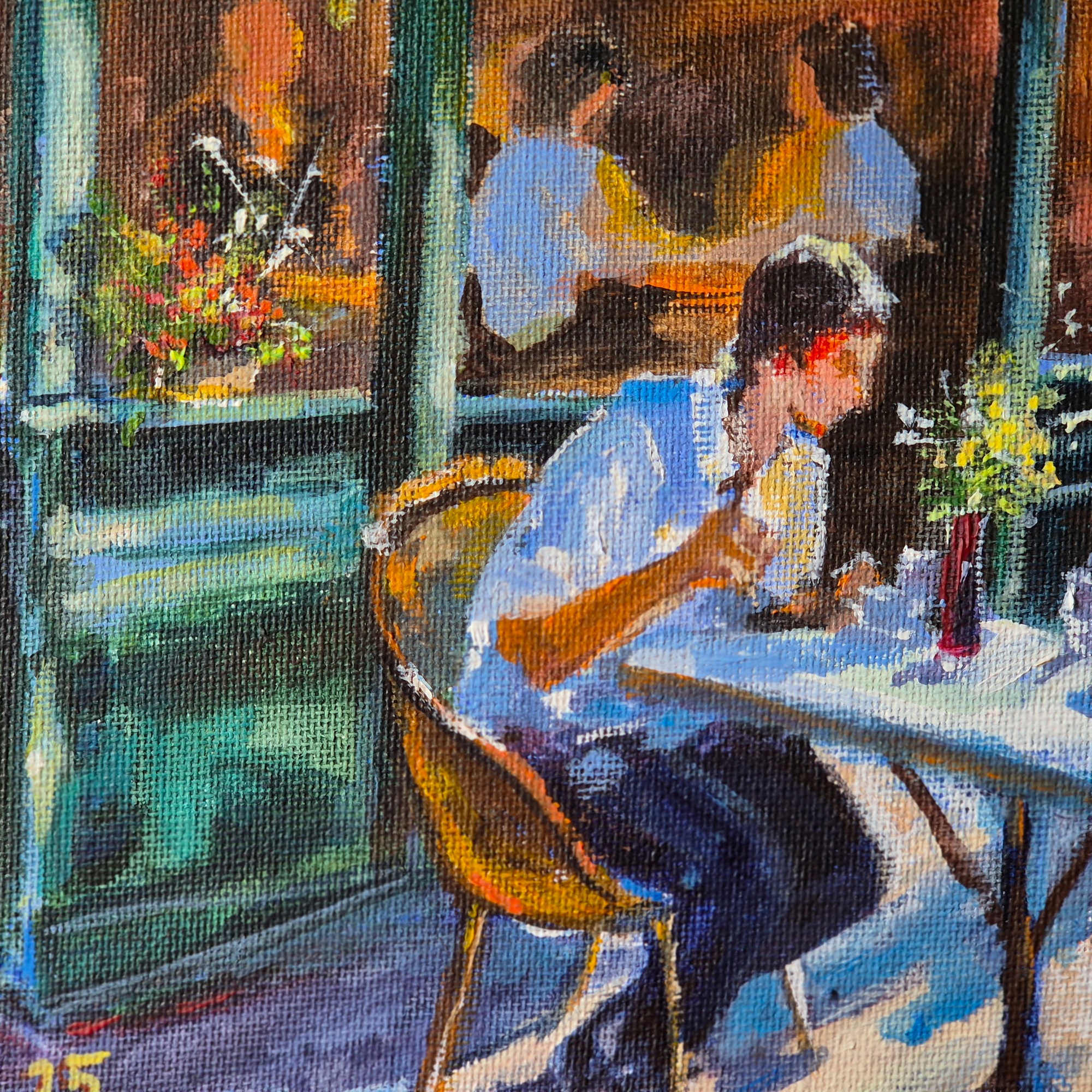 Oil Painting Paris France Modern Cityscape 30x30cm 12×12 inch Canvas Art Paris Street Scene France Summer Street Cafe Painting Travel Gift Parisian Restaurant Street Art People Art