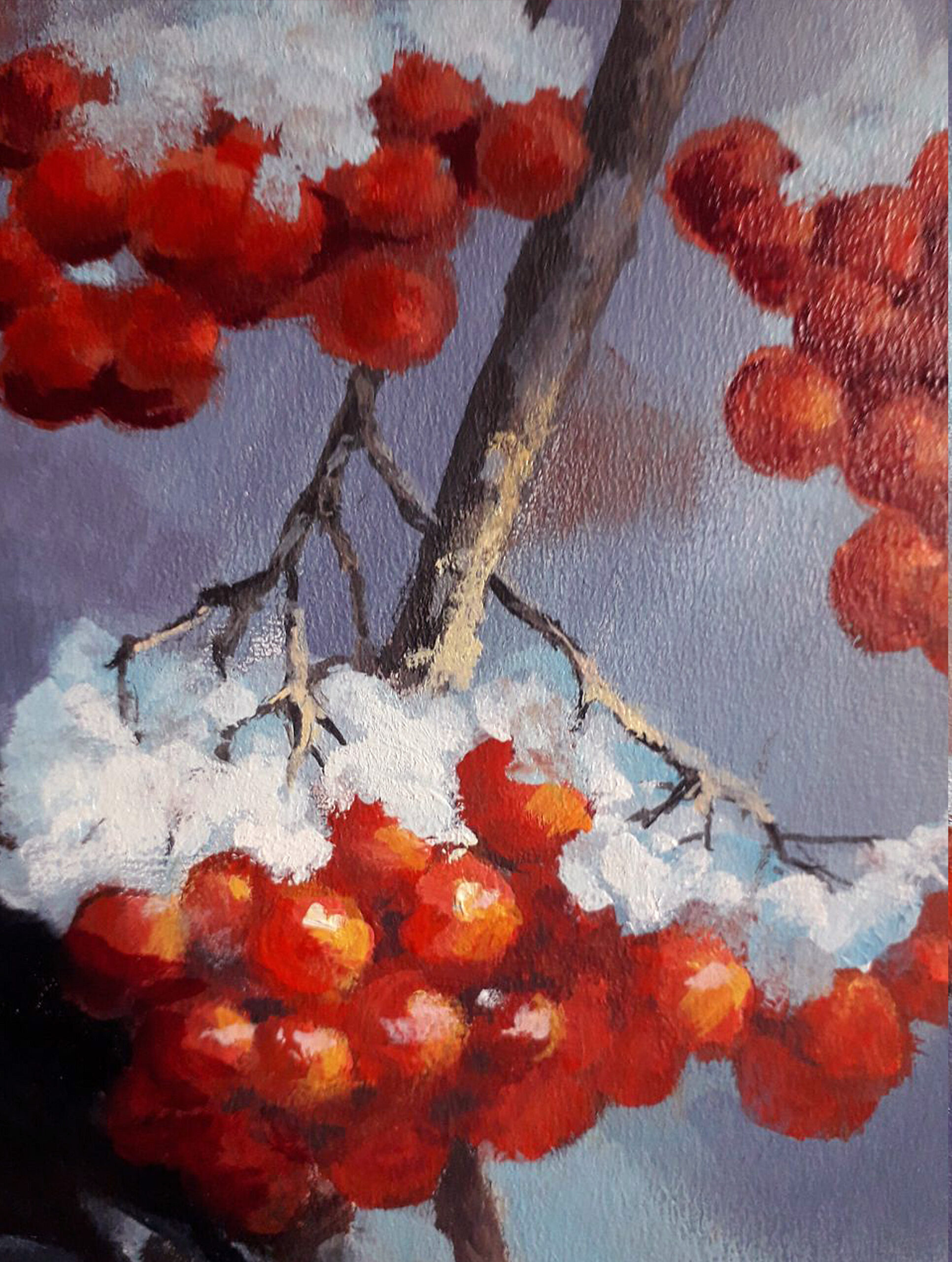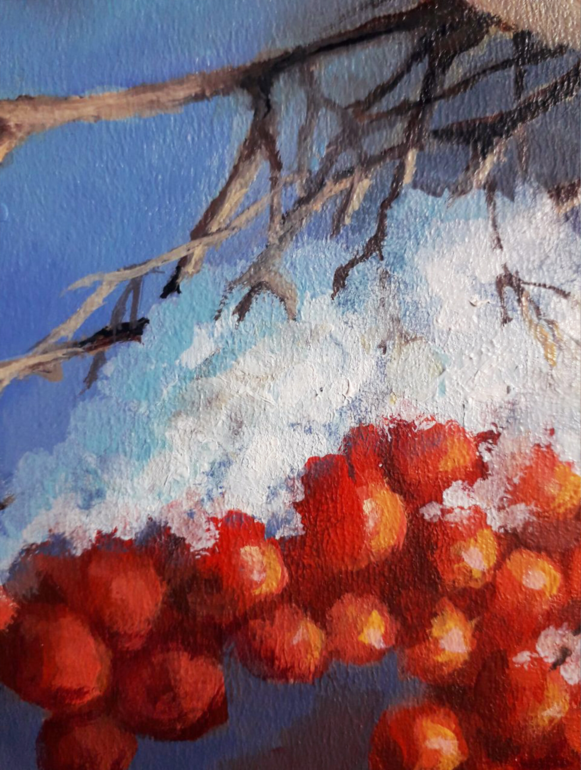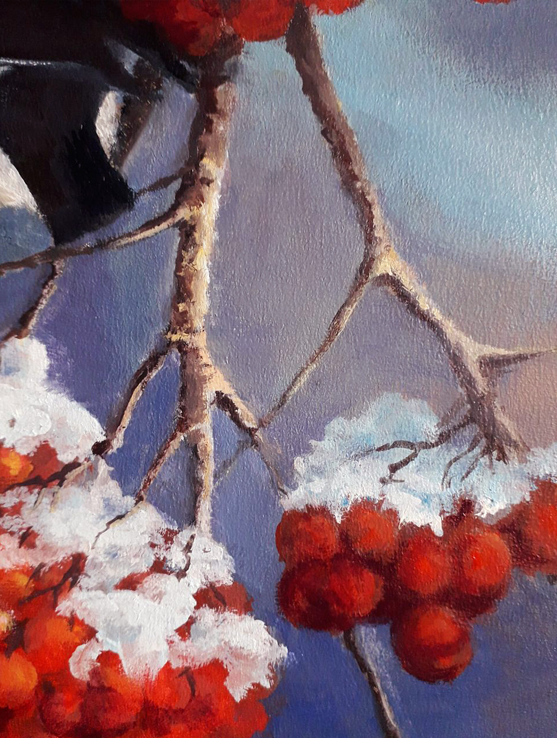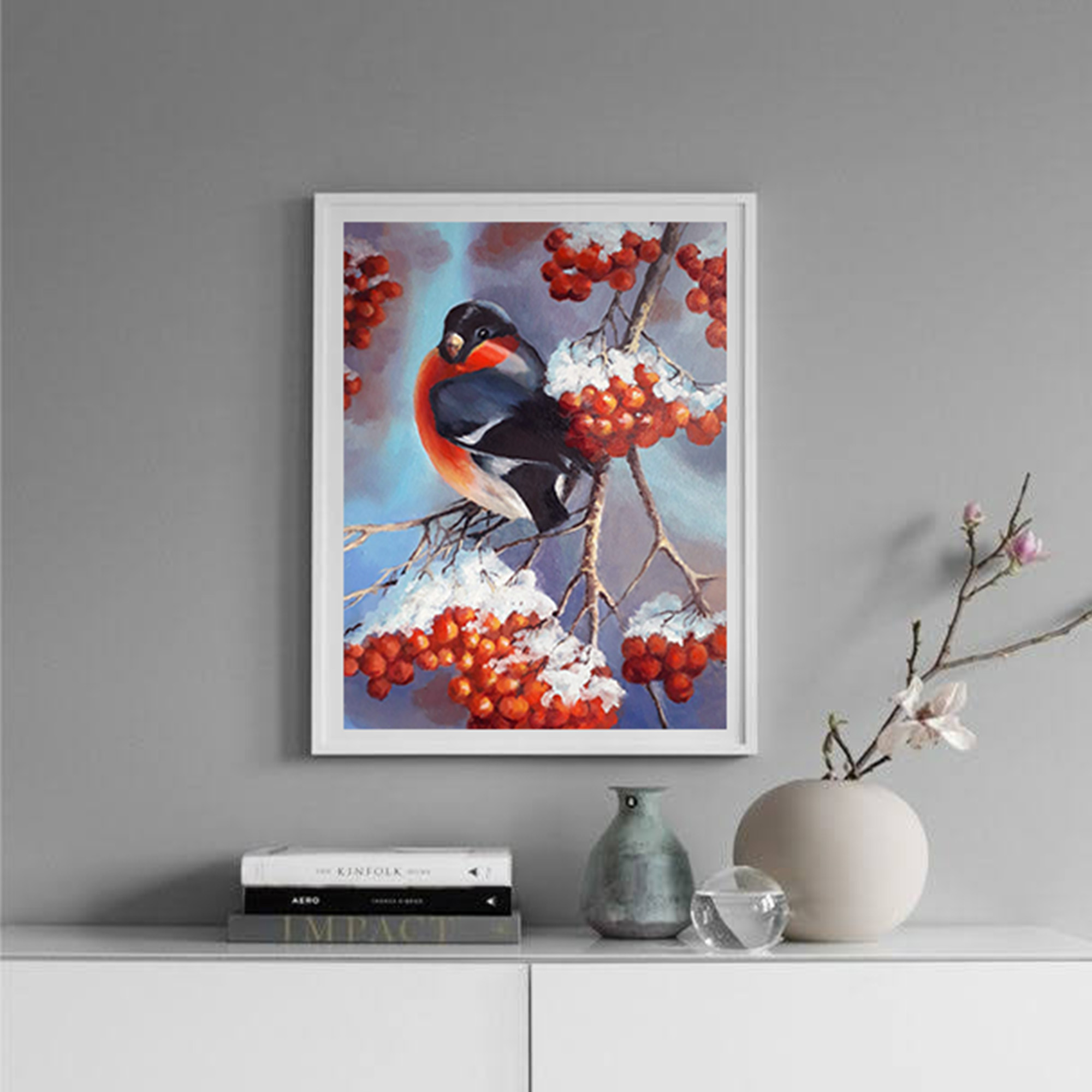 Original oil painting. Bird. Bullfinch. 20×25 cm / 7.6×9.6 in