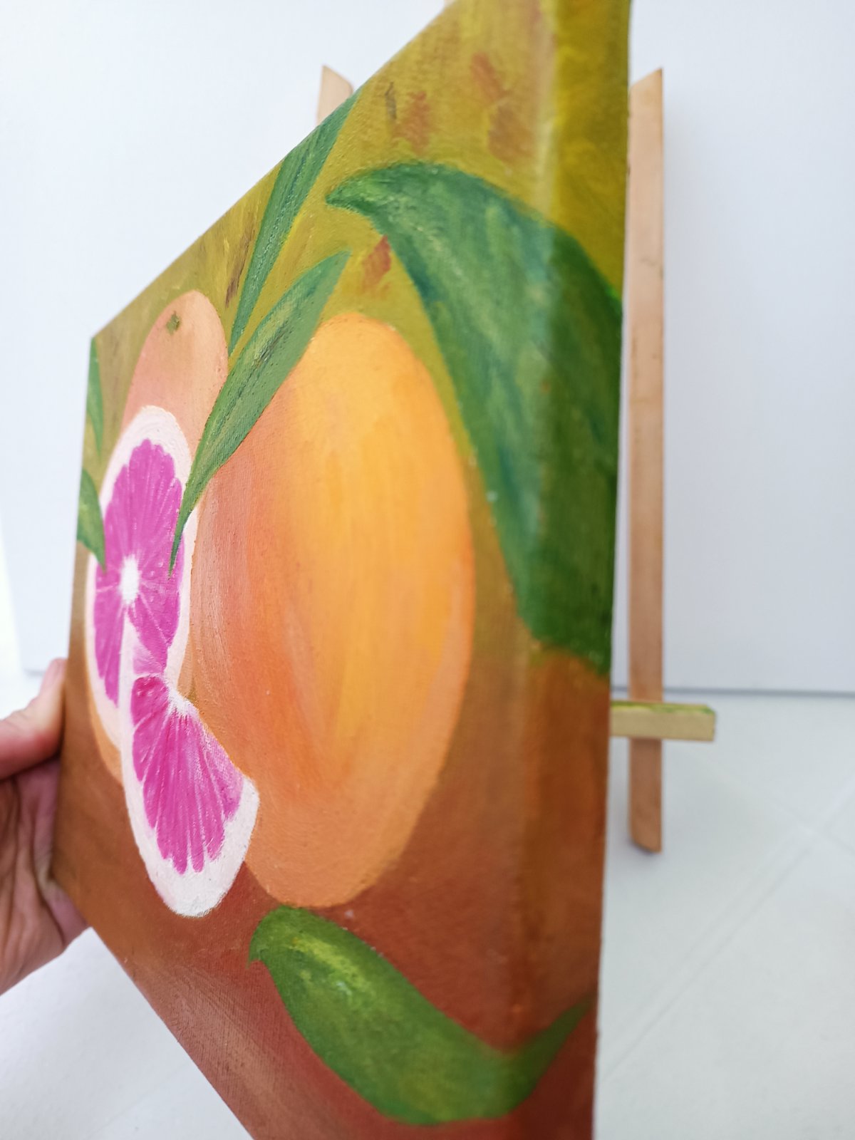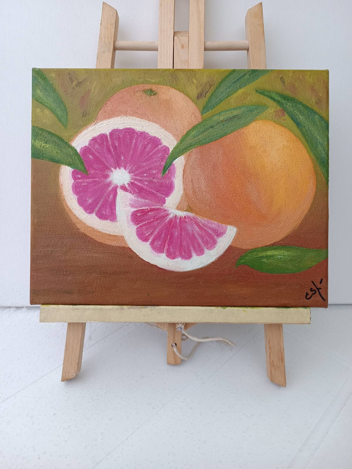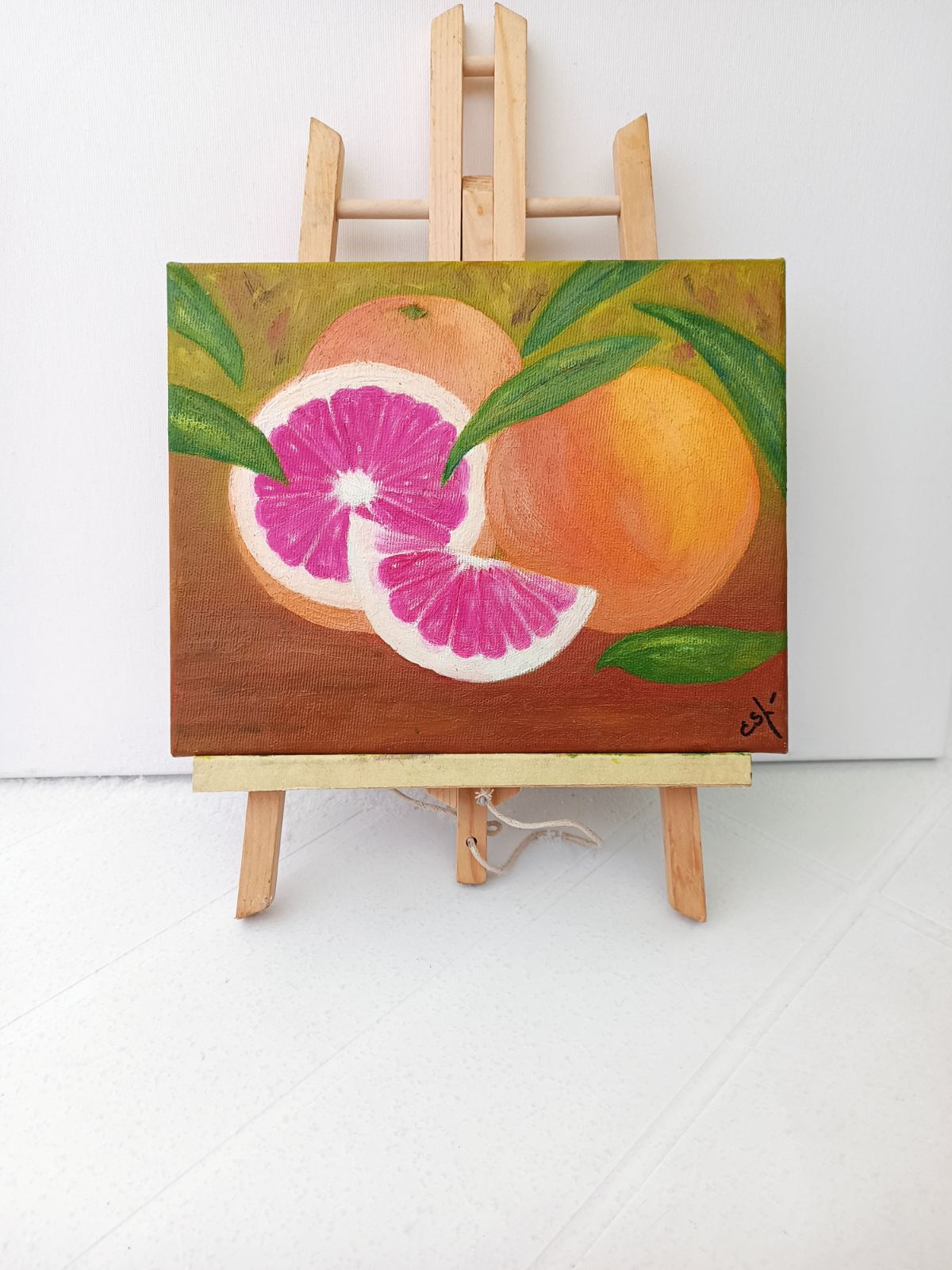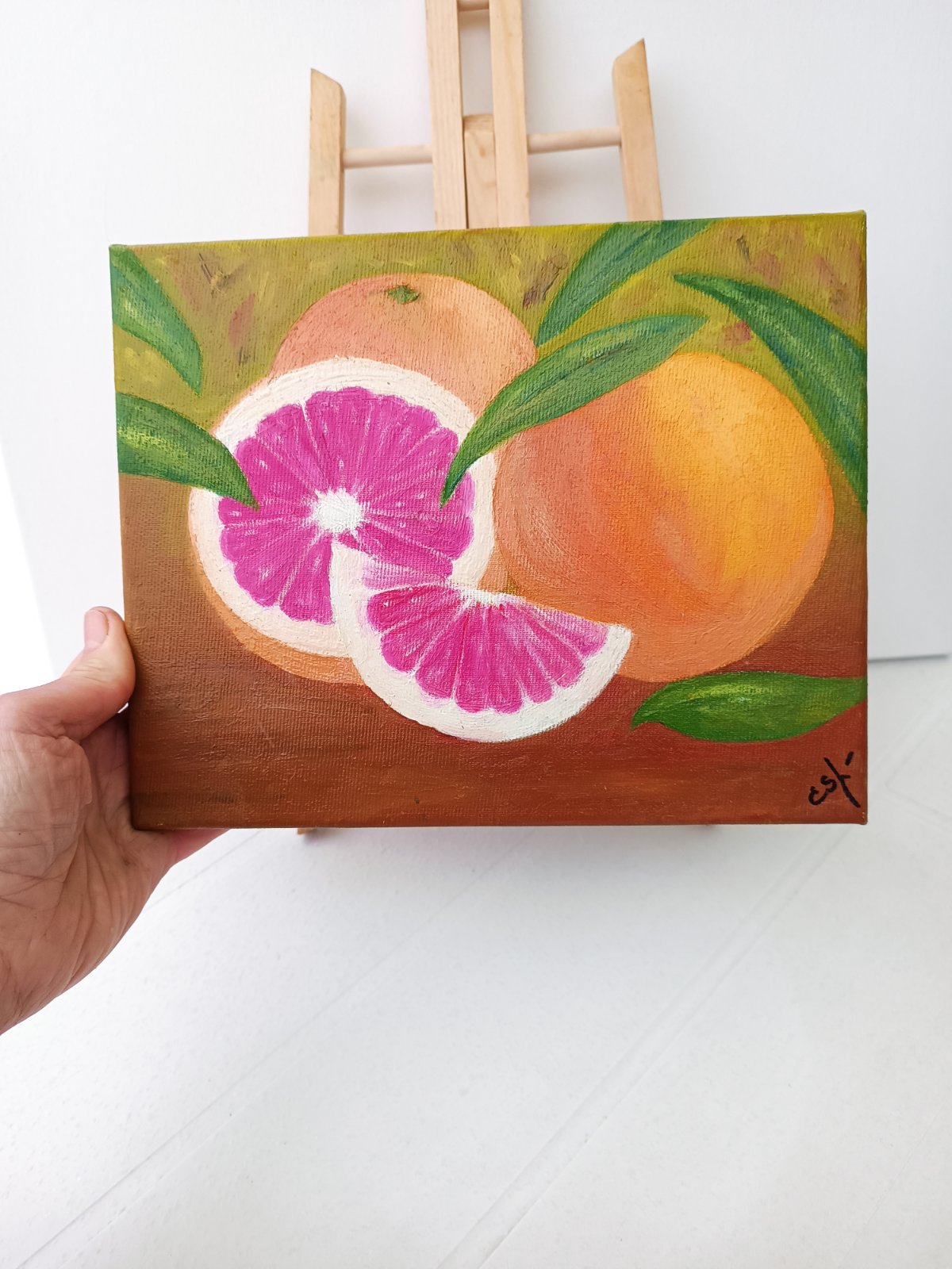 Grapefruits, fruits, citrus The painting is painted with oil paints on canvas stretched on a 20×25 cm stretcher. The painting is sold without a frame. The ends of the painting are painted and are like a continuation of the painting. The color on the monitors may differ slightly from the original color. Year: 2023
