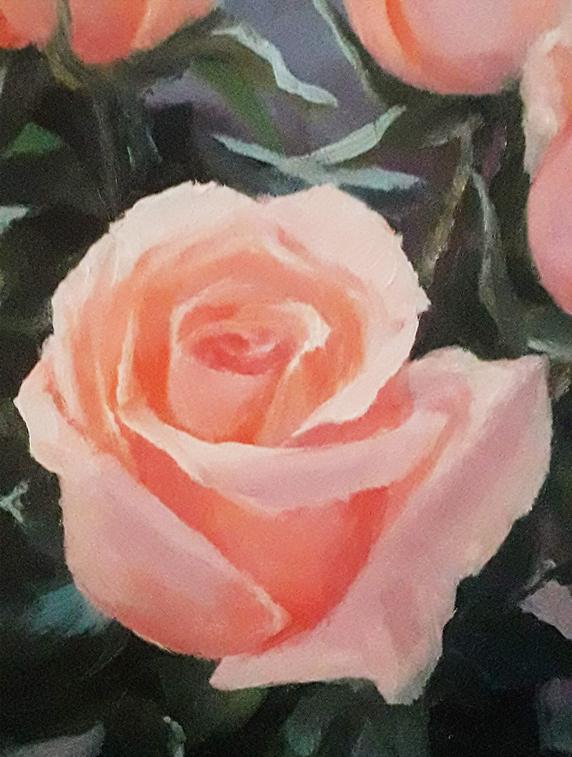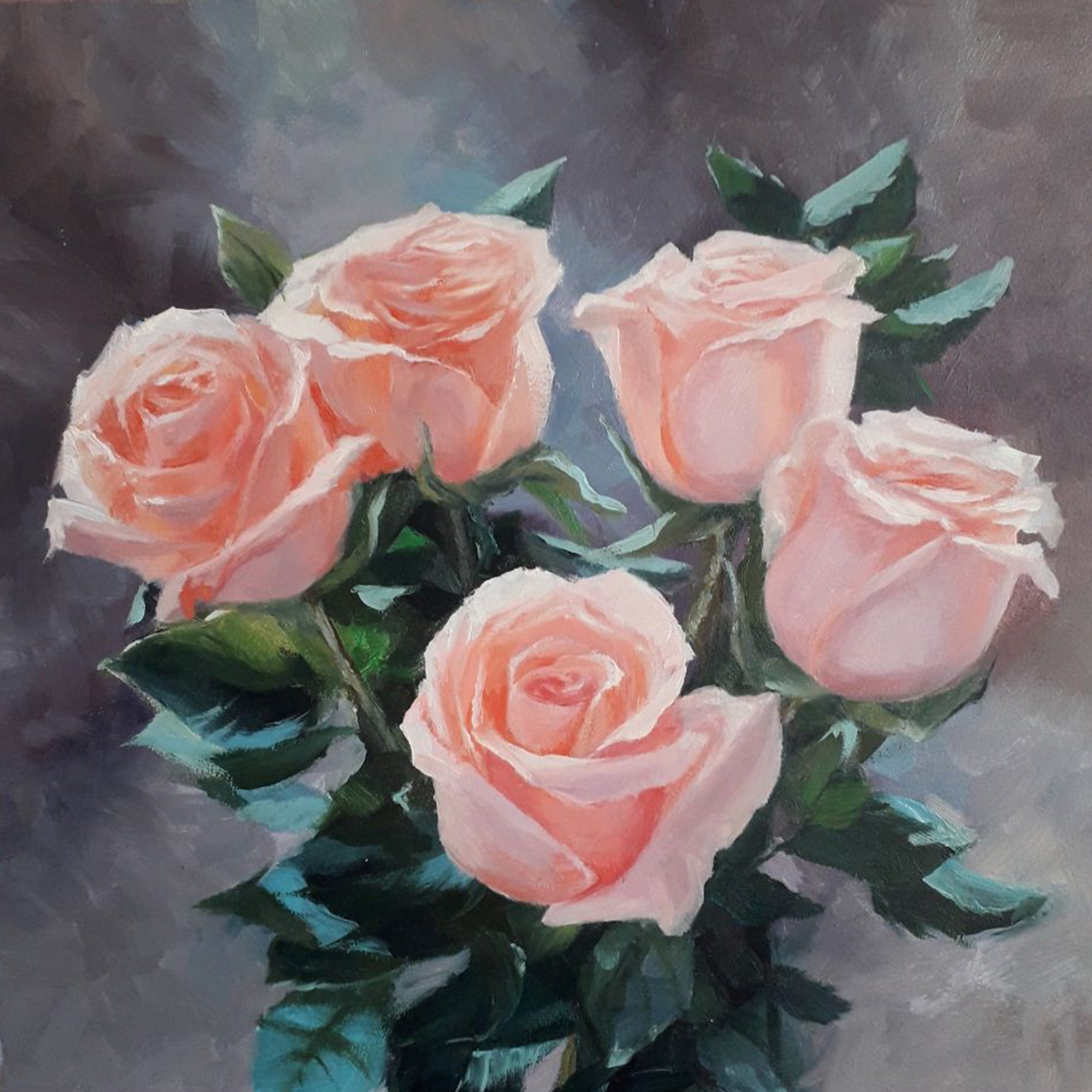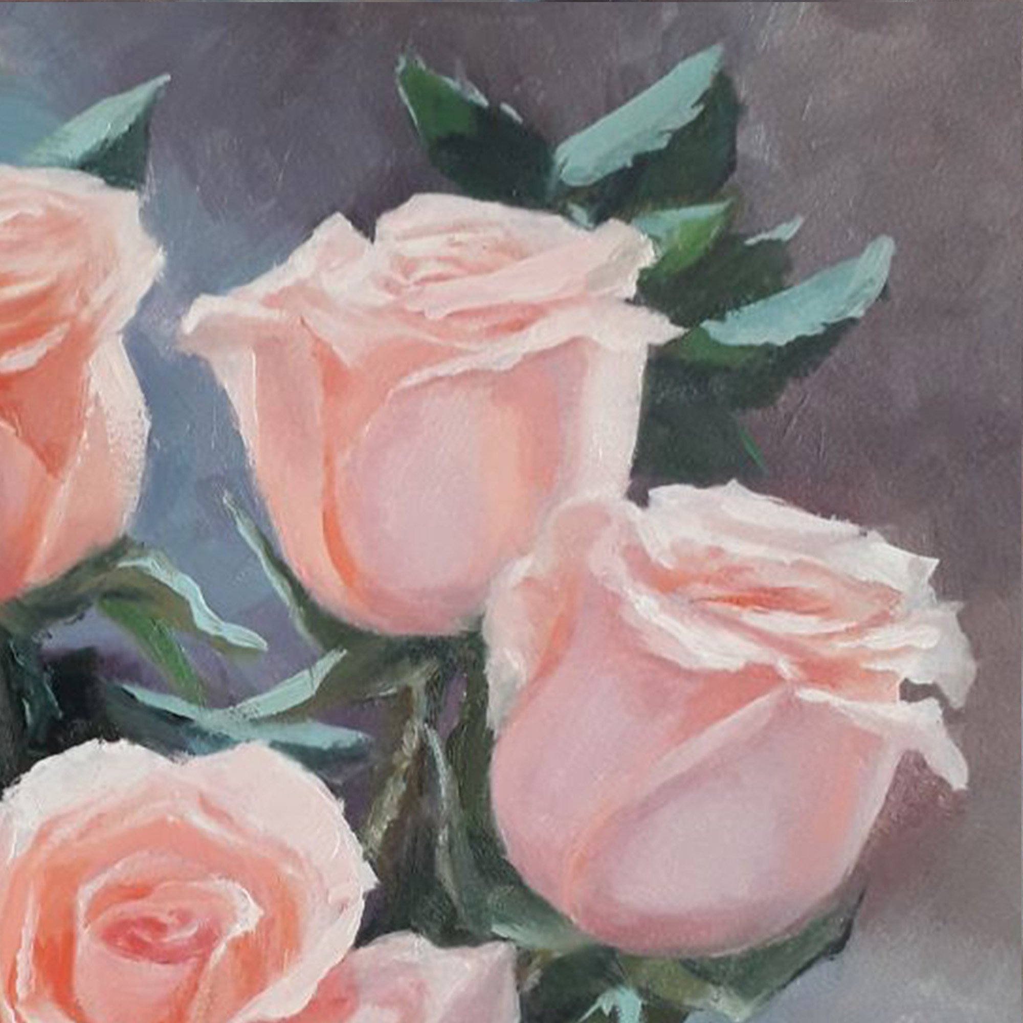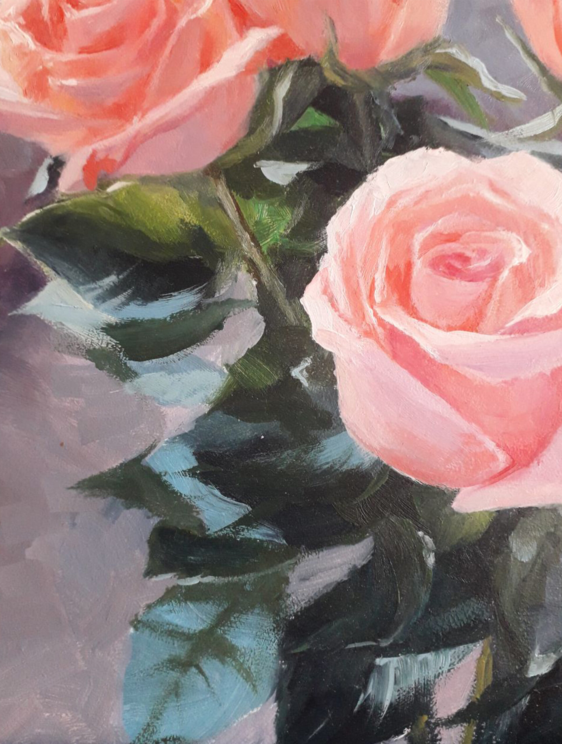 Original oil painting on fiberboard. Pink roses. 25×25 cm