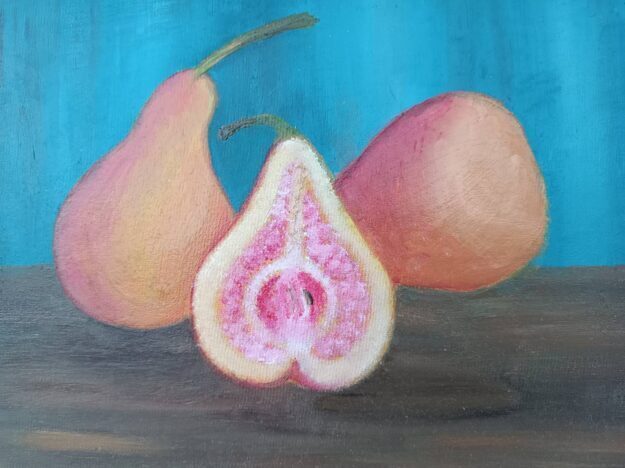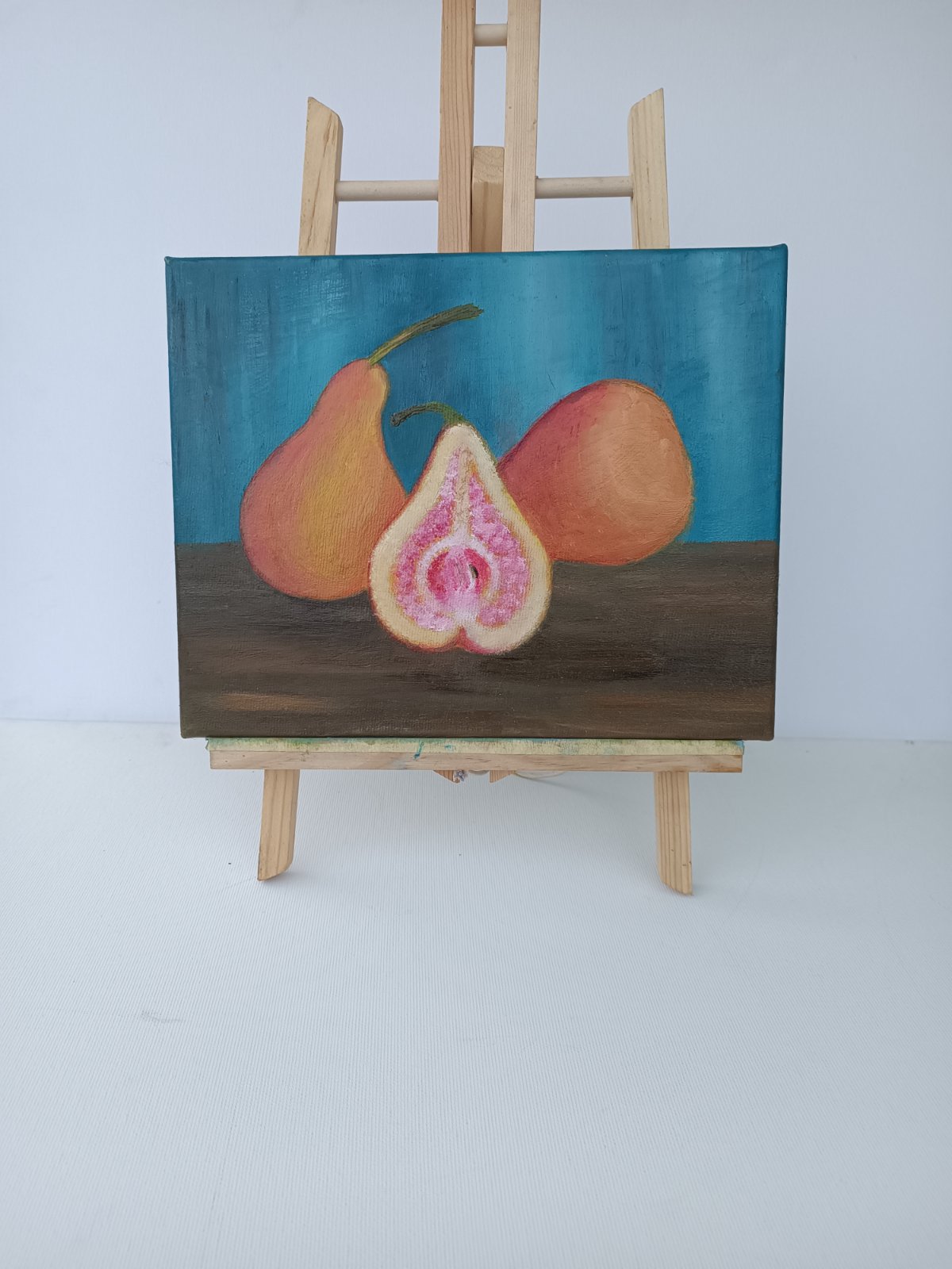 Original Oil Painting “Pears on the Table” on Canvas 20×25×1.5cm/7.6×9.6×0.7in