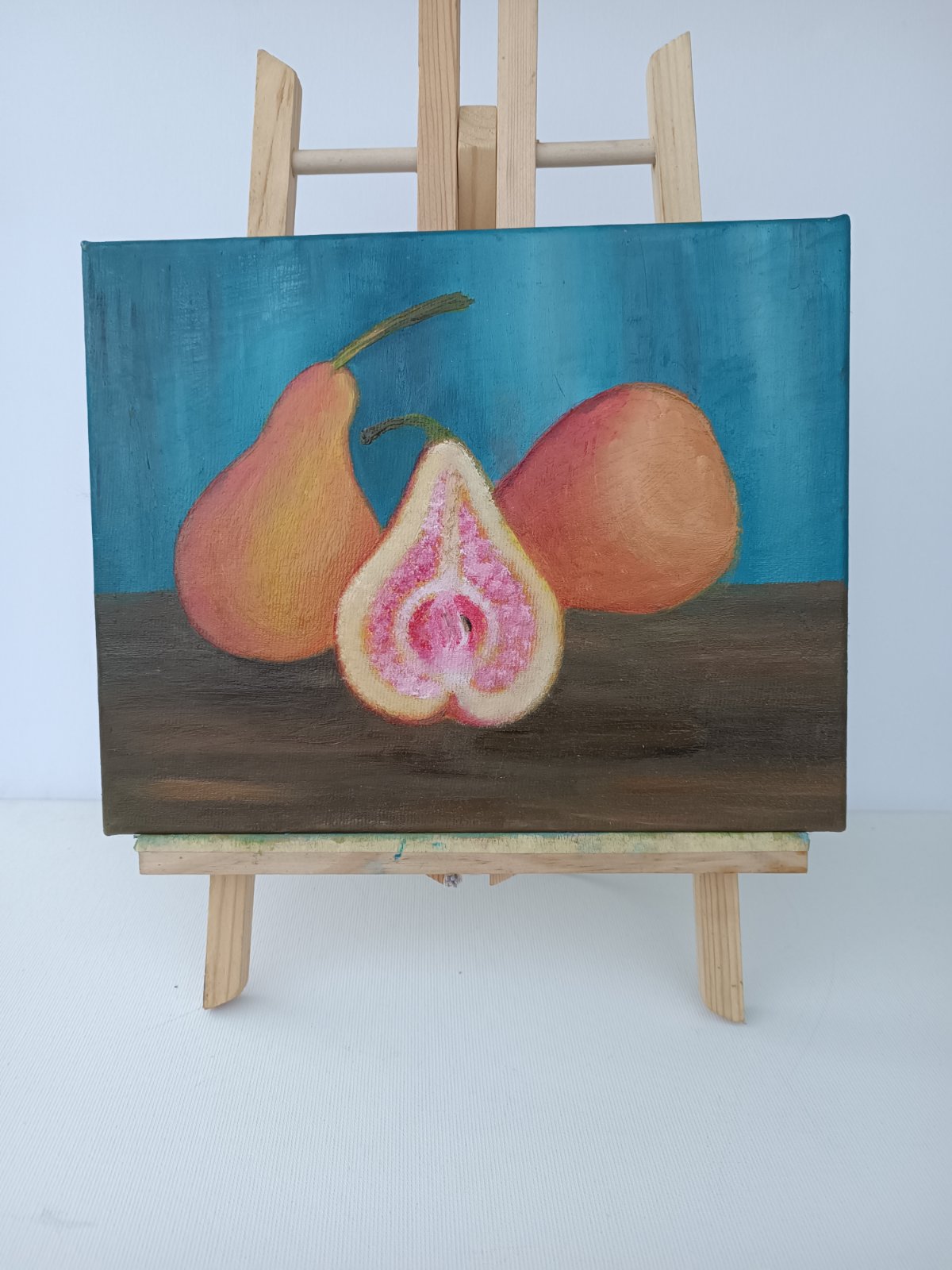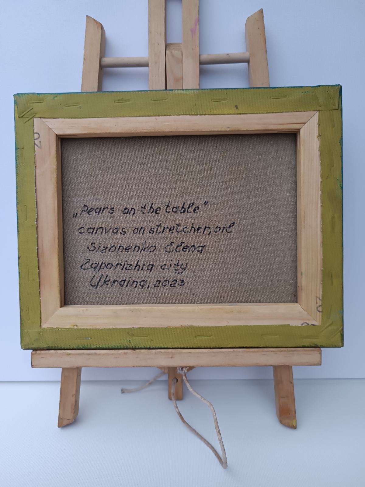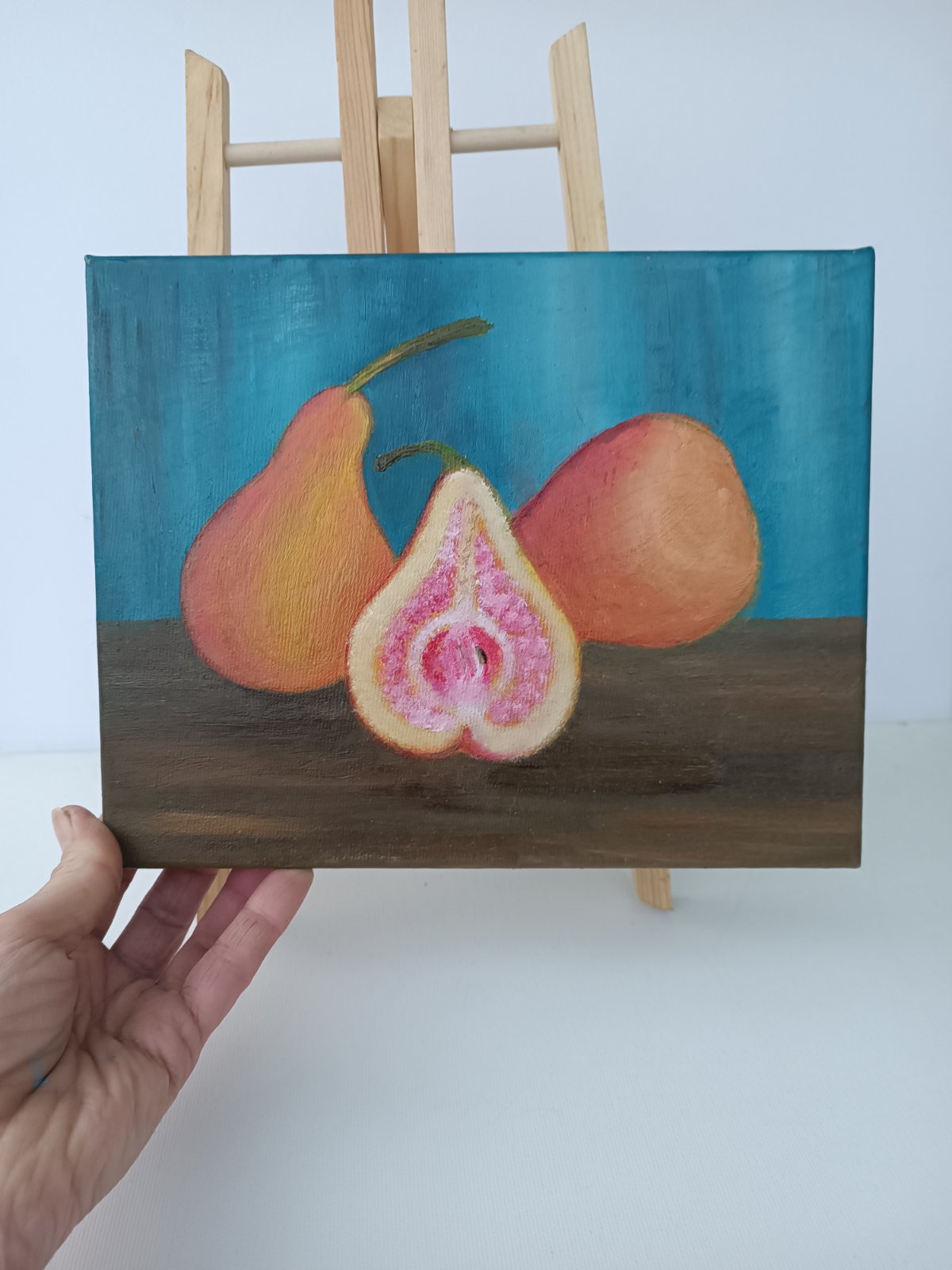 Original painting “Pears on the Table” oil on canvas 7.6 x 9.6 x 0.7 inches