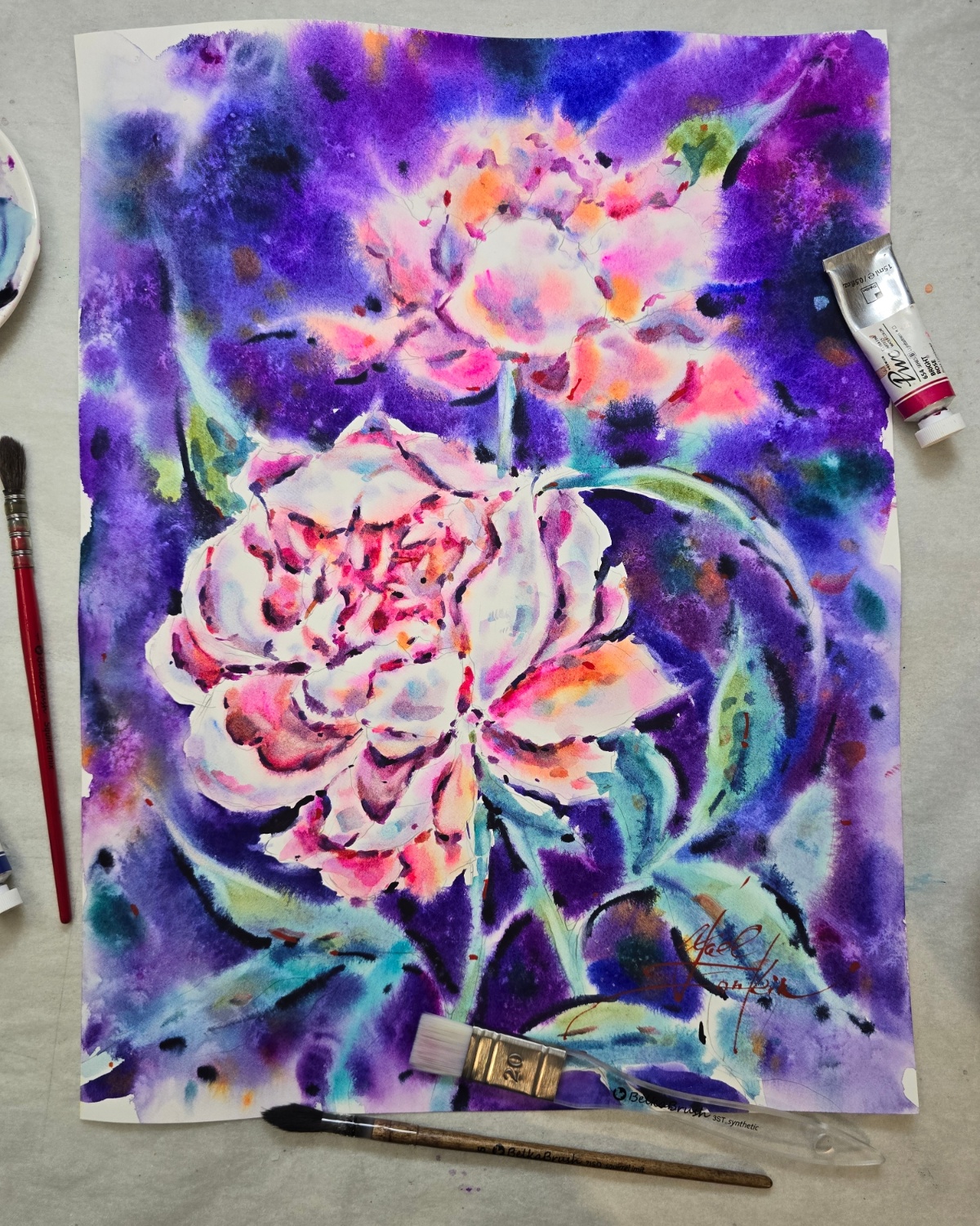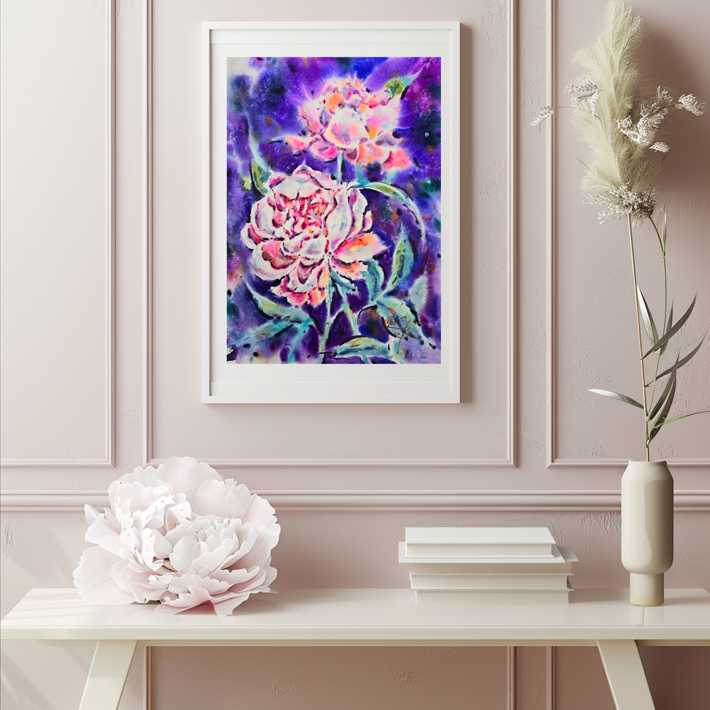 🌸“Pink Couple” is an original watercolor painting filled with tenderness and vibrant colors. The artwork captures blooming peonies in radiant shades of pink, purple, and green, creating a sense of elegance, freshness, and harmony. Perfect for adding a touch of floral beauty to any home or office space.