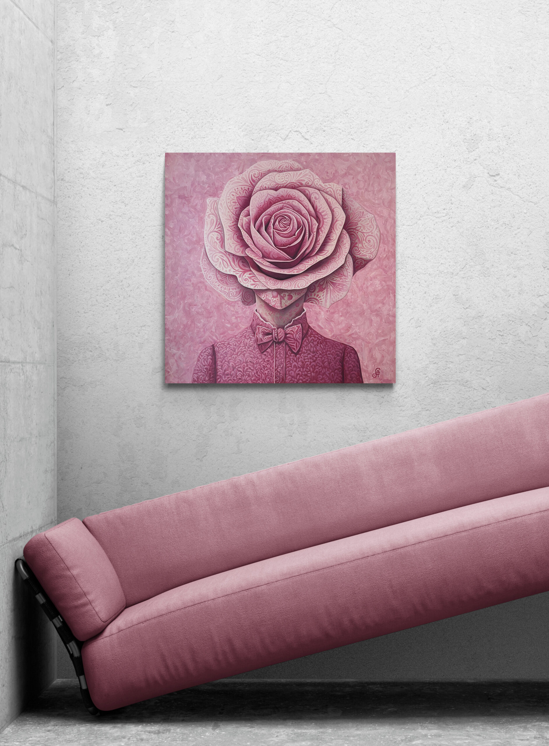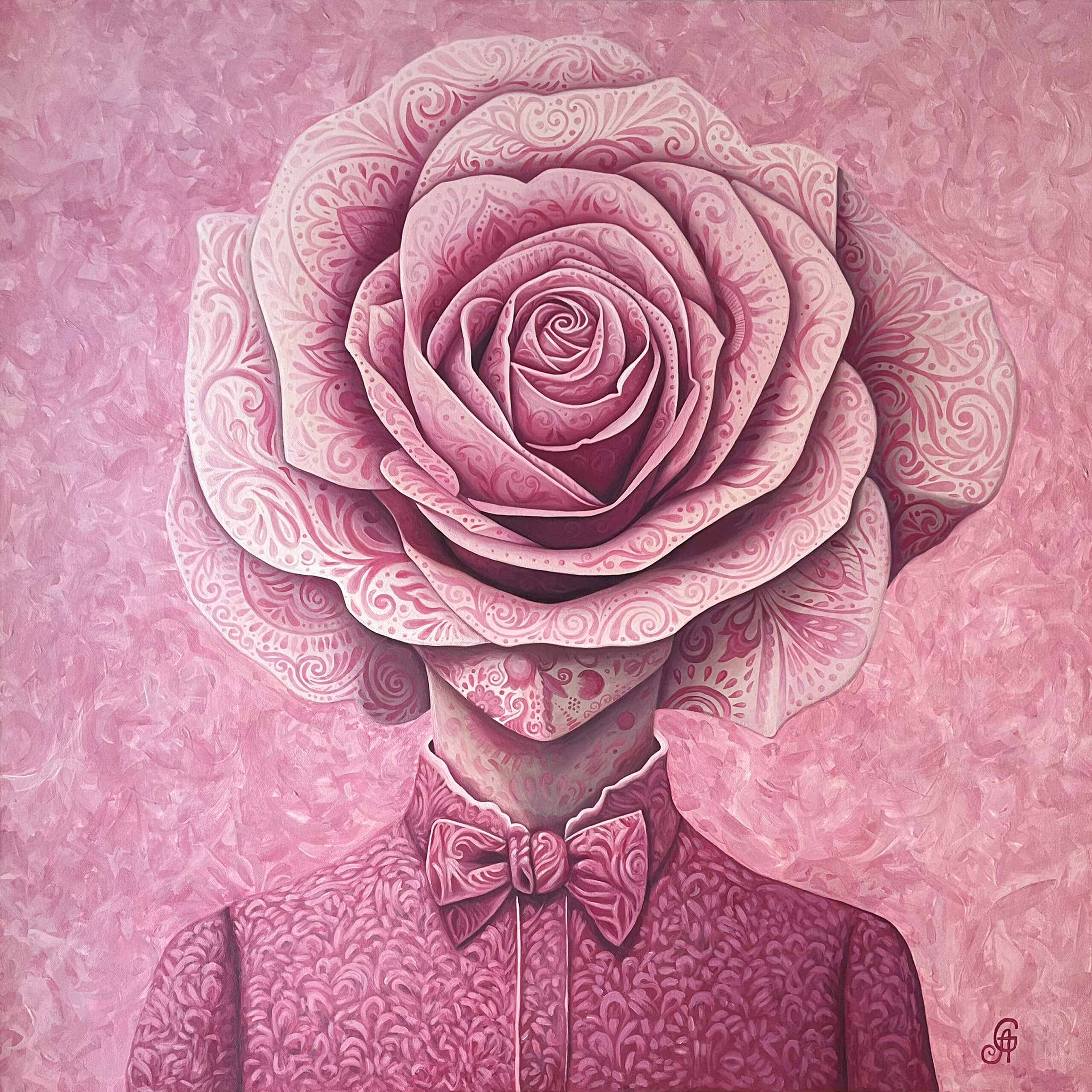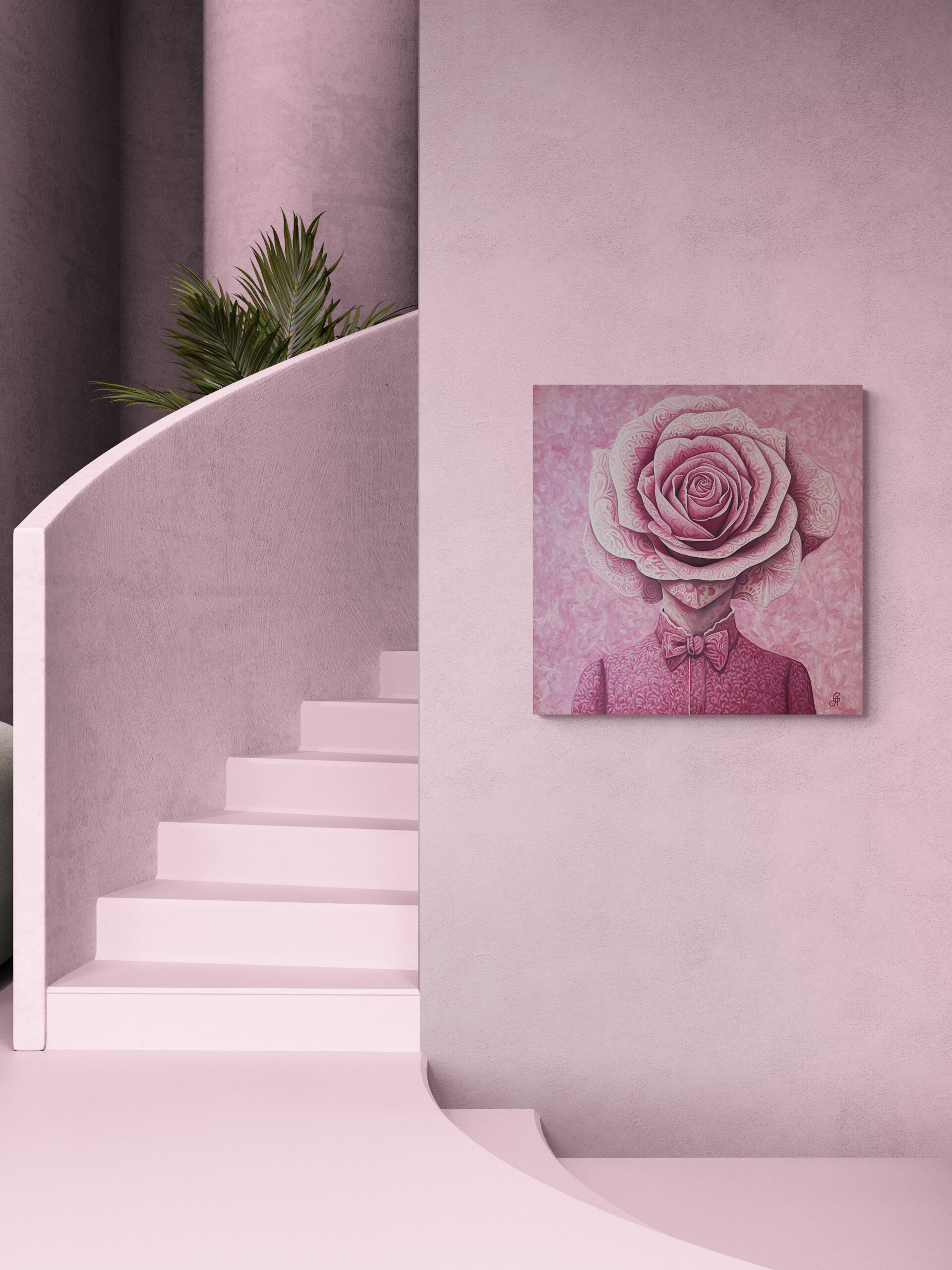“Pink Dreams” is a reflection on the nature of fantasy and illusion. The rose replacing the head symbolizes the alluring visions that captivate us with beauty yet remain beyond reach. The bow around the neck hints at an inner readiness to follow those dreams, even if it means letting go of a familiar identity. Sometimes, to find our true self, we must lose our face and allow the dream to guide us. This piece reveals how pink dreams can be inspiration, a trap, and a refuge—all at once.