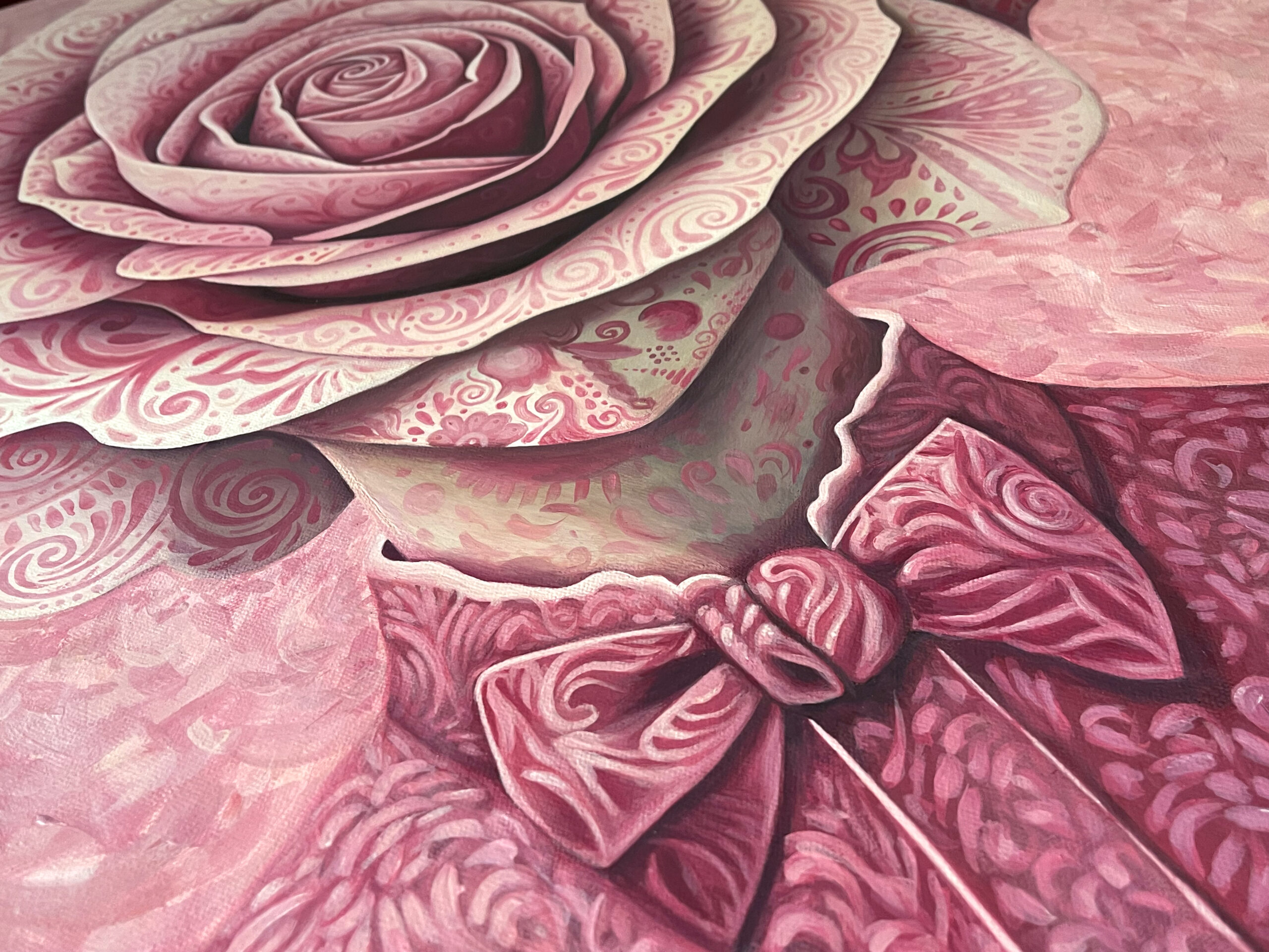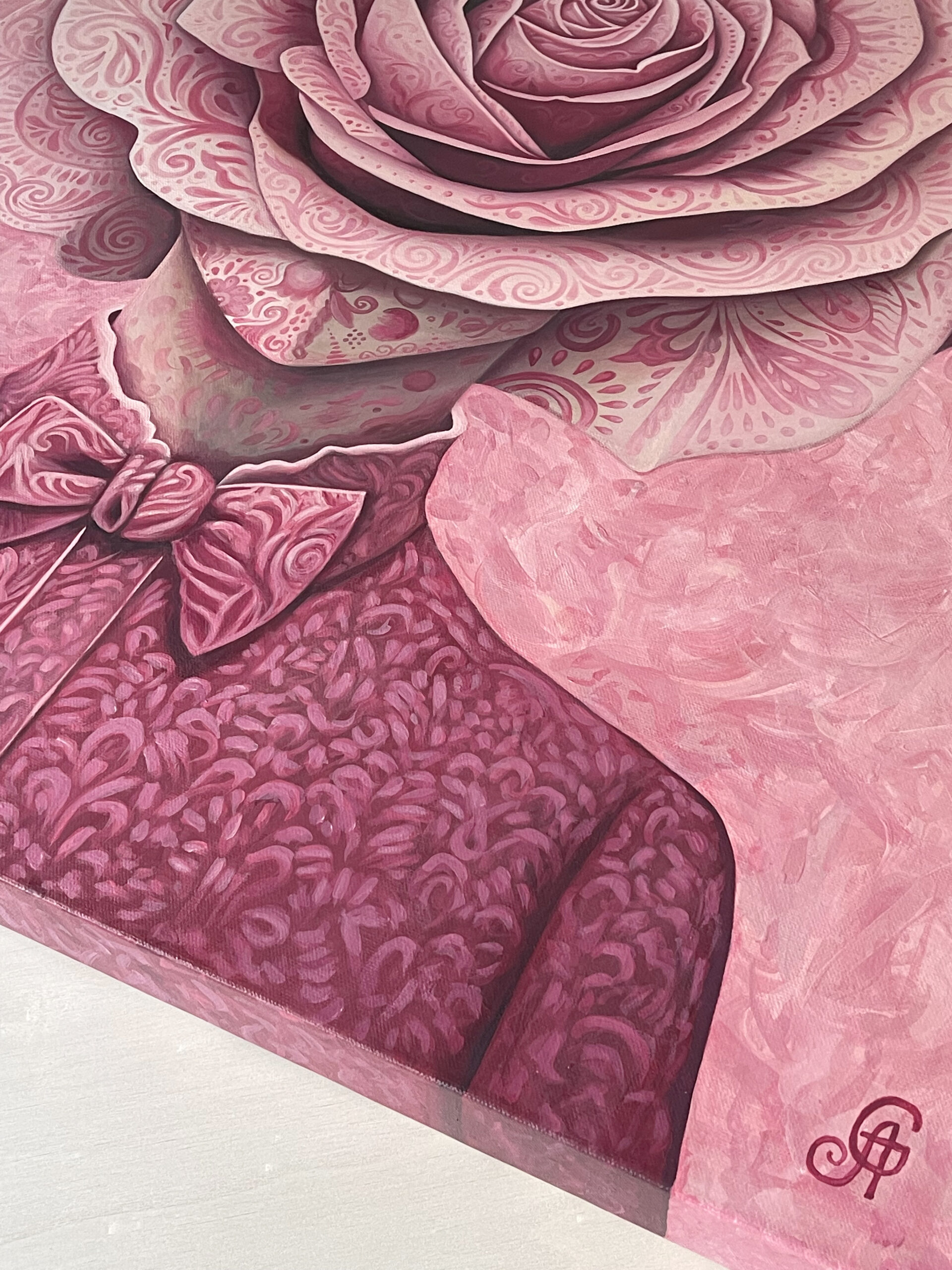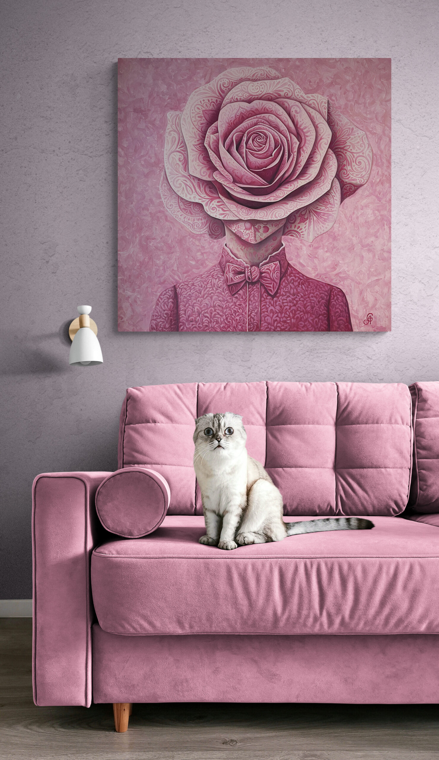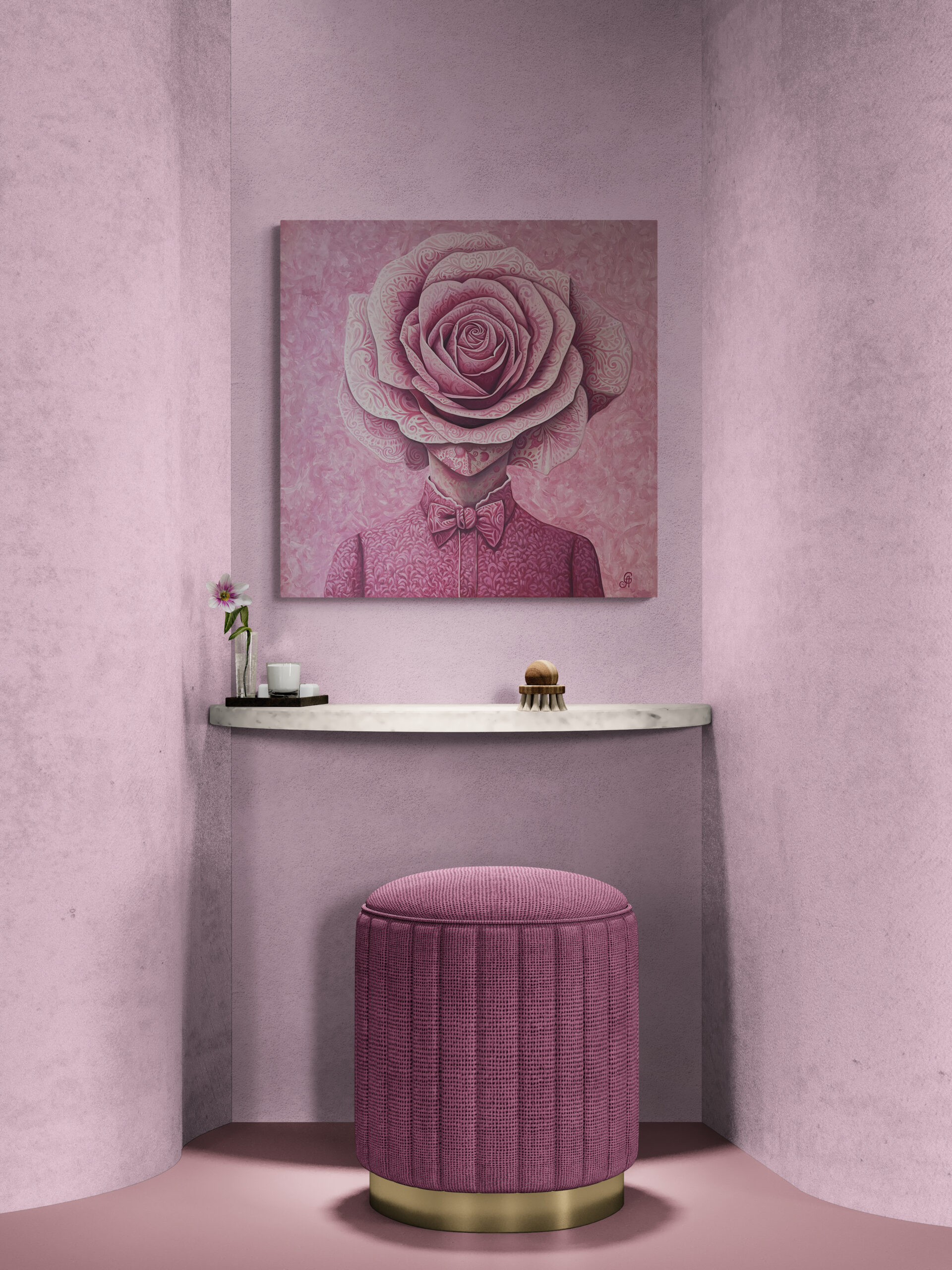 “Pink Dreams” is a reflection on the nature of fantasy and illusion. The rose replacing the head symbolizes the alluring visions that captivate us with beauty yet remain beyond reach. The bow around the neck hints at an inner readiness to follow those dreams, even if it means letting go of a familiar identity. Sometimes, to find our true self, we must lose our face and allow the dream to guide us. This piece reveals how pink dreams can be inspiration, a trap, and a refuge—all at once.