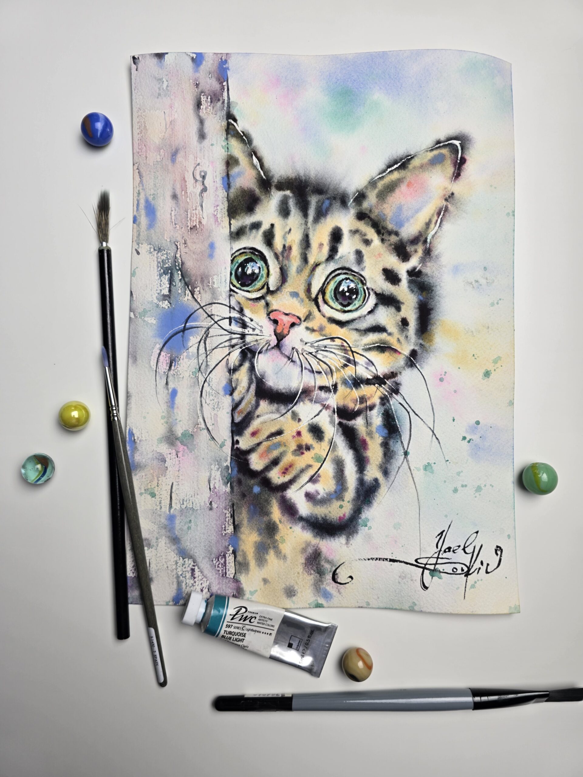 🖌️This one-of-a-kind watercolor artwork of cute kitten will not only decorate your space but also add a sense of playfulness and inspiration.