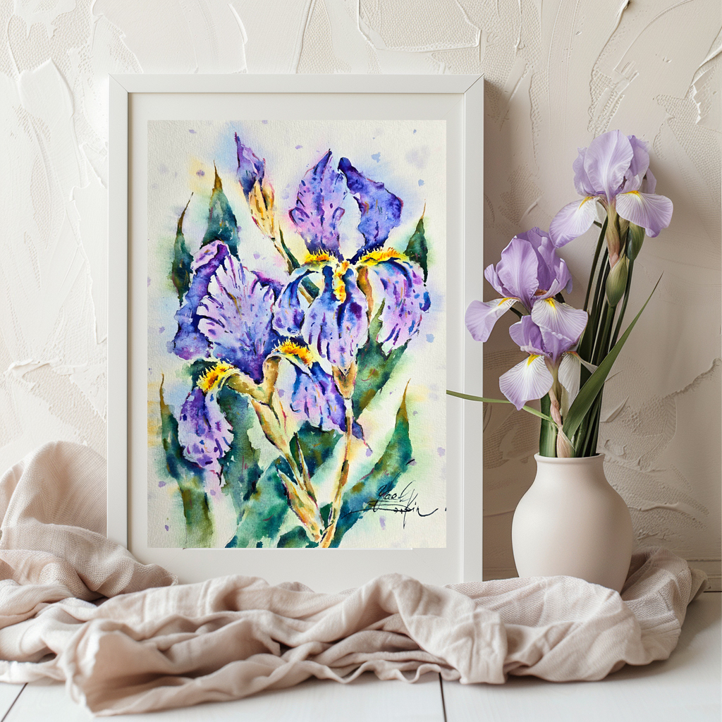 🌸Perfect as floral wall art, botanical décor, or a gift for flower lovers, this iris watercolor painting will add charm and harmony to your home or office🥰🖌️🎨