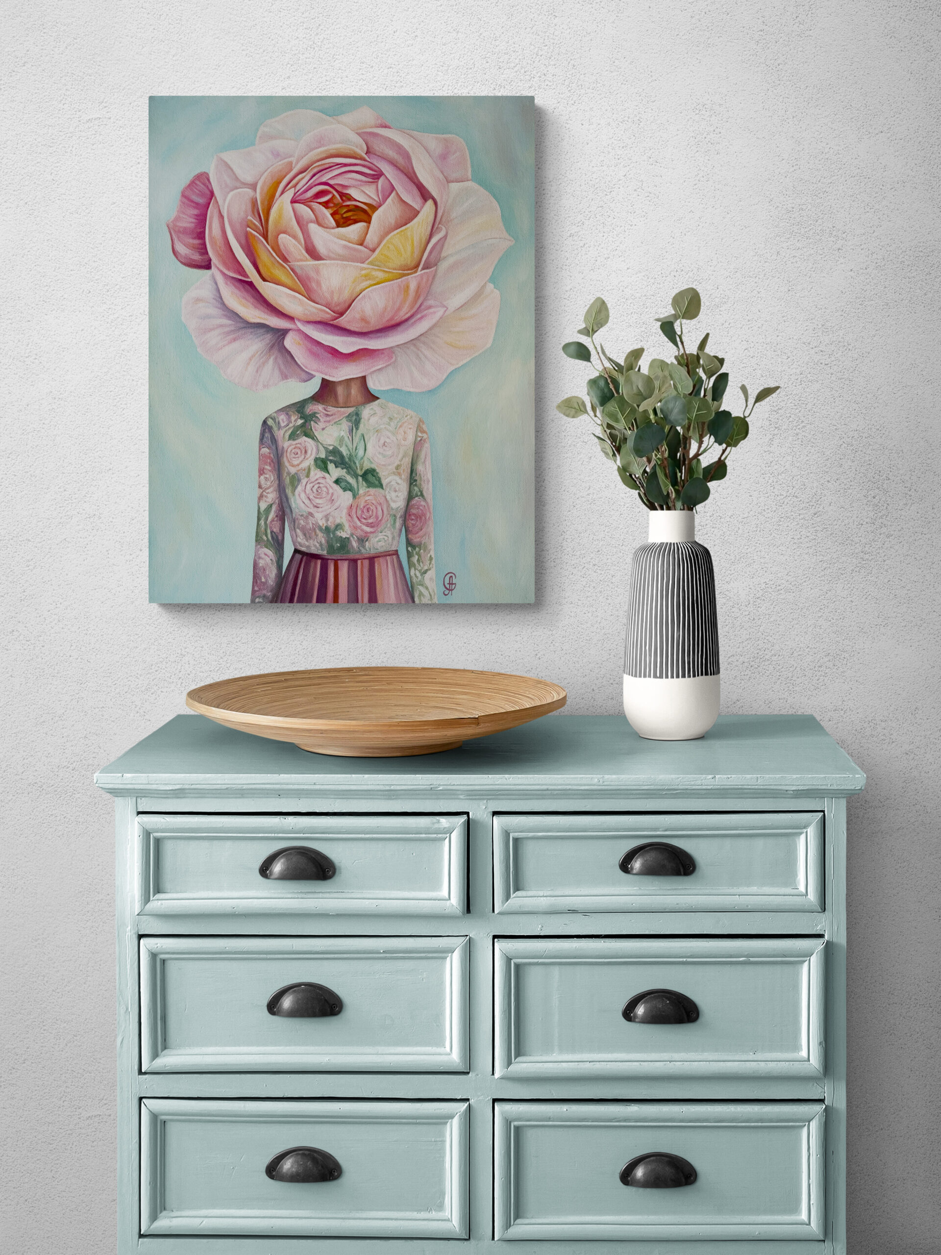 A rose face that tells no age, no time. It reflects timeless beauty, inner growth, and the poetic fusion of nature and femininity.
