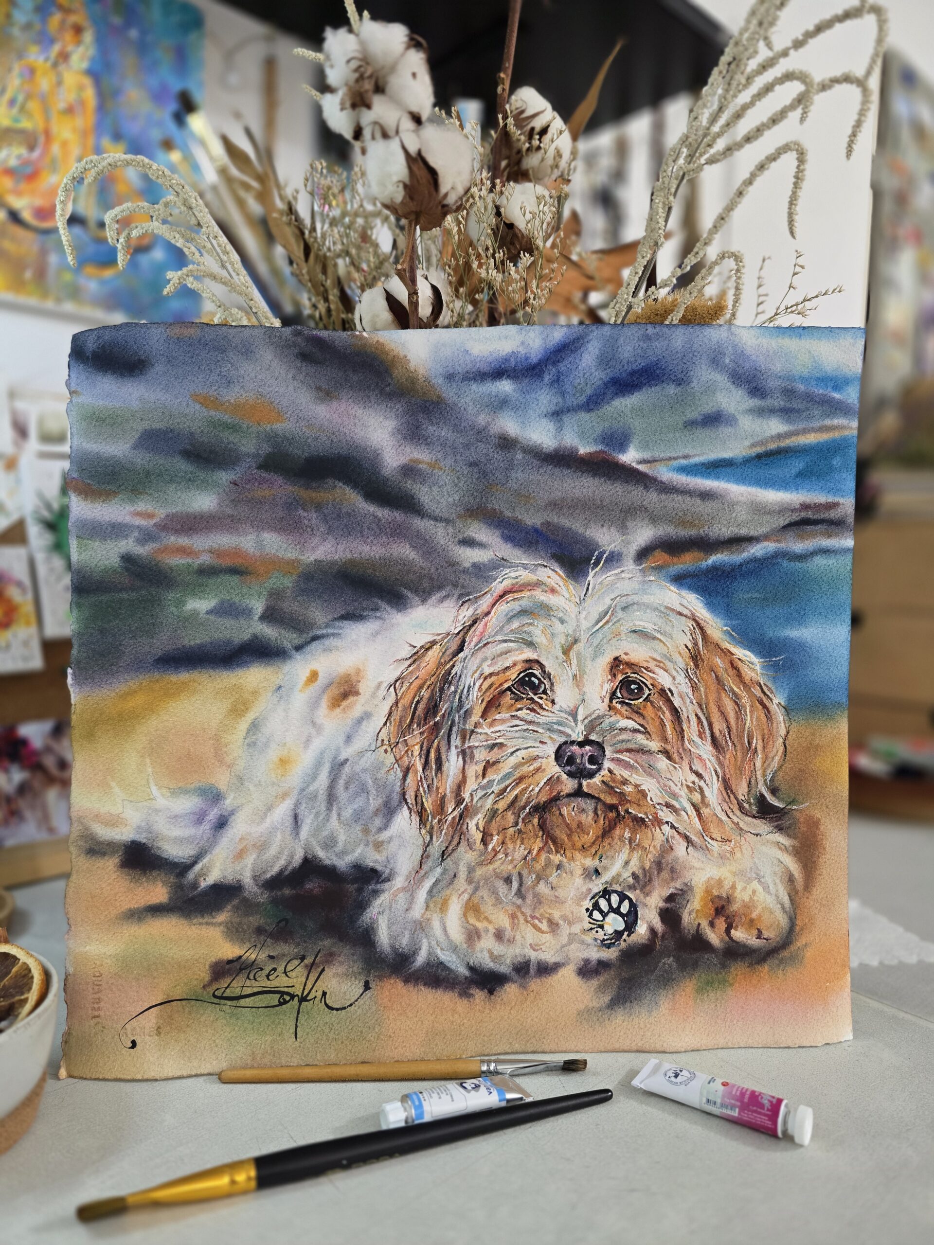 🖌️This one-of-a-kind artwork is created with professional watercolor on high-quality paper, 2025. Ideal for dog lovers, pet portrait collectors, and as wall décor for home or office.