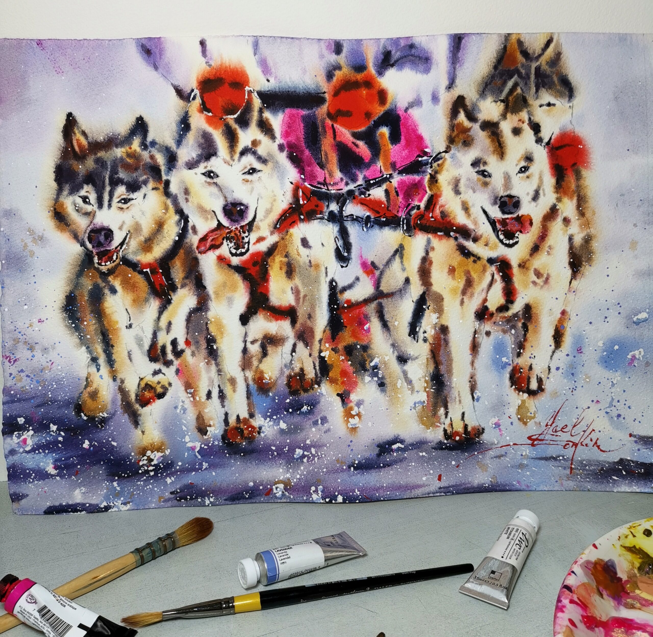 🖌️Painted with professional artist-grade watercolors on high-quality paper, this piece reflects the spirit of adventure and the bond between humans and dogs in the heart of Alaska. Perfect for dog lovers, adventurers, and collectors of unique art, it will add a bold and dynamic accent to any interior.