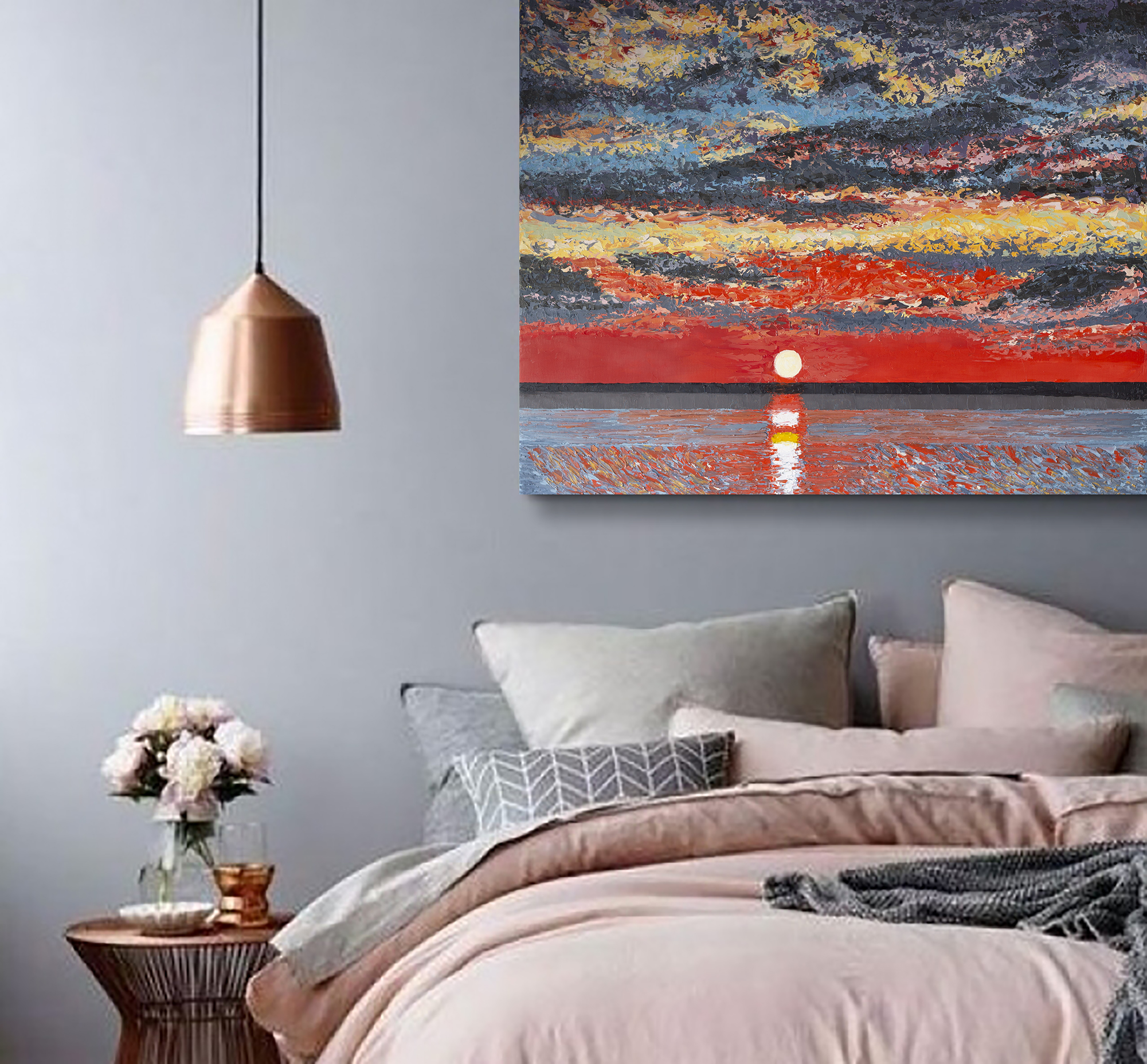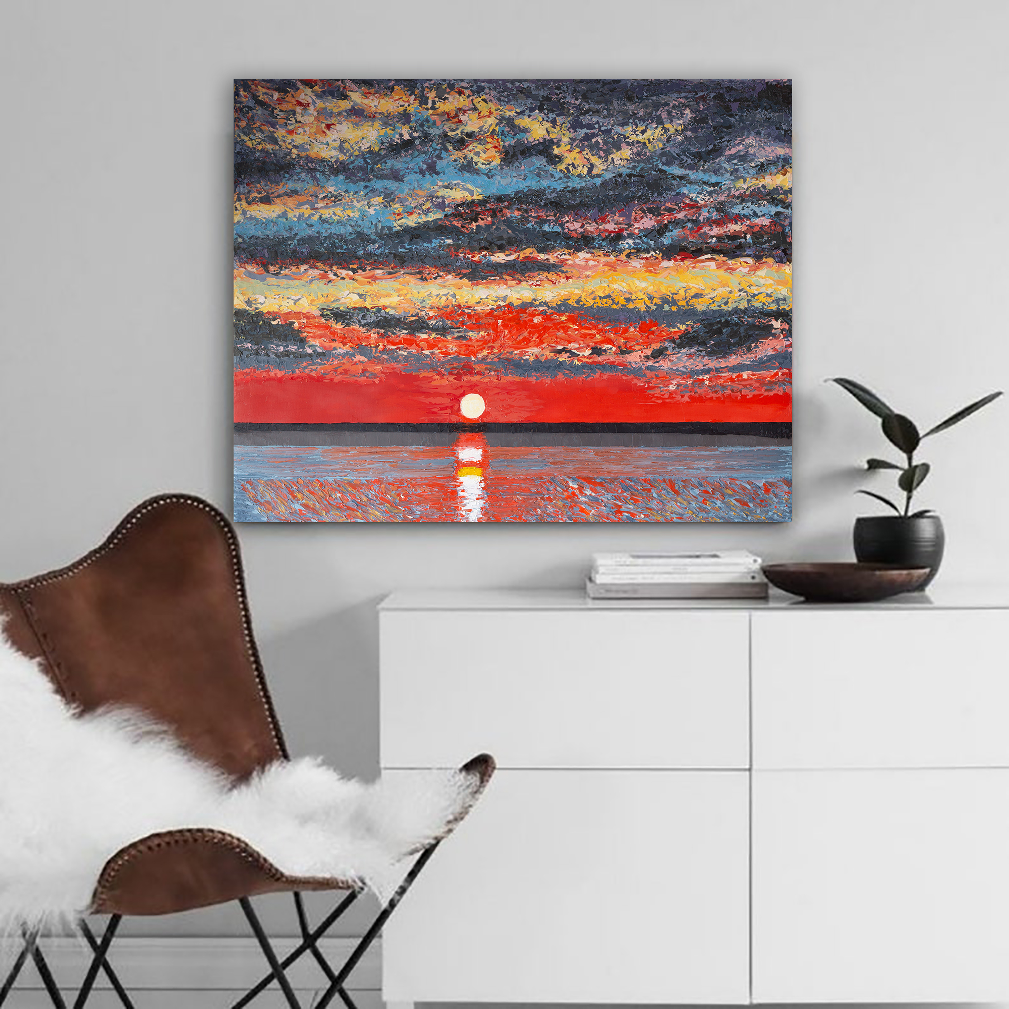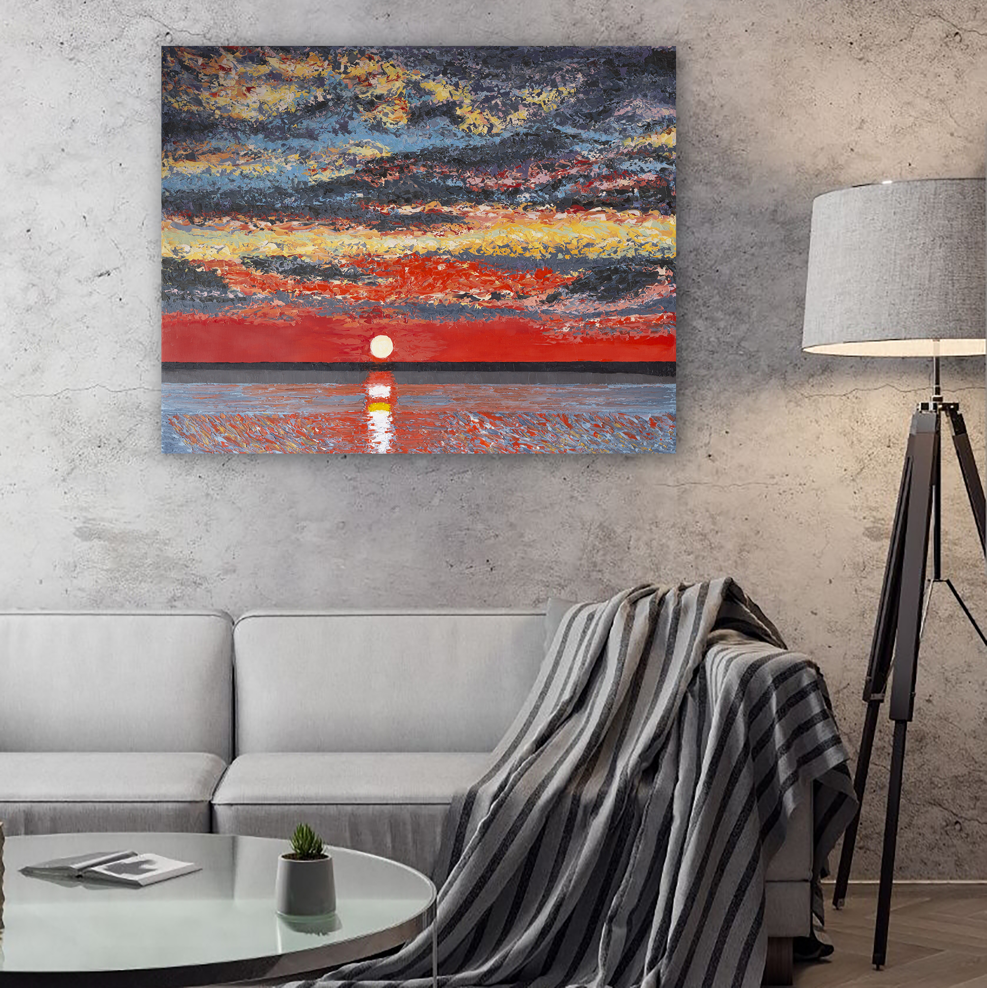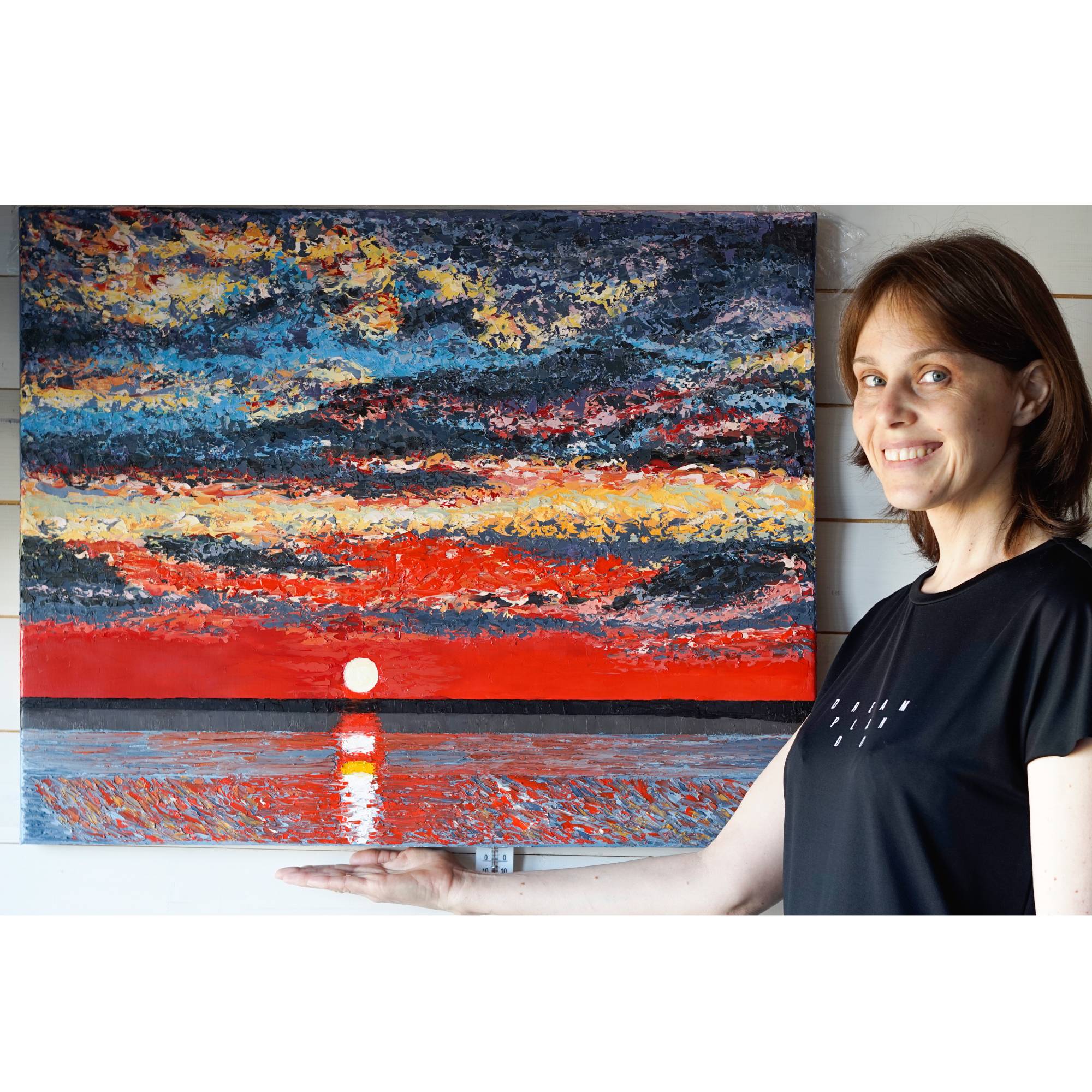 A unique original – perfect for bringing a serene, radiant sunset into your home or office. Add this painting to your collection and let it remind you to stop, take a deep breath and enjoy the beauty of each evening.