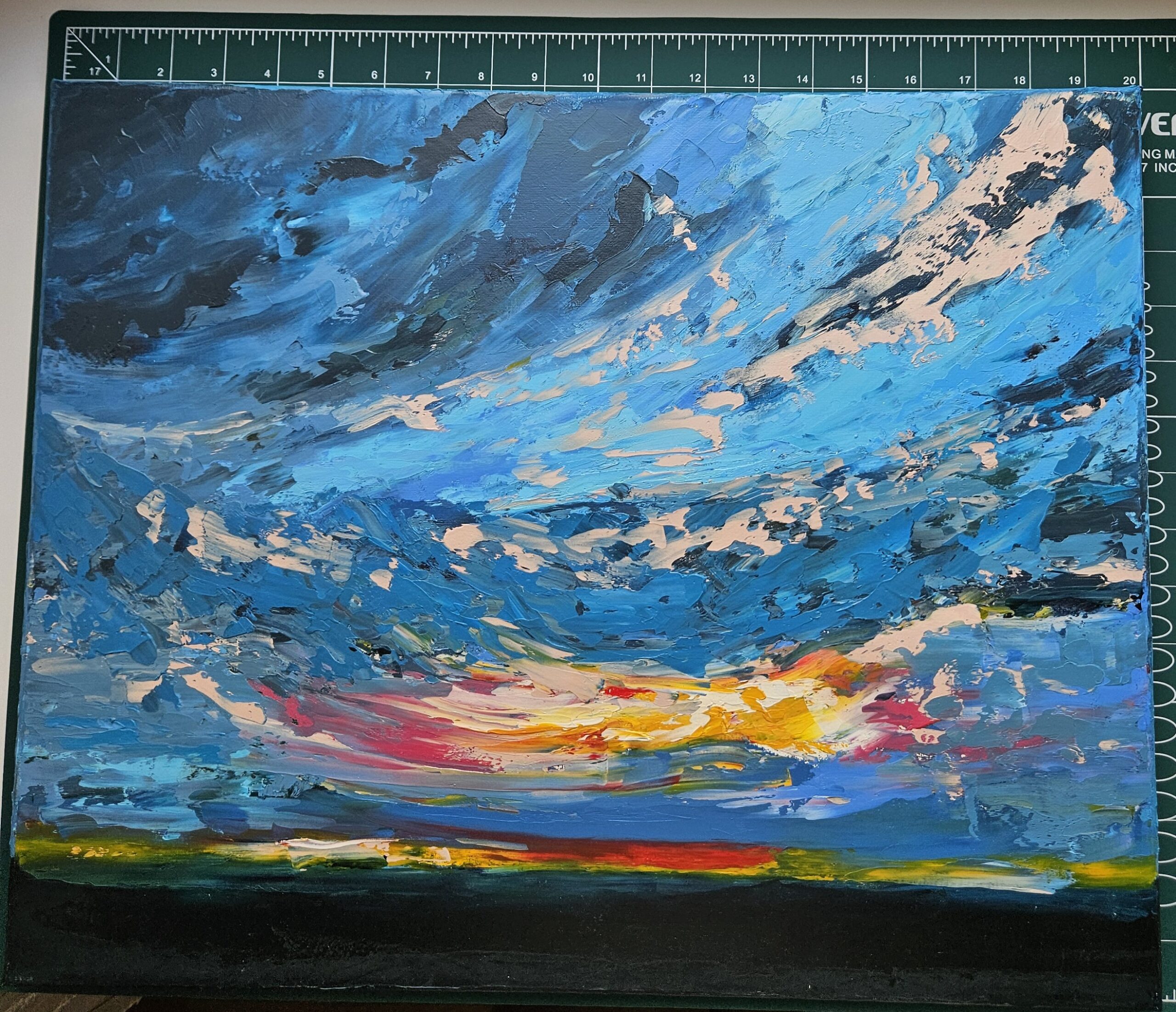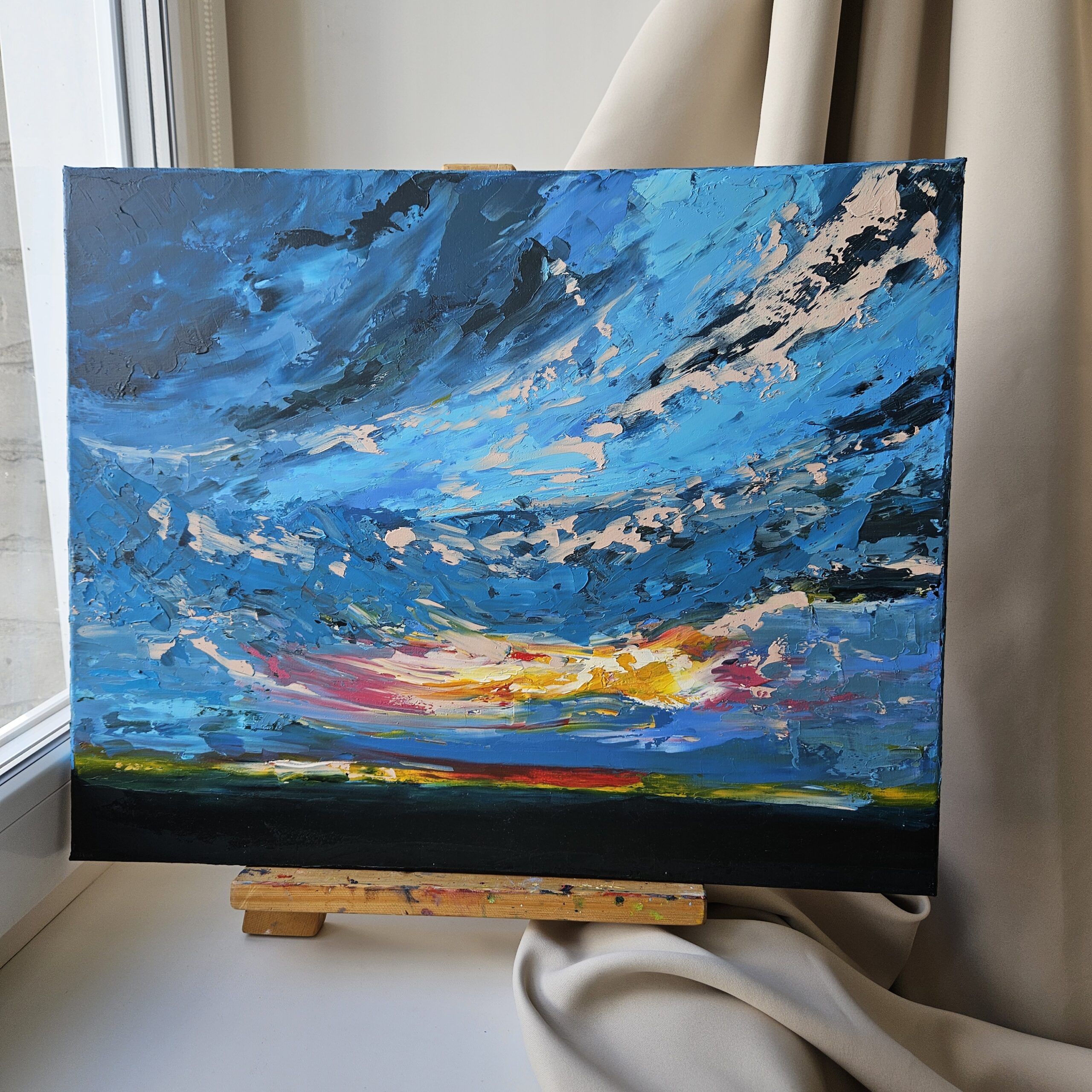 Sunset Painting Seascape Nature Original Art Skyscape Wall Art Nautical Night