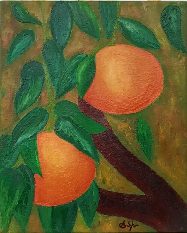 Tangerines Original Oil Painting on Canvas 20×25×1.5cm/7.6×9.6×0.7in