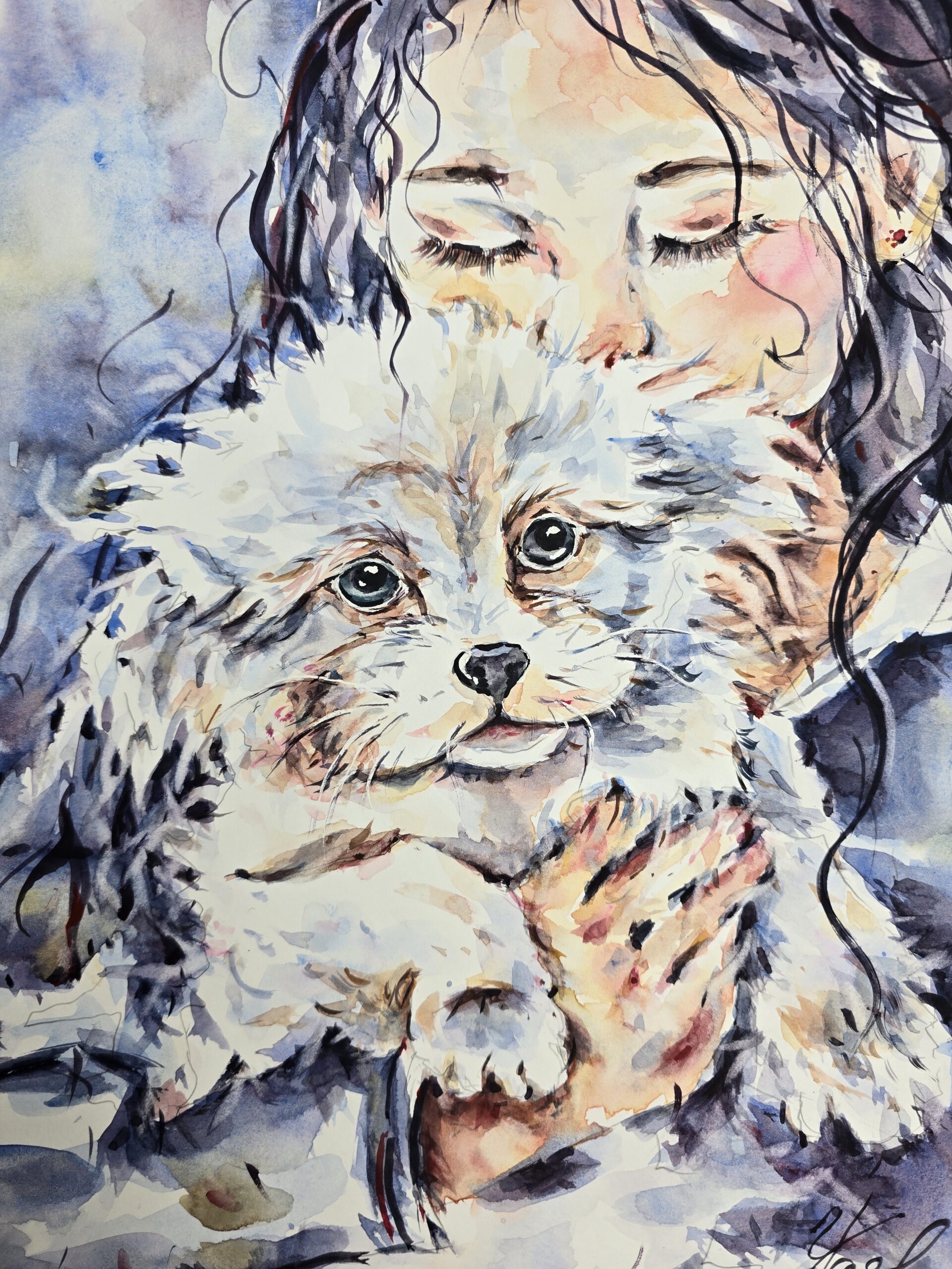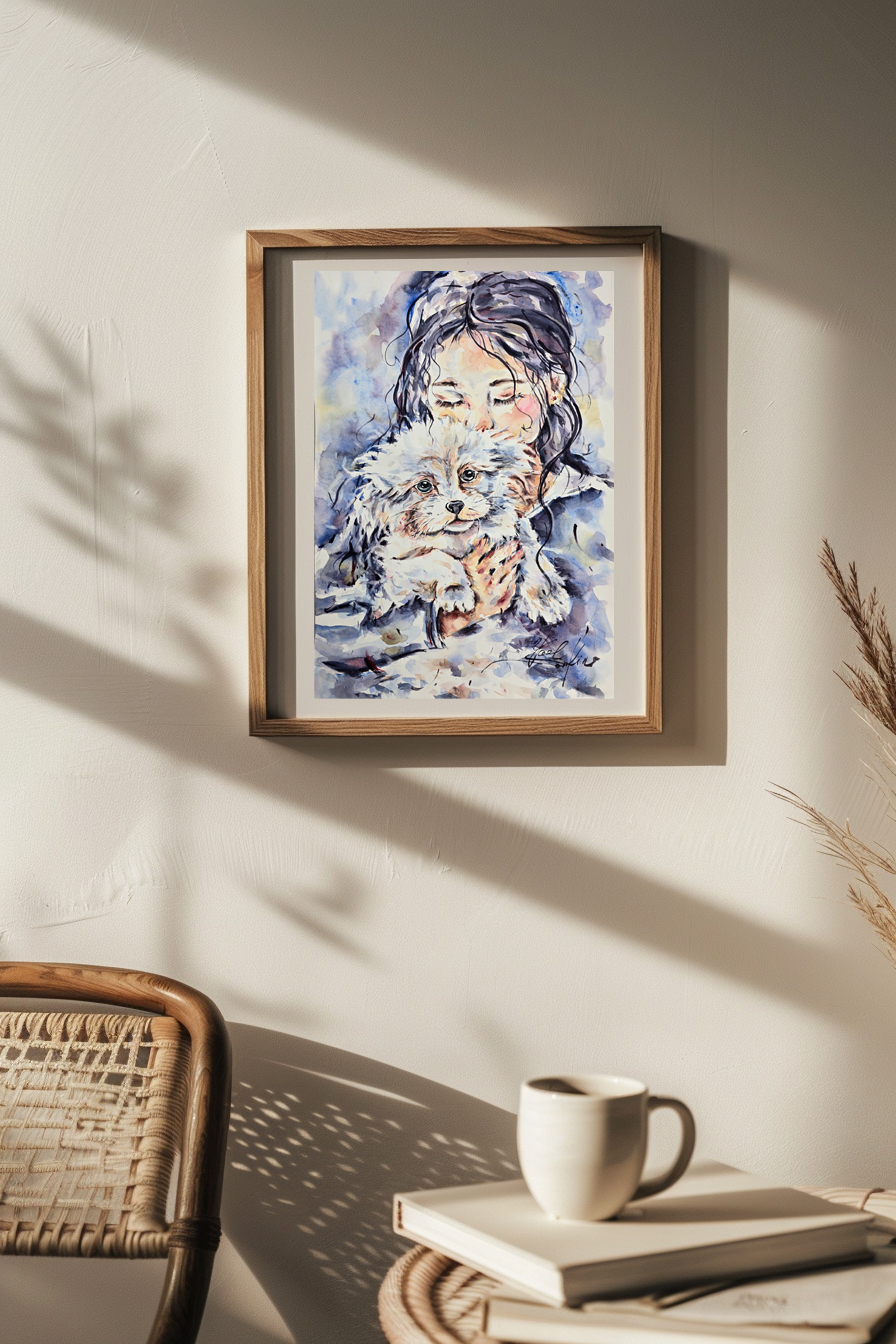 🎨“Tender Companions” is an original watercolor painting that beautifully captures the bond between a girl and her Maltese dog. With soft brushstrokes and expressive details, this artwork highlights love, loyalty, and the joy of friendship. The delicate mix of blue, violet, and earthy tones adds depth and emotion, making it a timeless piece for any interior.