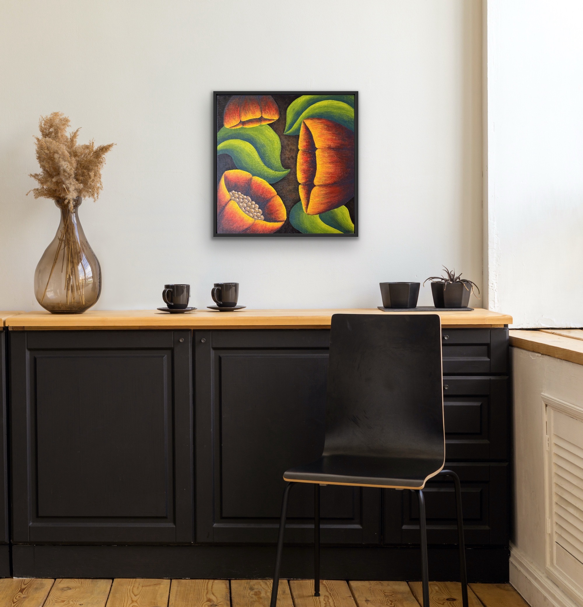 “Tulip Echoes”, acrylic on canvas, 2025, 40 x 40 cm.