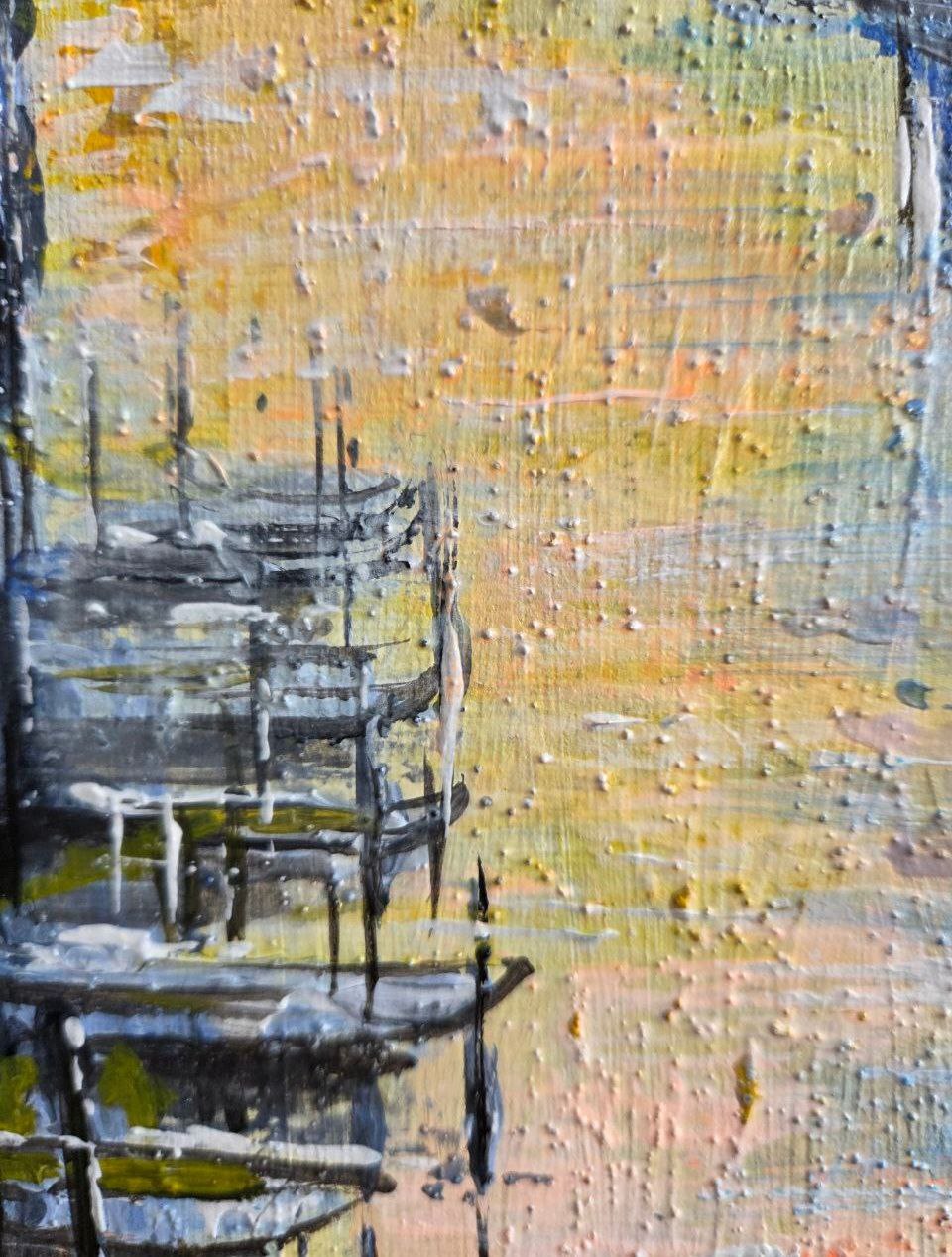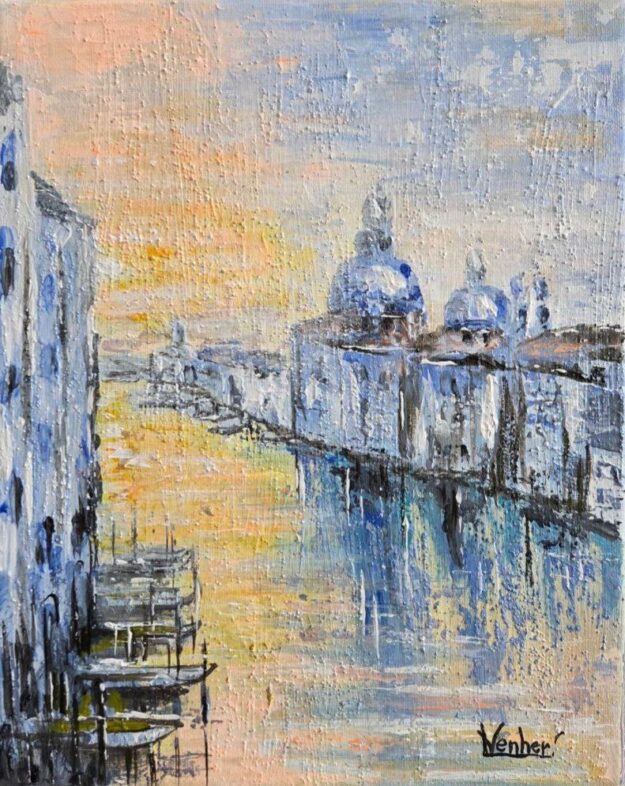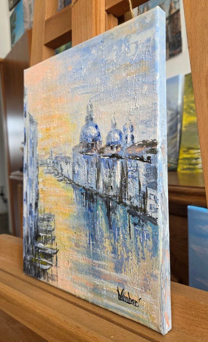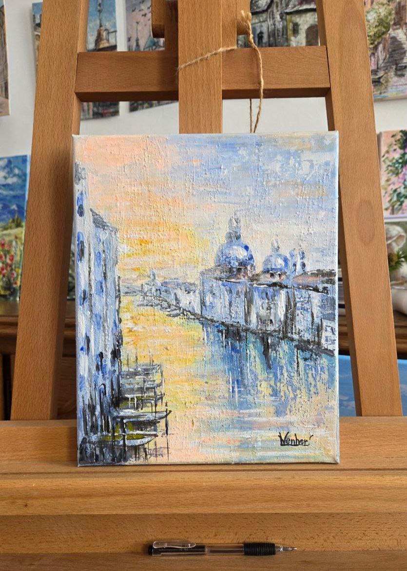 Venice in the Golden Sunset, 24×30 cm, acrylic on canvas, 2025 year