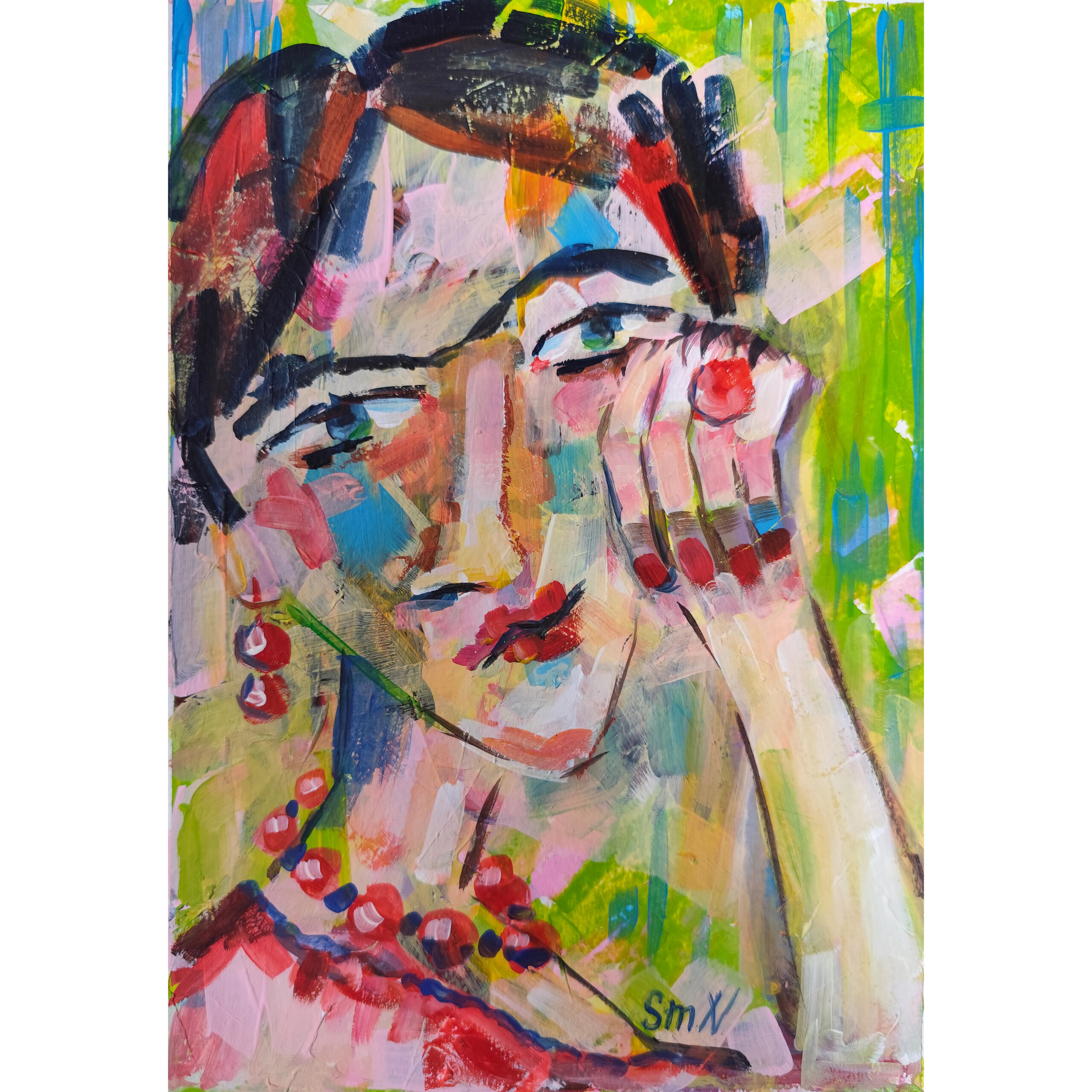 Buy a unique acrylic painting ‘Waiting for love’! A vivid portrait with bold strokes, inspired by the image of Frida. This work is a symbol of hope, passion and expectation of love. Perfect for interior decoration or gift.