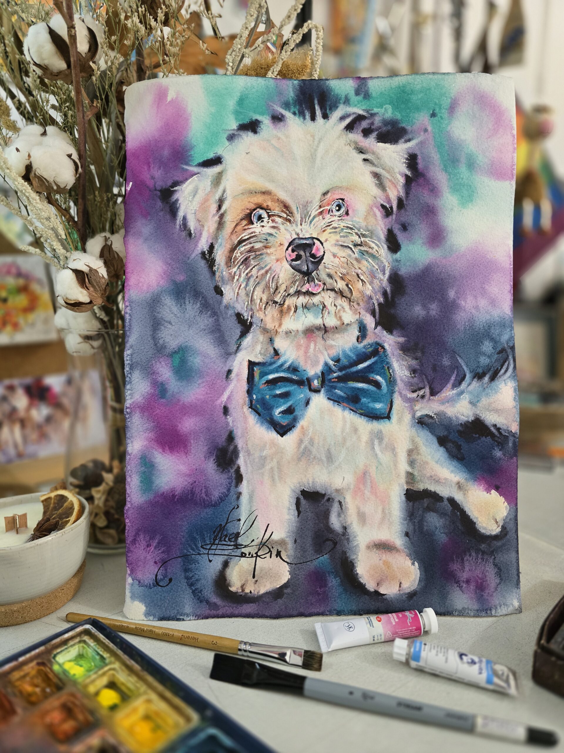 🖌️Painted with professional watercolor paints on high-quality paper, this artwork reflects both the playful spirit of the breed and the warmth of handmade art.