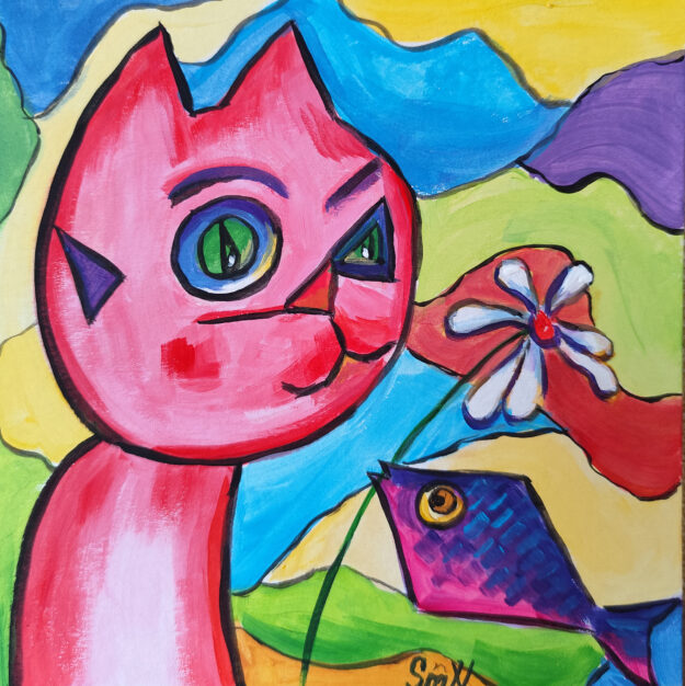 - This artwork belongs to the same series as “Pink Cat with Coffee”, listed separately.