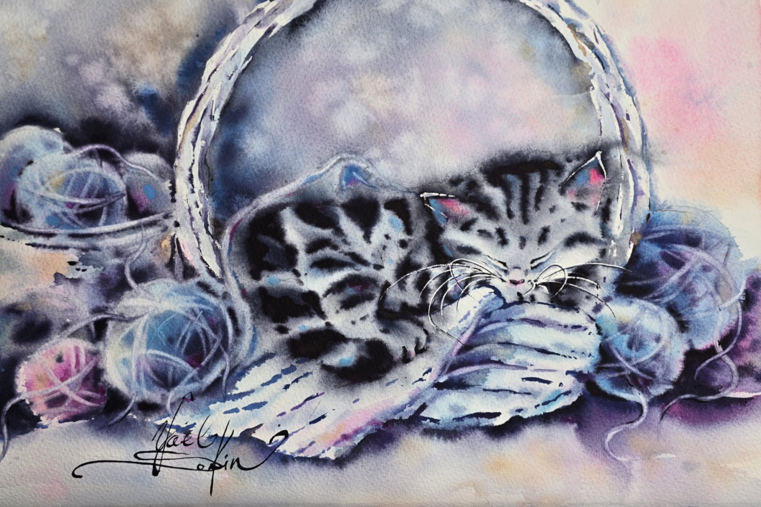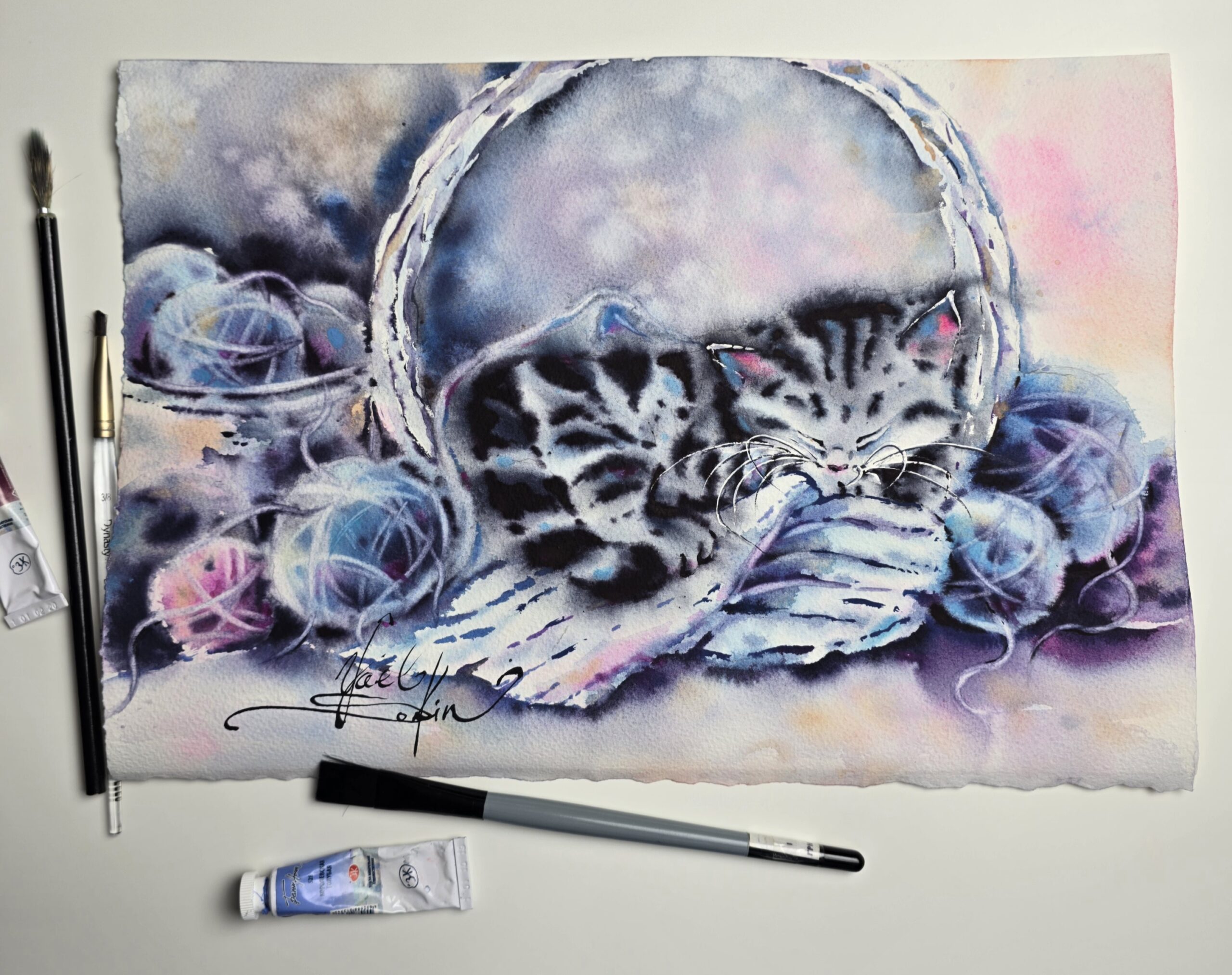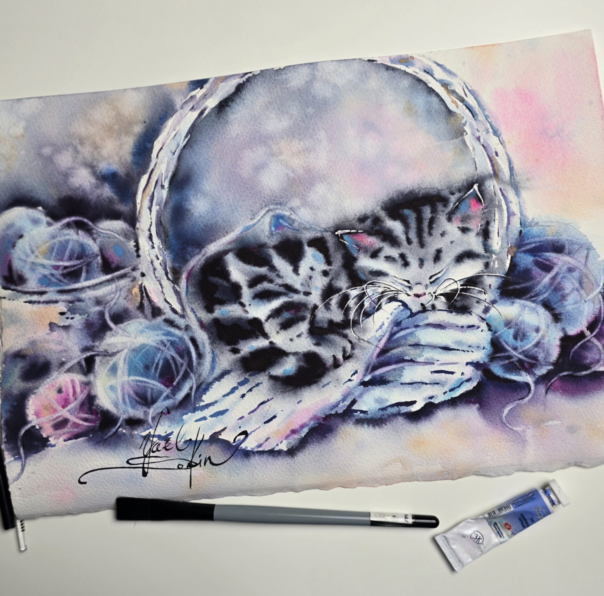 🎨Bring warmth and tenderness into your home with this original watercolor painting of a sleeping kitten.