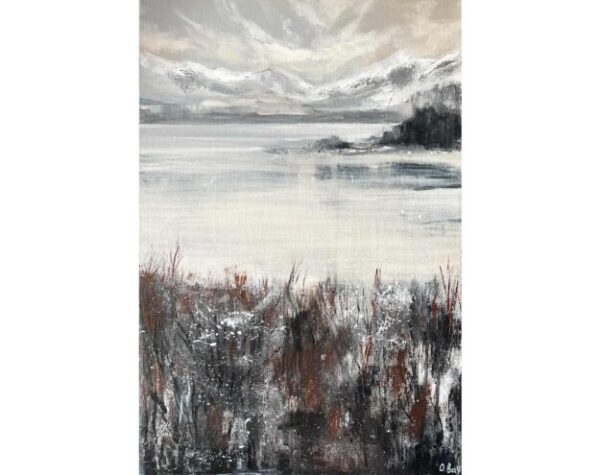 Modern Contemporary Acrylic Painting “Tenderness”, Winter Lake, 40×60 cm