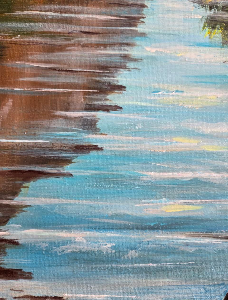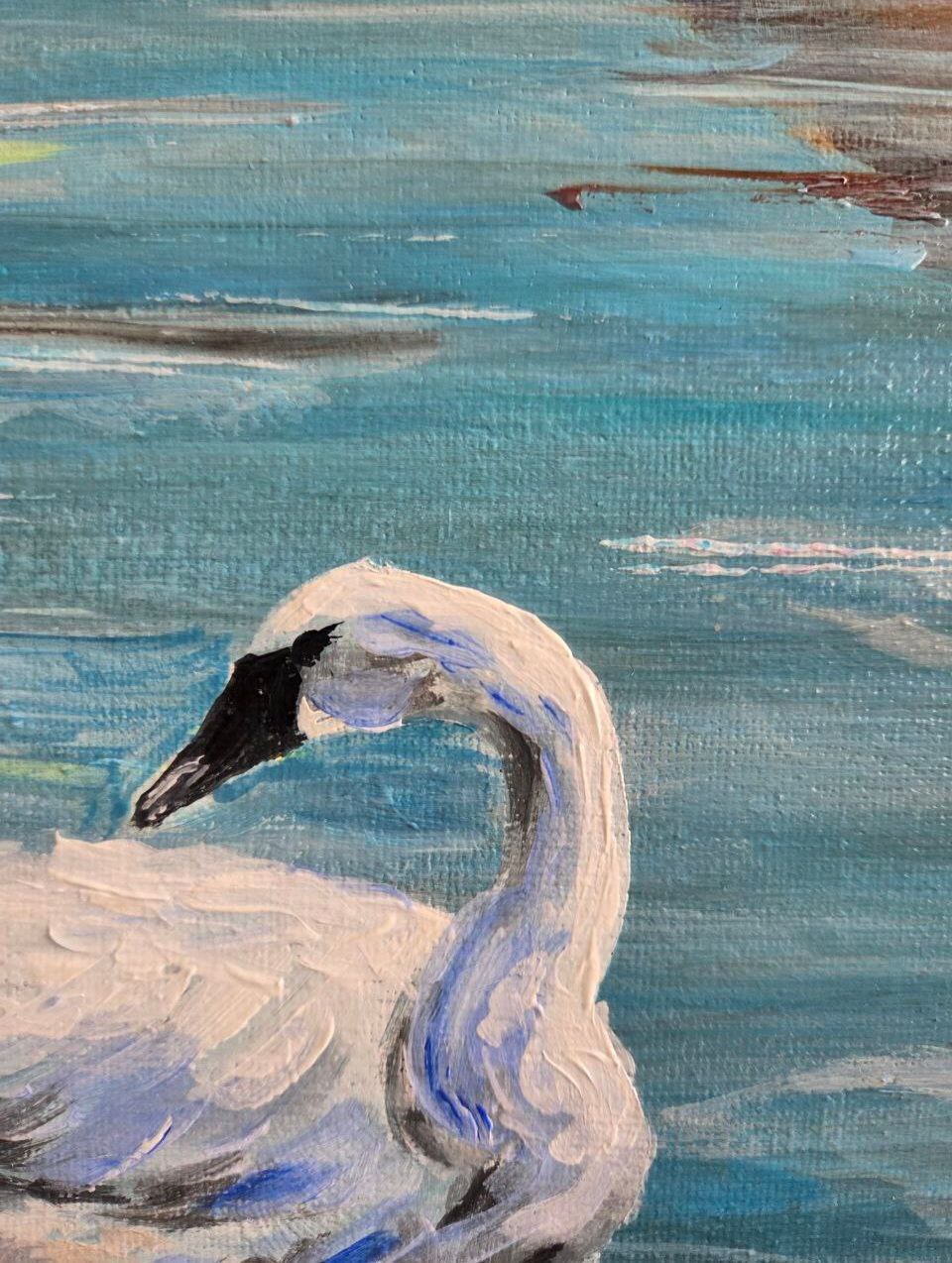 The overall mood of the painting is peaceful, majestic and slightly meditative. It conveys the beauty of wild nature and the subtle balance between the calm and power of the surrounding world.